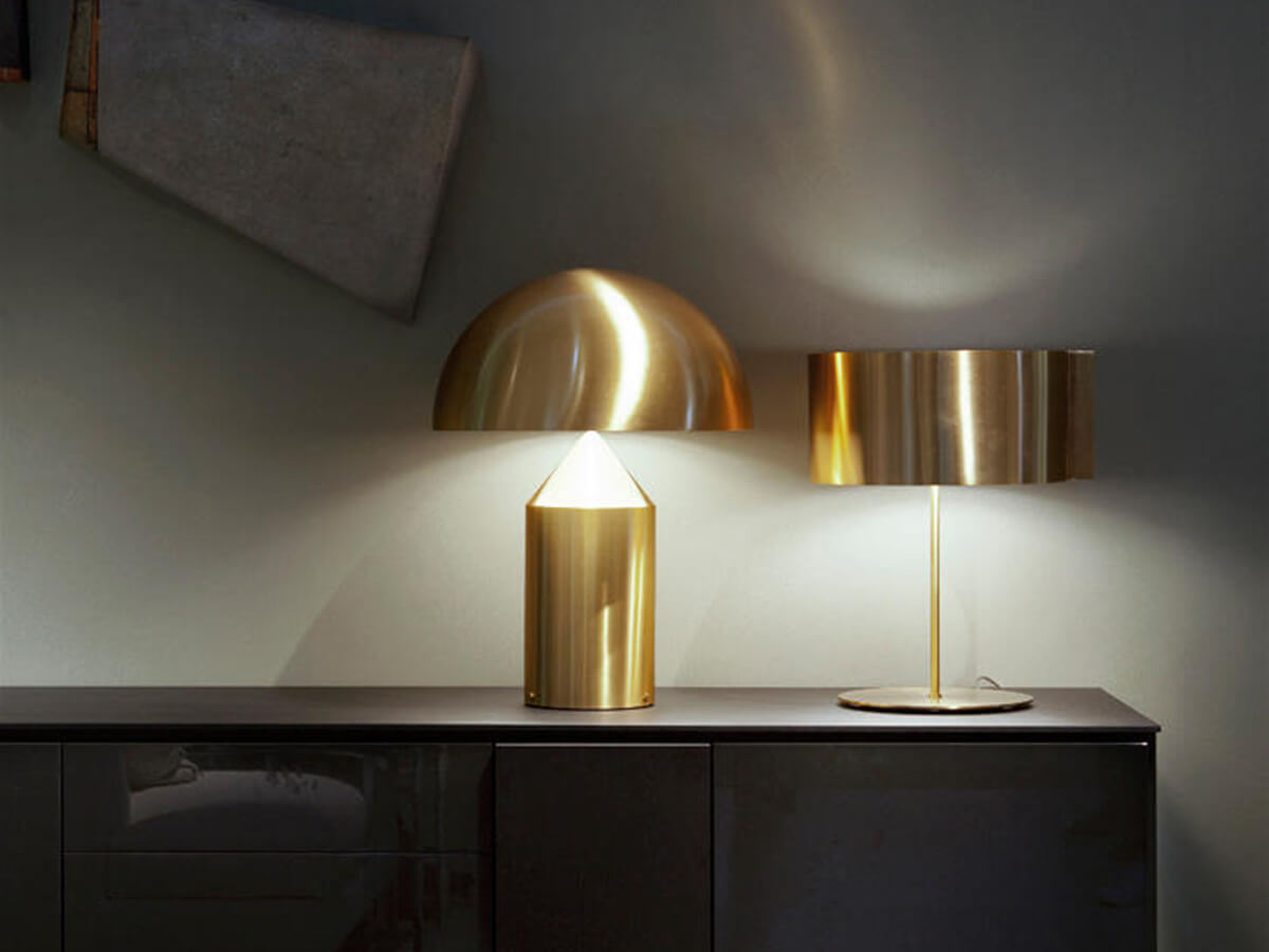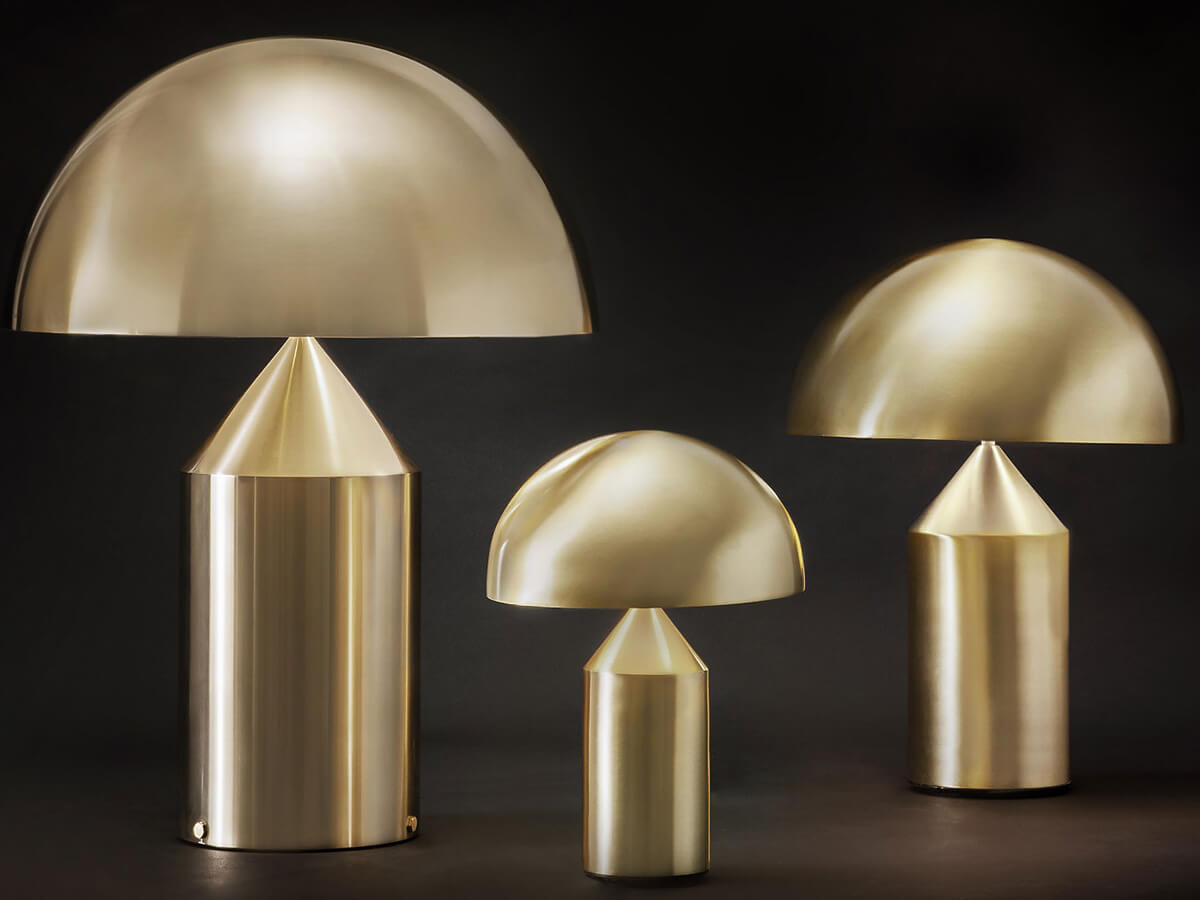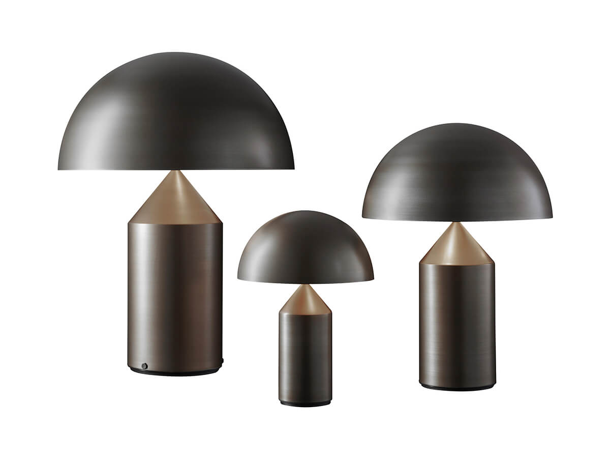 Icona del design contemporaneo, e non solo, Atollo è l’esempio perfetto di uno stile capace di mantenersi inalterato nel tempo. Fin dalla sua creazione avvenuta nel 1977 ha resistito alle mode del tempo divenendo autentico archetipo della lampada da tavolo. Vincitrice del compasso d’oro nel 1979, oggi continua ad arredare case e ambienti di tutto il mondo. Le forme geometriche che la compongono, cilindro, cono e semisfera, hanno dato vita a un prodotto decorativo ed essenziale allo stesso tempo, slegato dal periodo storico dalle mode del momento e divenuto oramai un caposaldo dello stile di qualunque tempo. Atollo è disponibile in diverse dimensioni e finiture fra cui metallo bianco, nero, bronzo satinato e oro satinato.