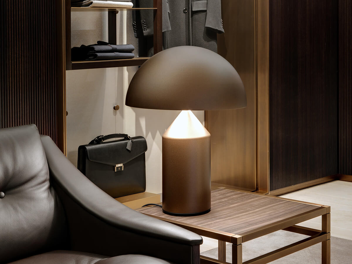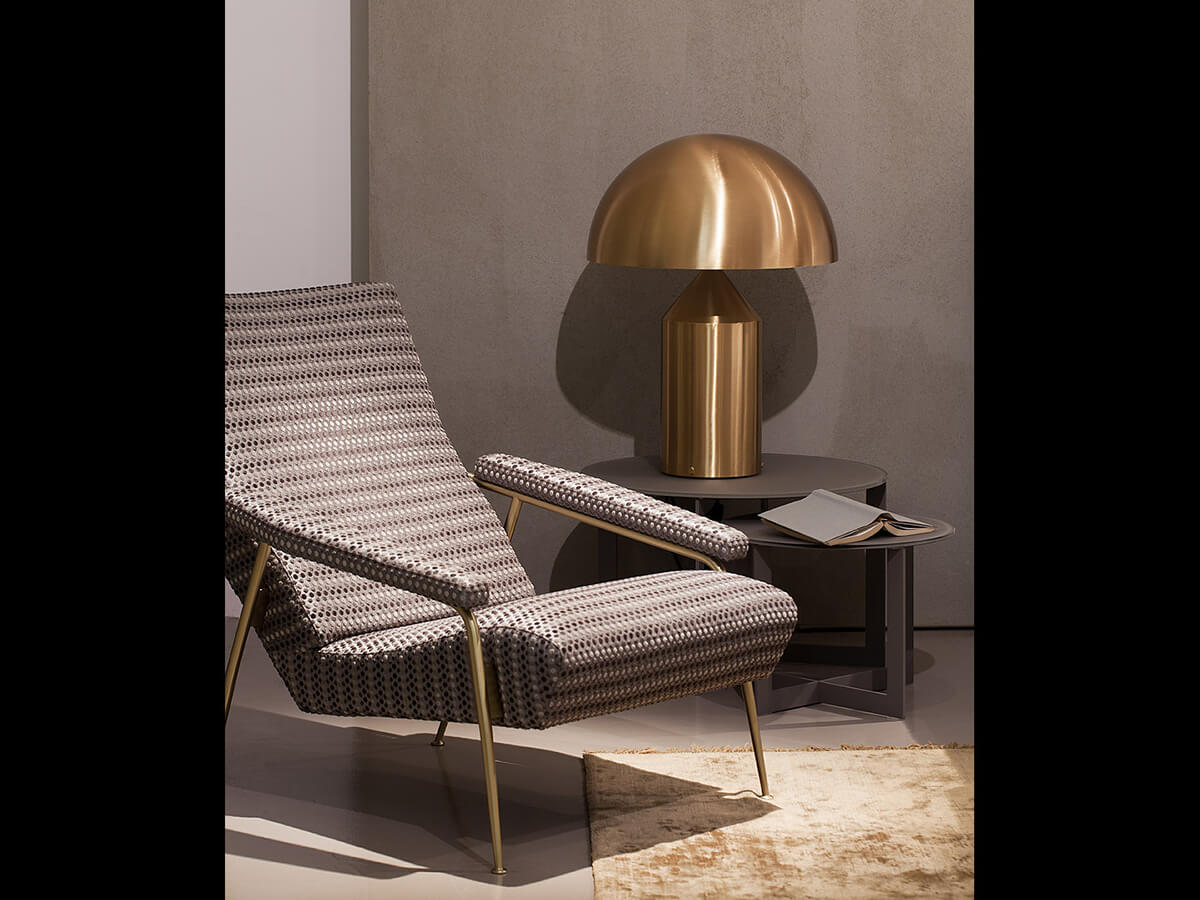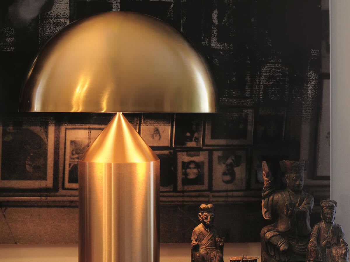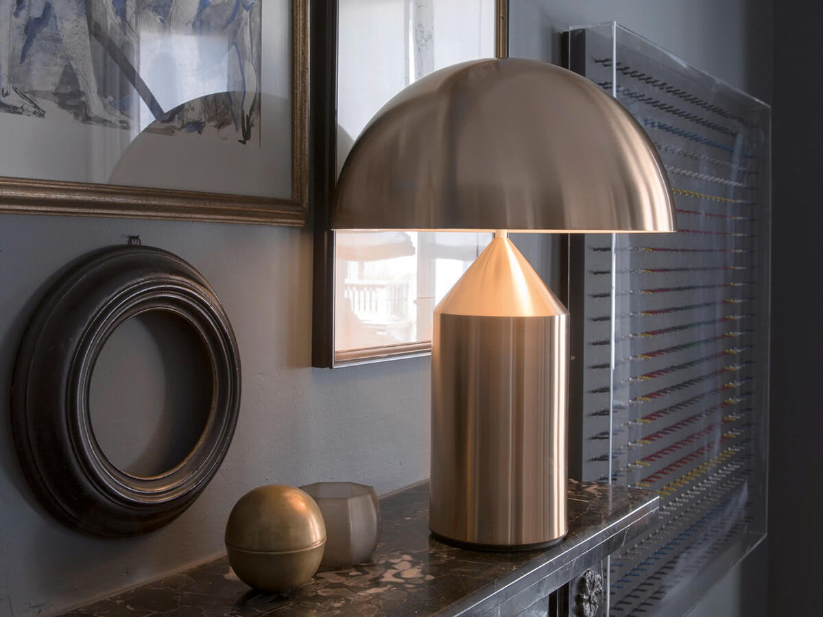 Icona del design contemporaneo, e non solo, Atollo è l’esempio perfetto di uno stile capace di mantenersi inalterato nel tempo. Fin dalla sua creazione avvenuta nel 1977 ha resistito alle mode del tempo divenendo autentico archetipo della lampada da tavolo. Vincitrice del compasso d’oro nel 1979, oggi continua ad arredare case e ambienti di tutto il mondo. Le forme geometriche che la compongono, cilindro, cono e semisfera, hanno dato vita a un prodotto decorativo ed essenziale allo stesso tempo, slegato dal periodo storico dalle mode del momento e divenuto oramai un caposaldo dello stile di qualunque tempo. Atollo è disponibile in diverse dimensioni e finiture fra cui metallo bianco, nero, bronzo satinato e oro satinato.