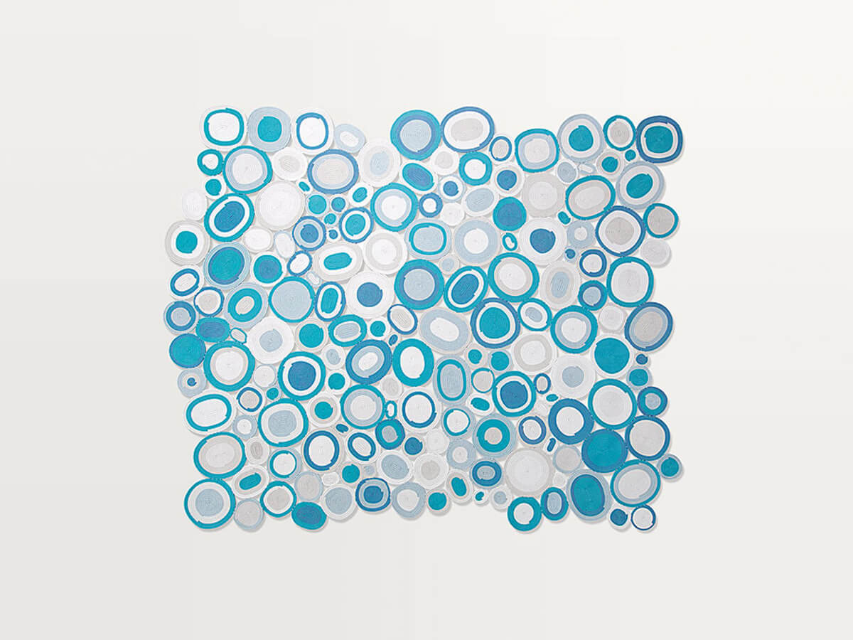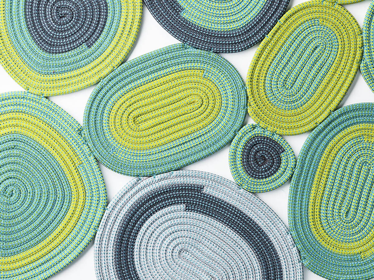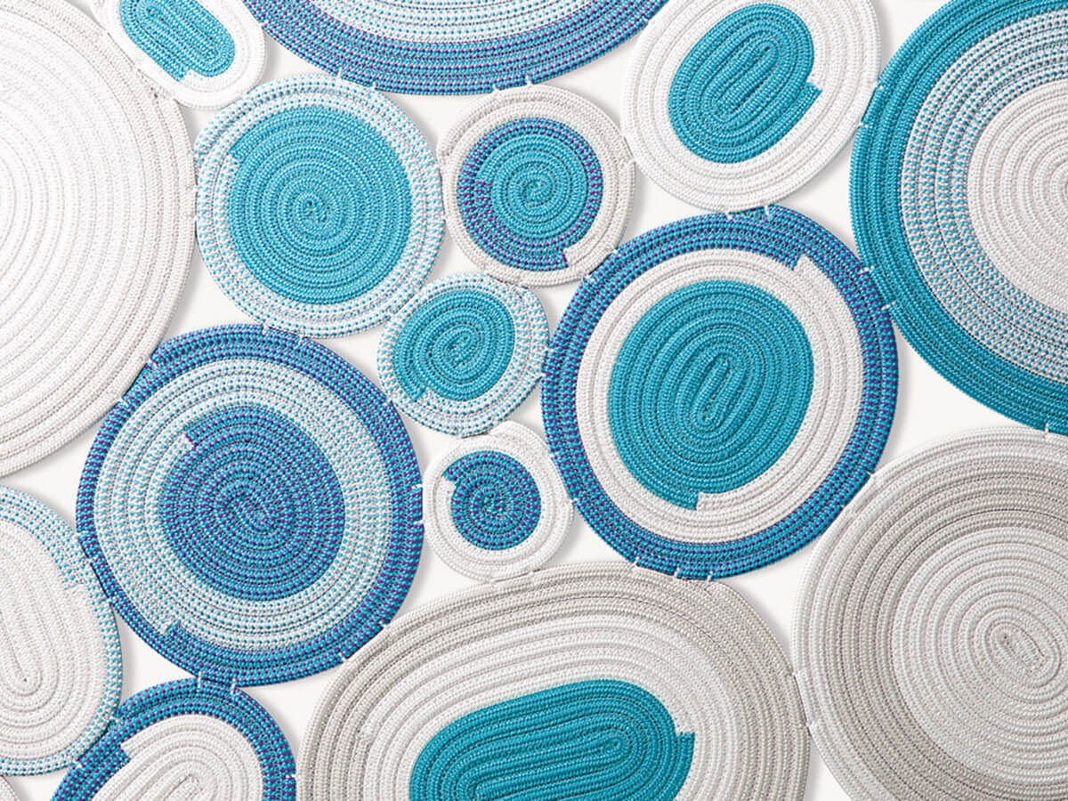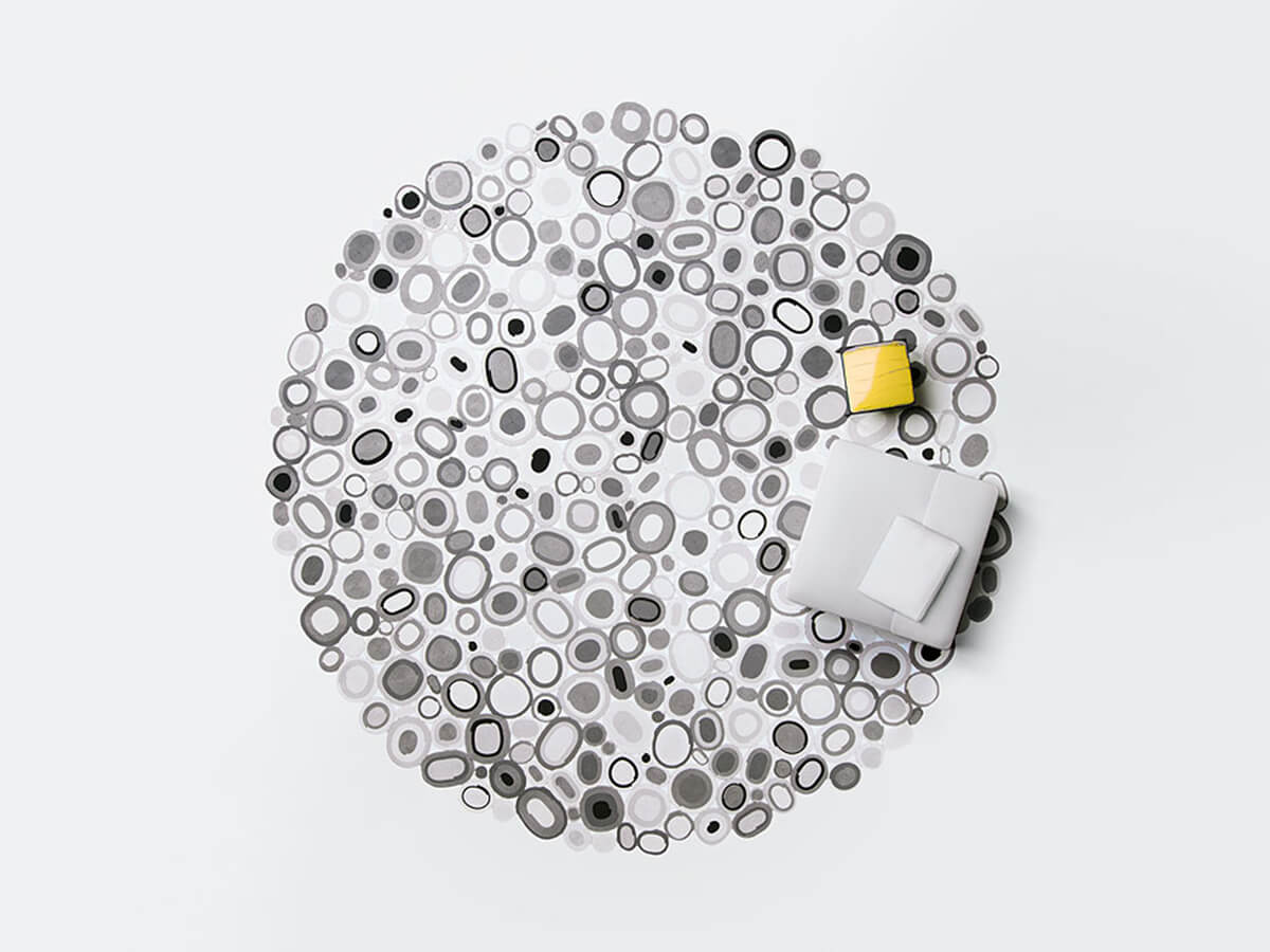 Colore ed espressione si incontrano dando vita a un oggetto a cavallo fra arte, design e pura immaginazione. Ellissi è un tappeto per esterni e interni, realizzati dall’unione di singoli elementi prodotti con corde tinta unita o bicolore. L’effetto è quello di camminare su un sentiero di ciottoli o un quadro impressionista. Le corde sono sagomate e cucite a mano per formare elementi decorativi tondi e ovali. Ogni elemento viene poi unito agli altri con uno schema libero per formare superfici di diverse dimensioni. Attraverso gli spazi lasciati liberi si può notare il pavimento in un pregevole effetto di sovrapposizione. Si possono scegliere più colori per poter creare spunti unici e personalizzati. Caratteristiche tecniche: composizione in Corda Rope in 100% poliolefine