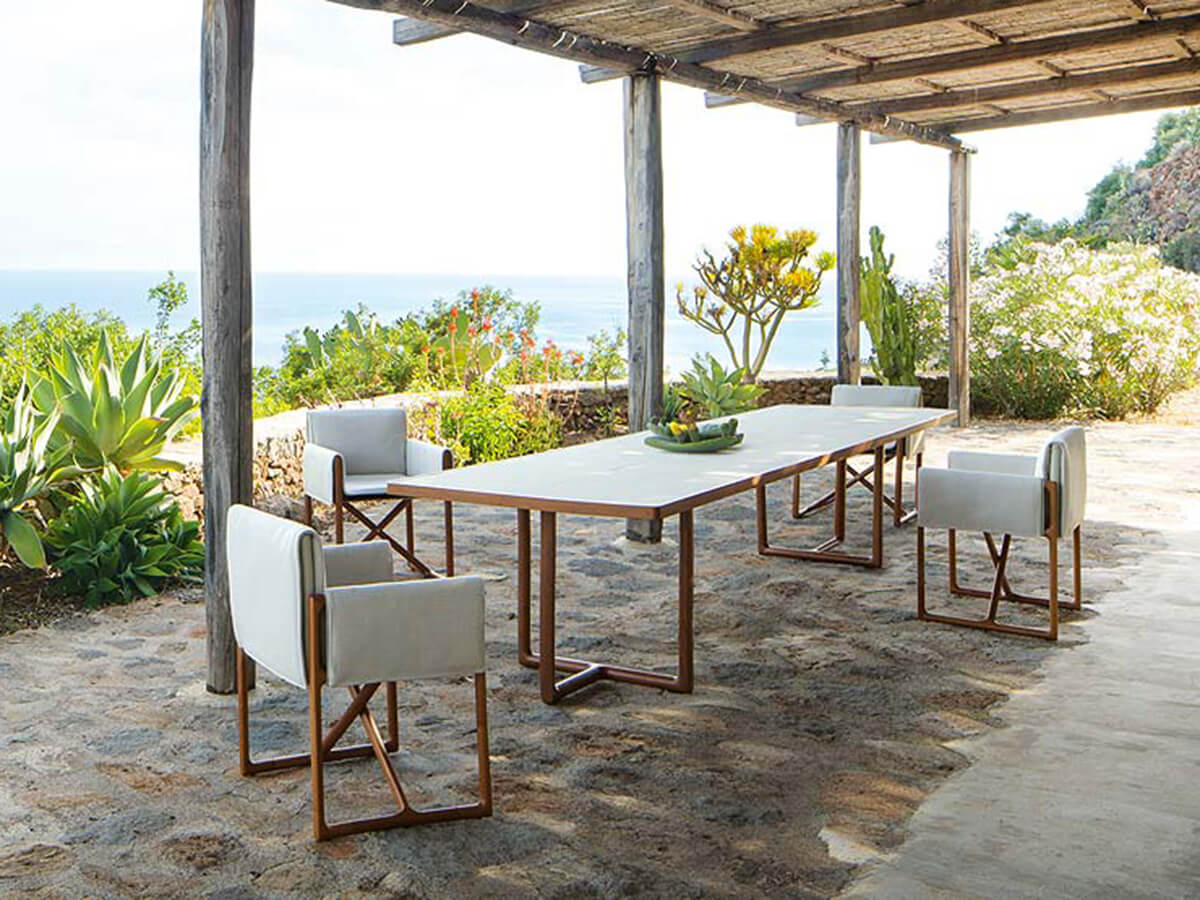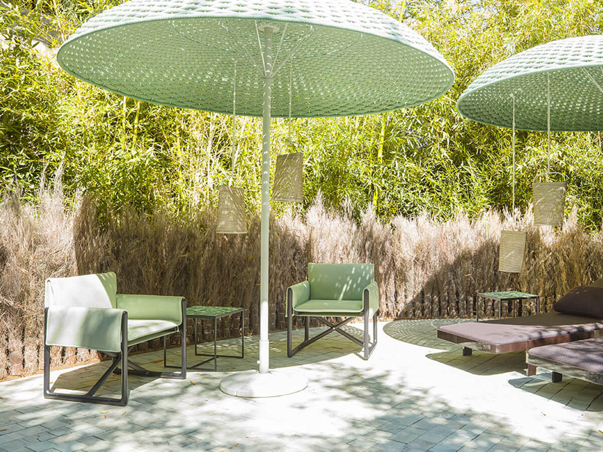 Una sedia dall’aspetto semplice e rilassato, di quelle che ci si aspetterebbe di trovare in spiaggia o all’interno di qualche beach bar particolarmente ricercato. Portofino è infatti un oggetto particolarmente versatile, sia che si tratti della sedia che della poltroncina, in quanto possiede una struttura pieghevole. La serie Portofino si fregia anche dello sgabello, sdraio e sdraio xl con struttura sempre pieghevole, poltrona e divano, tavoli da pranzo e bistrot con piano in pietra. Questa gamma offre la possibilità di creare ambienti a più dimensioni, perfetti per passare del tempo all’aria aperta ma anche allestire un vero e proprio spazio conviviale di grande ricercatezza. La struttura in massello è green.