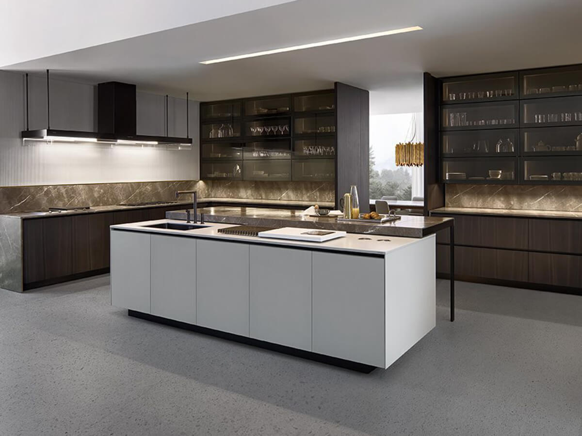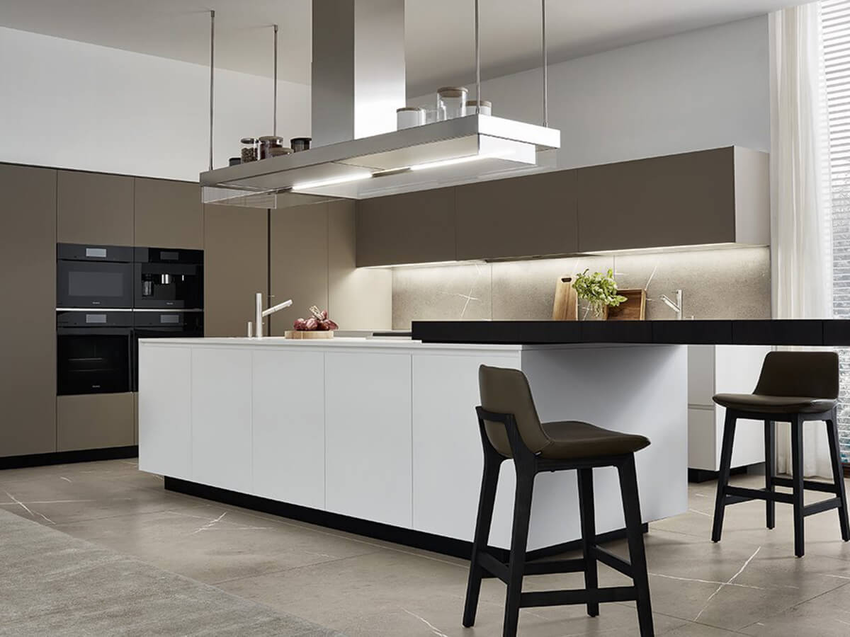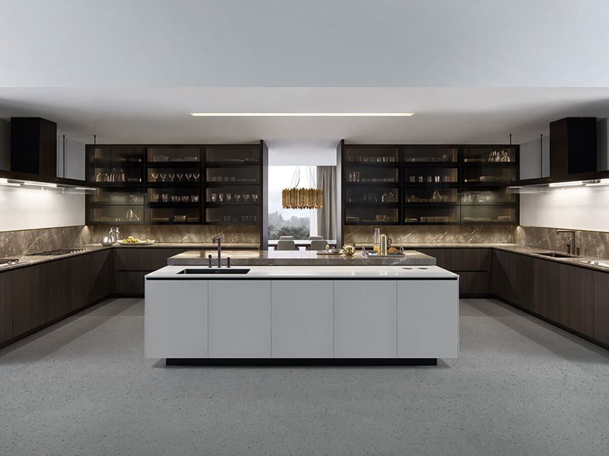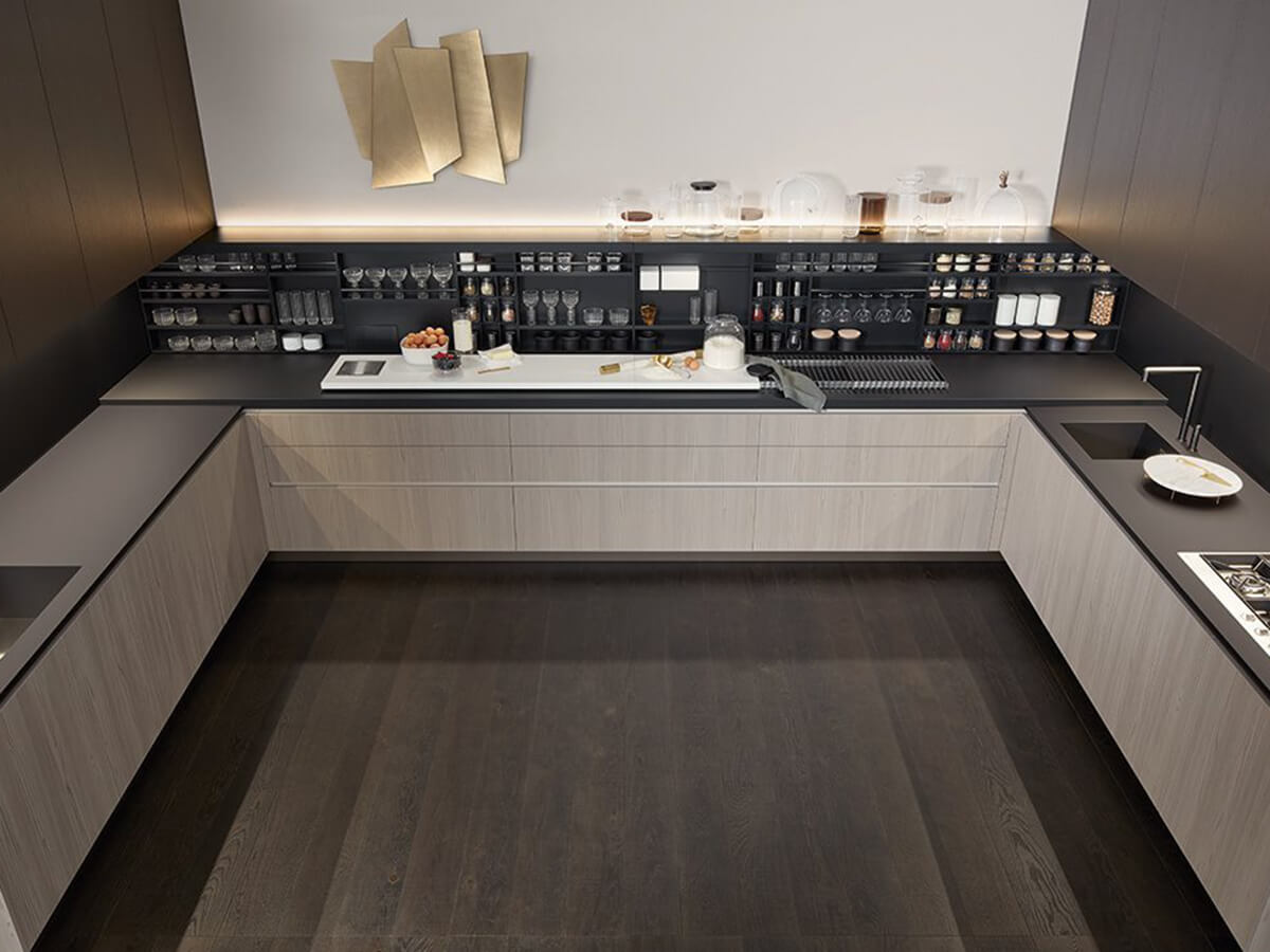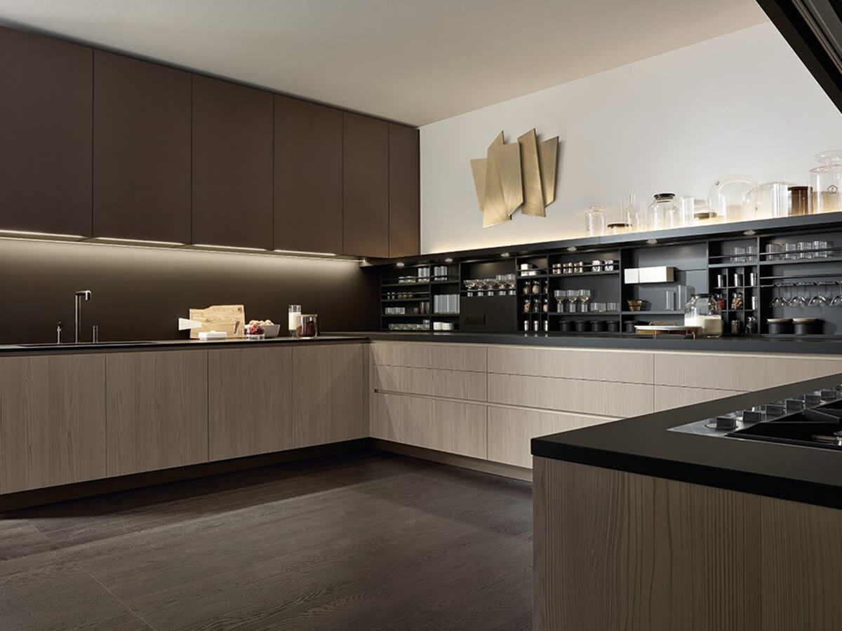 La cucina Alea è il modello più versatile fra quelli disponibili nel catalogo Poliform. Di grande flessibilità compositiva, può essere utilizzato per realizzare ambenti cucina per ogni genere ed esigenza, dalle semplici cucine di servizio in laminato a lussuose composizioni valorizzate da materiali preziosi come marmo o acciaio.Dallo stile solido e minimalista, si caratterizza per l’assenza di maniglie e per le essenziali aperture a gola delle sue ante, rigorosamente squadrate a 90°. Una cucina moderna dall’aspetto pulito, tutta giocata sulle forme primarie, perfetta per gli amanti del design.