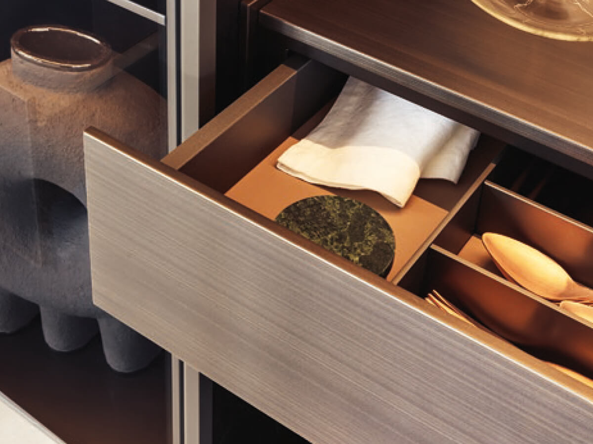 Code è una collezione di madie disegnate dal R&D Poliform. Nelle sue varie e articolate proposte, nate principalmente per la zona giorno o per lo spazio notte, Code completa l’omonimo sistema pensato principalmente per il living contemporaneo senza però trascurare alcune derivazioni della zona notte. In una combinazione di armadi e cabine armadio, Code assolve appieno al dovere dell’abitare, creando una varietà non indifferenti per la casa. La madia Code spicca per essenza e rigore, nonché per l’assoluta eleganza nel coniugare materiali e finiture diverse in un tutt’uno estremamente fruibile e versatile. Adatta a qualunque ambiente, dai più ai meno formali, con un tocco di personalità.