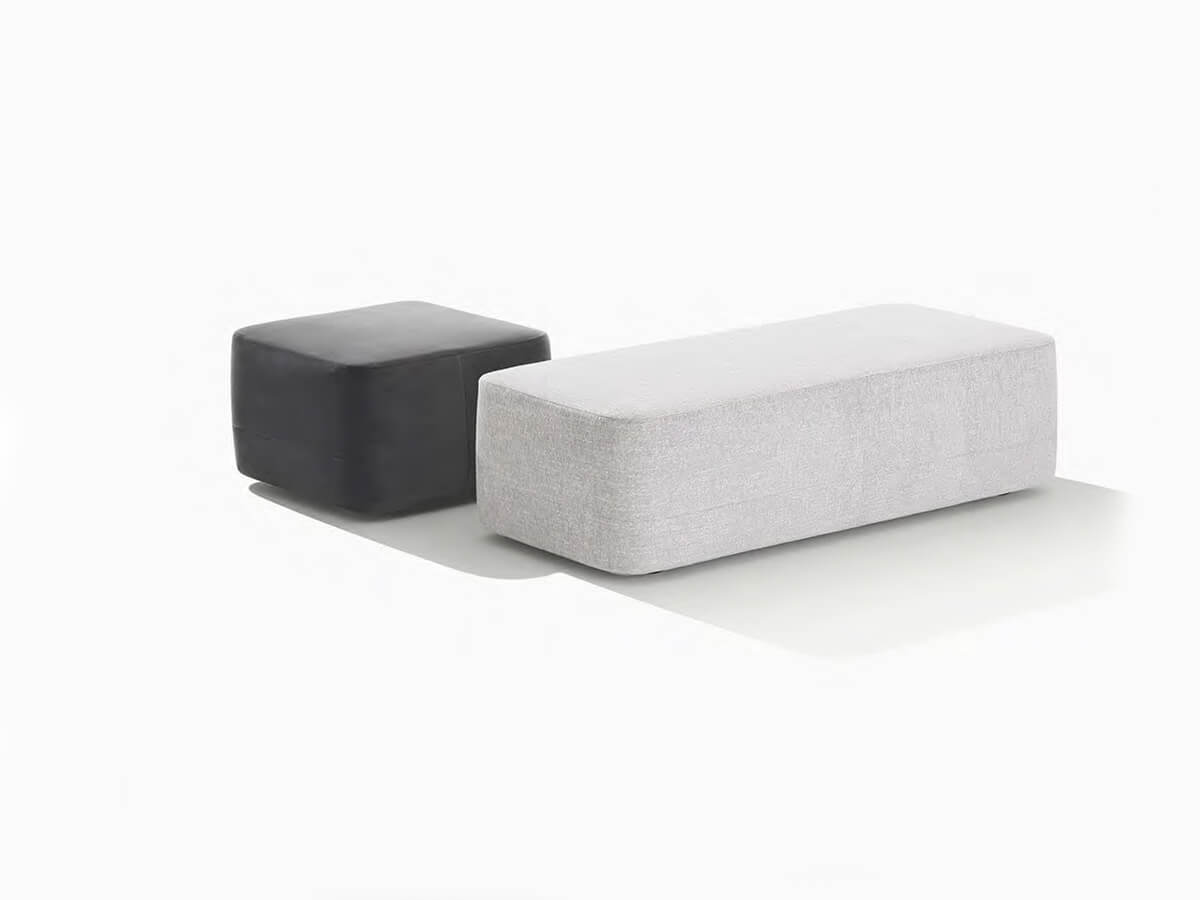 New York è un pouf dal design versatile, capace di conformarsi a stili e scelte di design eterogenee sia che lo si utilizzi in ambienti domestici che in aree pubbliche di alberghi e hall. La struttura in legno e derivati, con poliuretano a quote differenziate, si appoggia sui piedini in plastica o metallo verniciato con innesti visibili a occhio nudo. Il rivestimento sfoderabile in tessuto e non sfoderabile in pelle spicca per le cuciture capaci di sezionare la figura dandole la vaga rassomiglianza di un guscio. New York è disponibile in diverse dimensioni, piccole o più abbondanti, per adattarsi alle necessità di ogni ambiente.