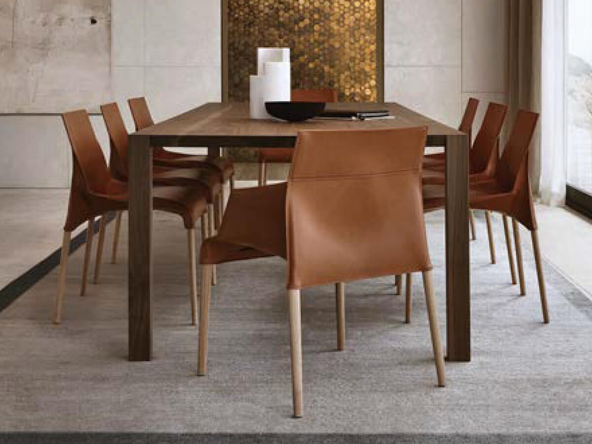 Forme non convenzionali e design d’avanguardia caratterizzano la sedia Seattle, ennesimo esempio della capacità progettuale di Jean-Marie Massaud. Fra le molte opere dell’artista, la sedia Seattle è quella che meglio esprime le potenzialità del cuoio, qui utilizzato a rivestimento e sostegno di schienale e seduta. Le gambe in legno massello o rivestite a loro volta in cuoio fanno da sostegno a una struttura in metallo su cui la pelle viene qui tesa grazie a preziosi dettagli sartoriali come cuciture e punzonature lungo tutto il perimetro della struttura. Queste peculiarità arricchiscono Seattle, rendendola un oggetto capace di distinguersi fra molte altre proposte di Poliform.