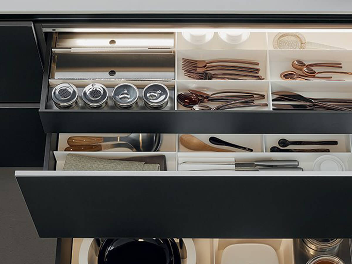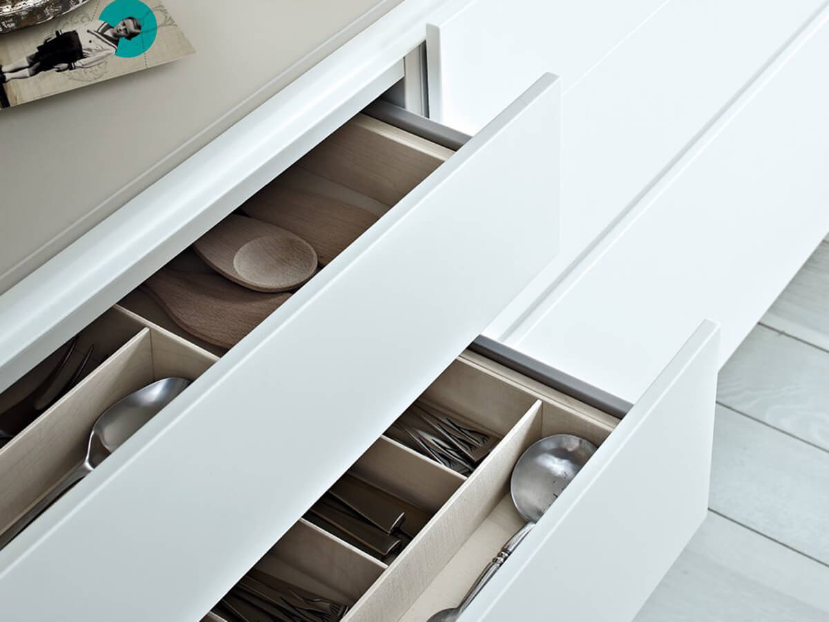 La cucina Twelve di Poliform nasce nel segno della leggerezza: piani e ante sono sottilissimi – presentano uno spessore di soli 12 mm – e conferiscono alle composizioni un senso di aerea levità, unita a una ineguagliabile comodità d’uso. La grande varietà di materiali in cui può essere realizzata le permette un ampio ventaglio di interpretazioni progettuali, sempre governate da un’impressione di modernità e di lusso.Le minimaliste ante Twelve accentuano l’effetto di leggerezza attraverso l’assenza di maniglie, sostituite da un’essenziale apertura a gola.