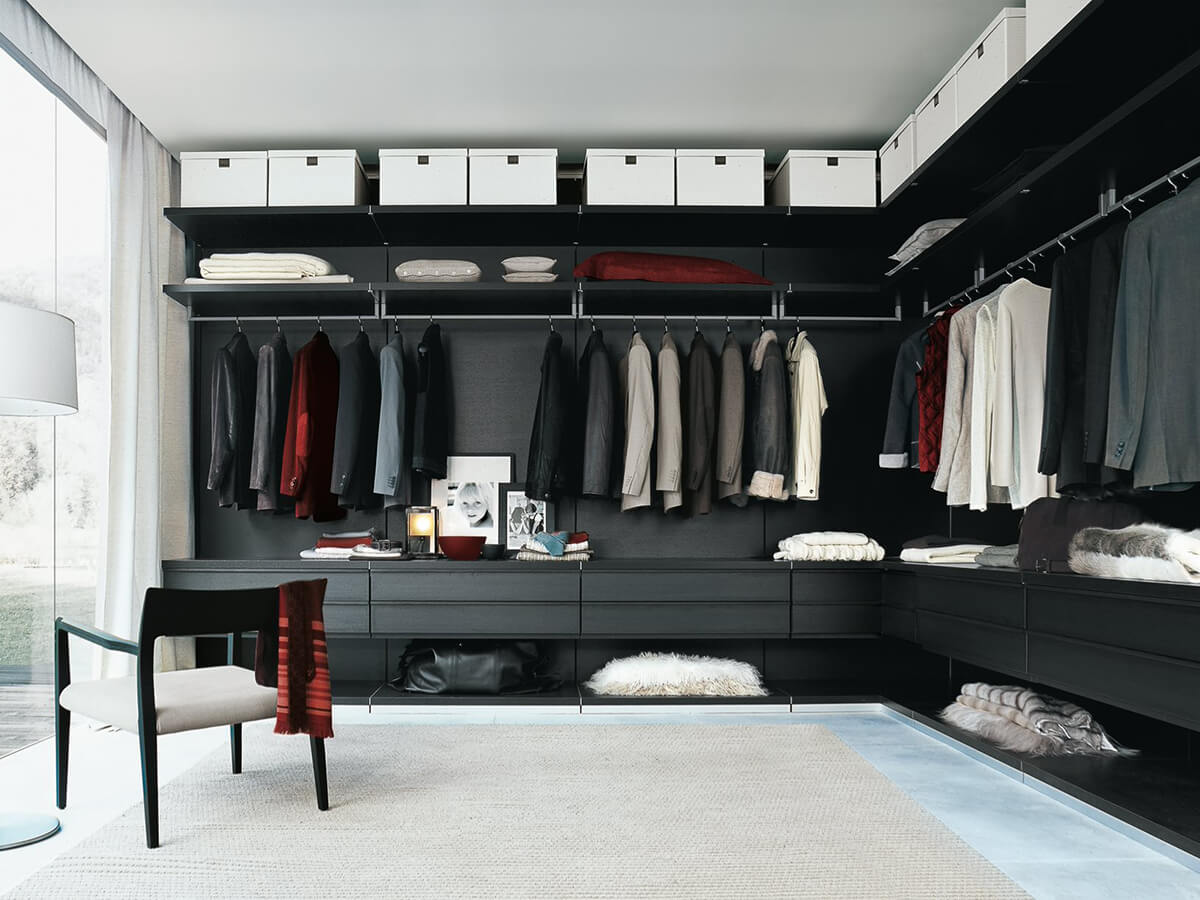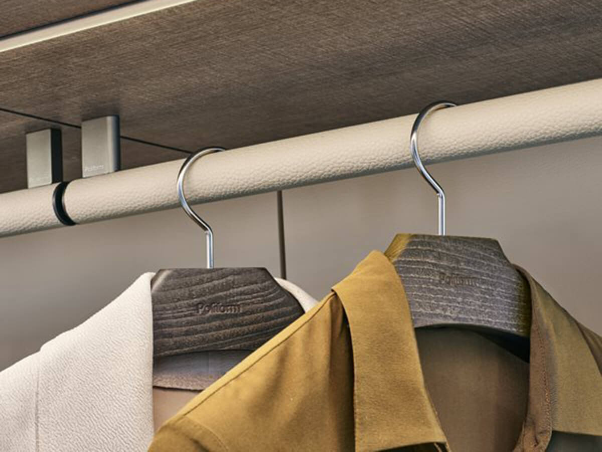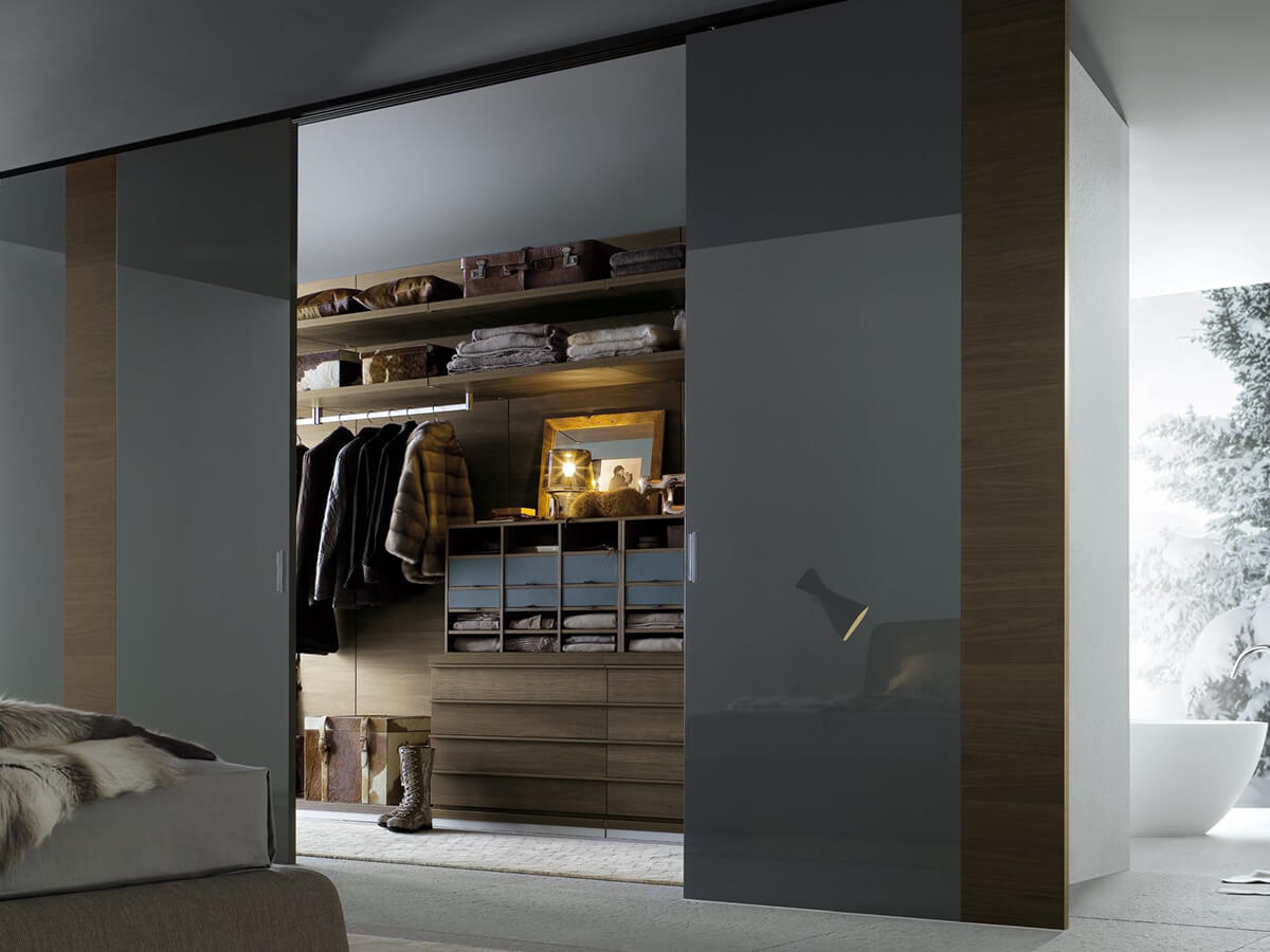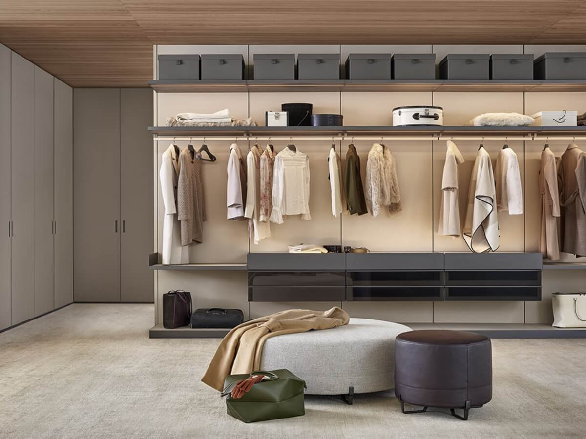 Il sistema Ubik di Polifom propone un’interpretazione aperta e ariosa della cabina armadio, che limita al massimo l’invasività dei componenti strutturali per far diventare protagonista il contenuto. È ideale per chi desideri “metter in scena” il proprio guardaroba, in uno spazio ordinato e curato fin nei minimi dettagli. A questo scopo giocano una funzione chiave le attrezzature, con una vasta scelta di elementi capaci di svolgere ogni funzione: scarpiere estraibili, tubi portabiti, vassoi, porta pantaloni, porta camicie e molto altro ancora.A dare il tono alla composizione è il pannello-boiserie retrostante, personalizzabile in diversi colori e finiture, sul quale sono innestati tutti gli accessori.