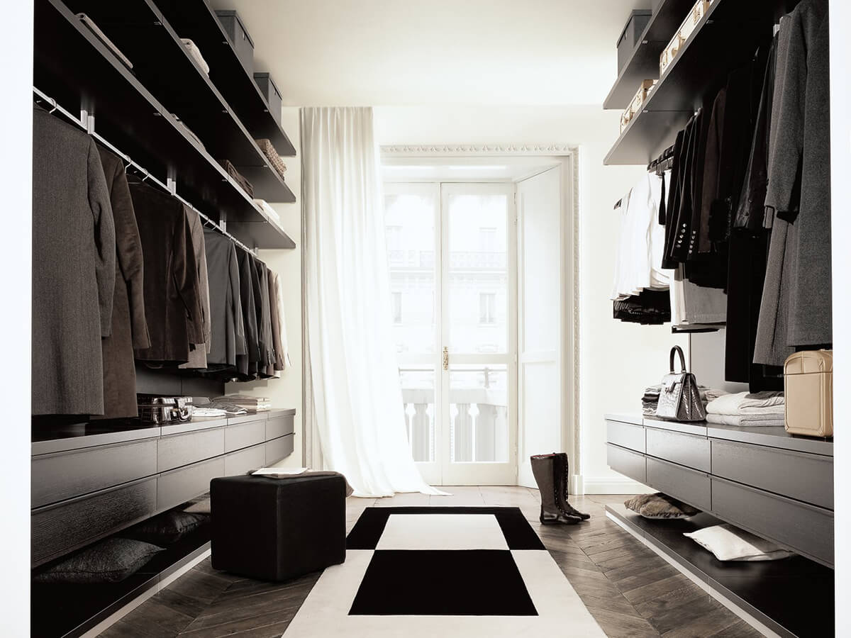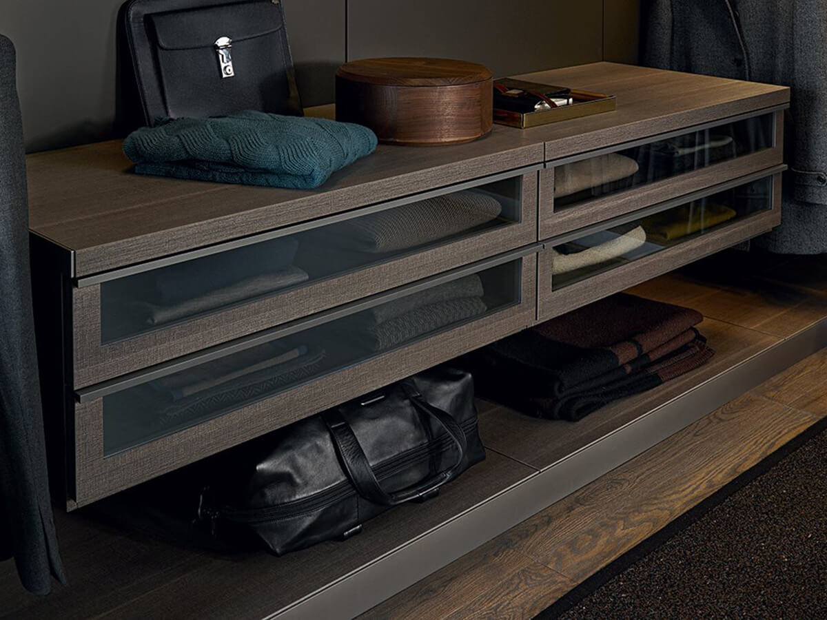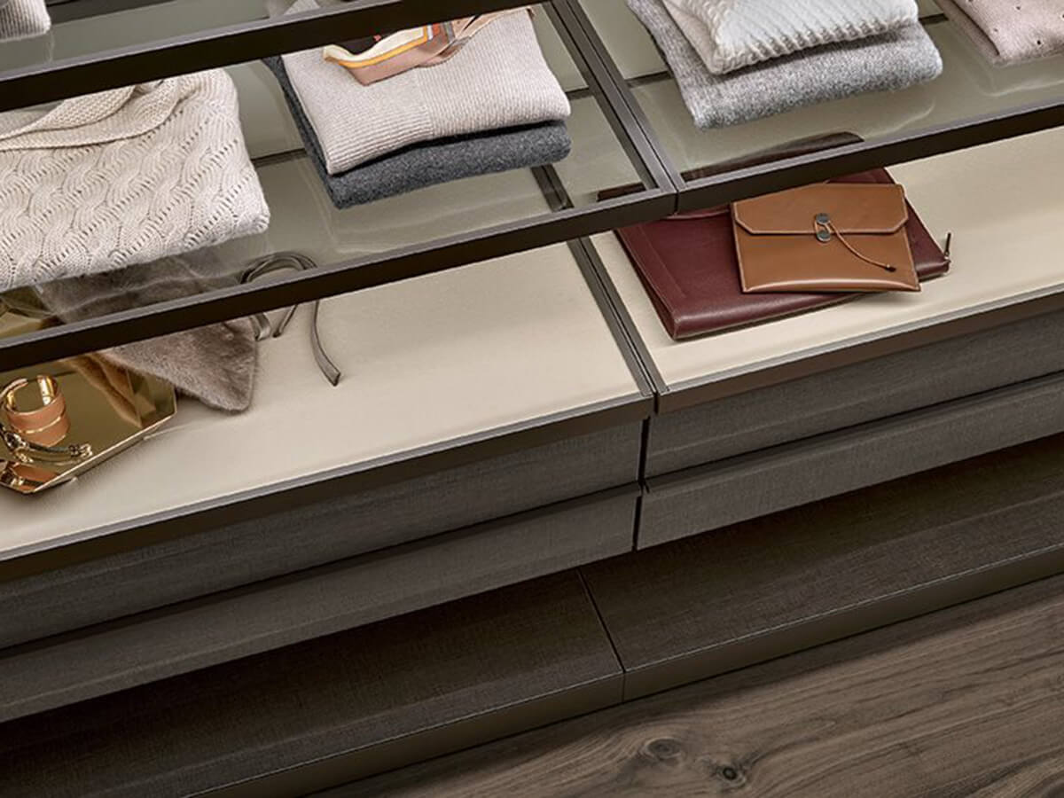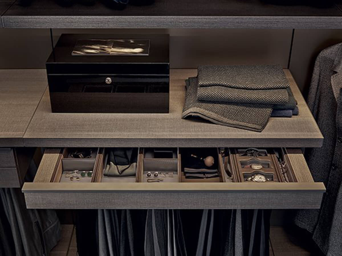 Il sistema Ubik di Polifom propone un’interpretazione aperta e ariosa della cabina armadio, che limita al massimo l’invasività dei componenti strutturali per far diventare protagonista il contenuto. È ideale per chi desideri “metter in scena” il proprio guardaroba, in uno spazio ordinato e curato fin nei minimi dettagli. A questo scopo giocano una funzione chiave le attrezzature, con una vasta scelta di elementi capaci di svolgere ogni funzione: scarpiere estraibili, tubi portabiti, vassoi, porta pantaloni, porta camicie e molto altro ancora.A dare il tono alla composizione è il pannello-boiserie retrostante, personalizzabile in diversi colori e finiture, sul quale sono innestati tutti gli accessori.