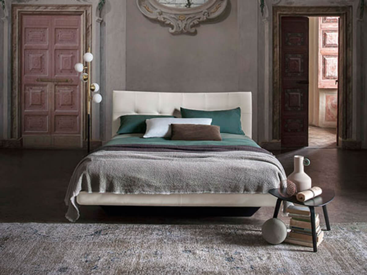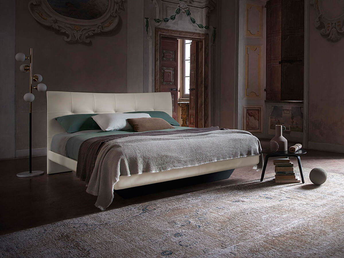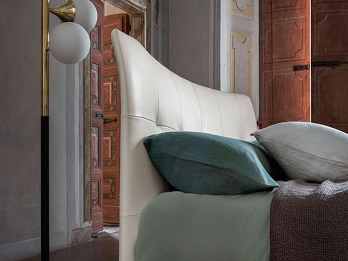 *Prezzo valido per la versione classica per materasso 160x200 cm (non incluso) – rivestimento in pelle SC – retro testata in tela – piede anteriore in legno verniciato colore nero – rete a doghe inclusa (cod. 5353270 - 5PF0035306137 + 2 x 5050831 - 5PF0005010639).