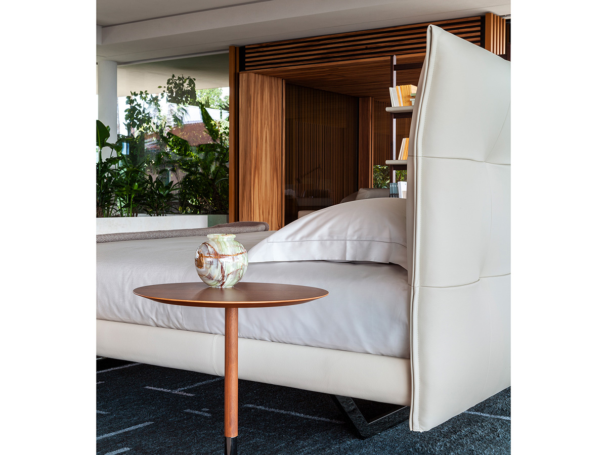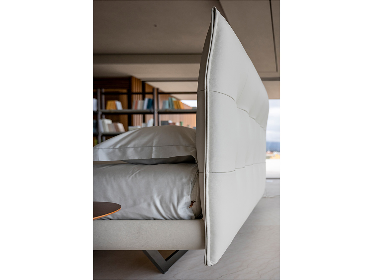 Un design d’avanguardia per la camera da letto e lo spazio notte è ciò che caratterizza Aurora Tre, elegante aggiunta al catalogo Poltrona Frau a opera di Tito Agnoli. La bellezza di questo elemento d’arredo è evidente nelle sue forme eleganti e voluttuose che collimano nella testata trapuntata che garantisce presenza scenica ma anche un supporto non indifferente per chi ami leggere a letto o conversare. Le gambe sono composte da un unico elemento centrale che collega le diverse aree del letto conferendo stabilità e assoluta armonia estetica. L’azienda rende disponibile Aurora Tre in numerose colorazioni e finiture fra cui la celebre Pelle Frau, nota per il suo carattere deciso e il tocco di estrema qualità. Un elemento d’arredo nuovo che non manca di offrire spunti retrò agli amanti del settore.