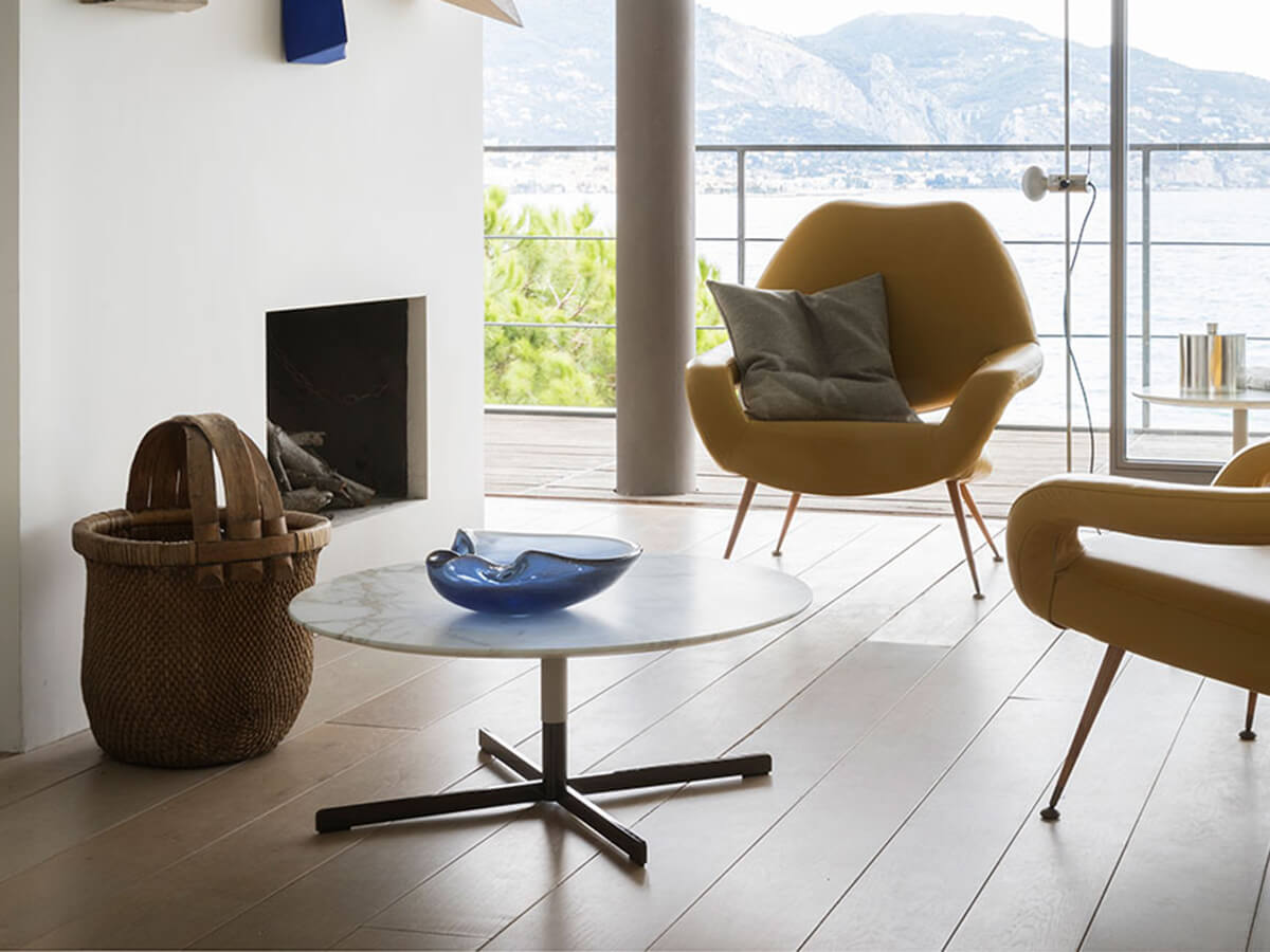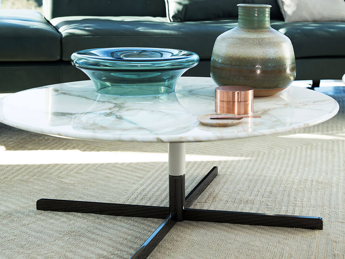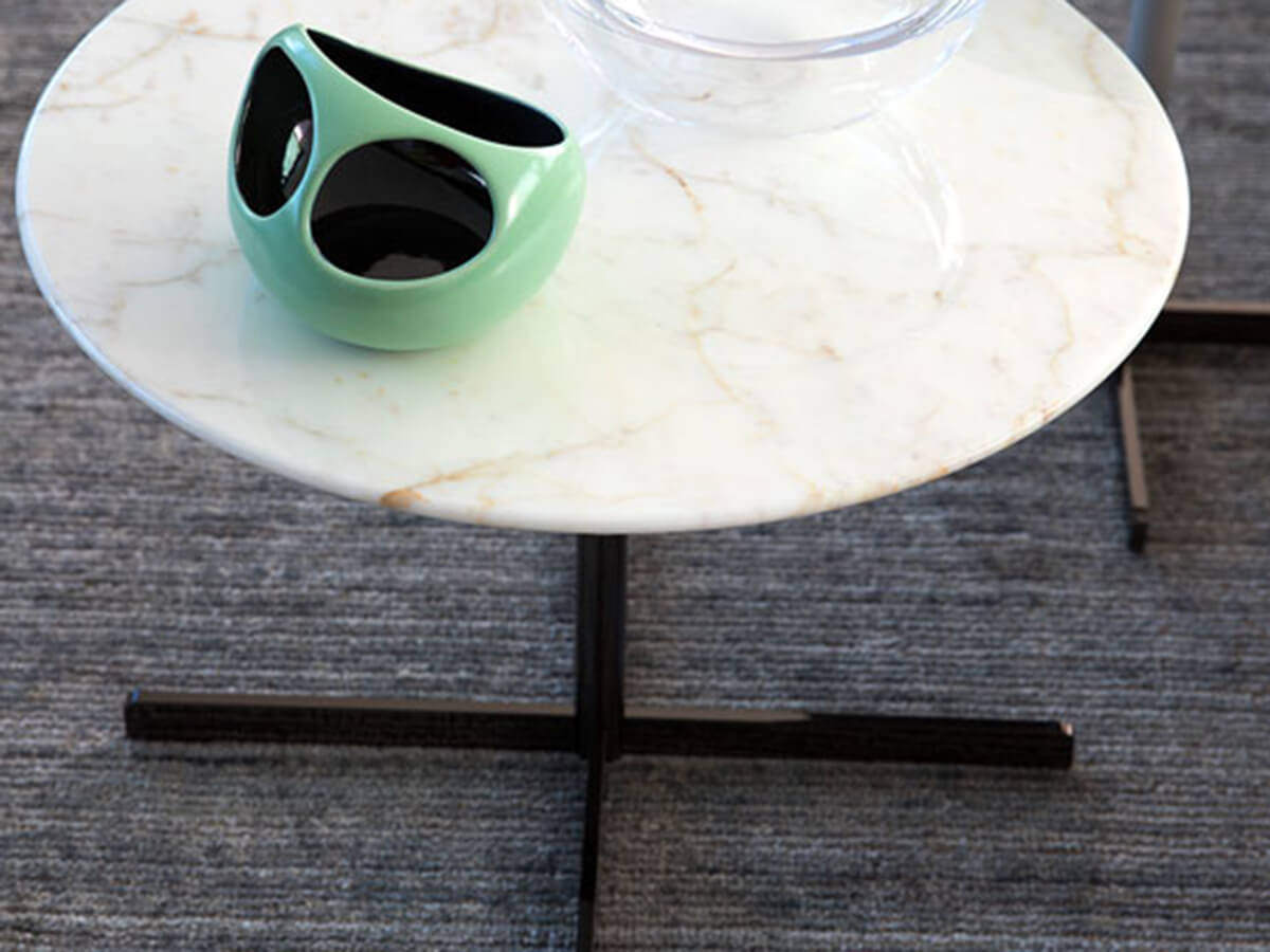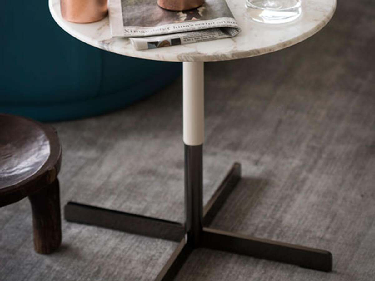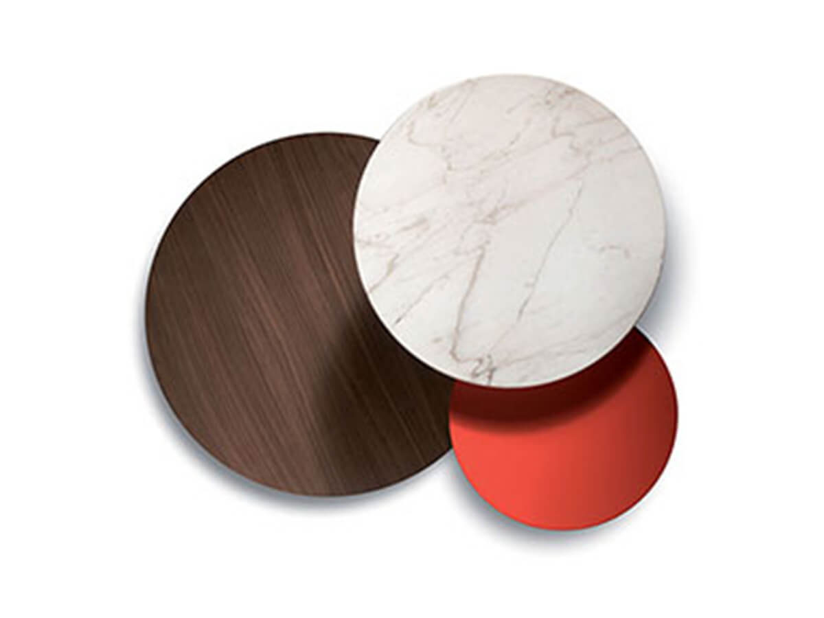 *Prezzo valido per la versione con piano in marmo semi-brilliant nero Maquinia in ø 45 x H.43 cm – base in acciaio e piano superiore della gamba in pelle SC 20 Inchiostro (cod. 5364631 - 5PF0036406318 H.43 cm).