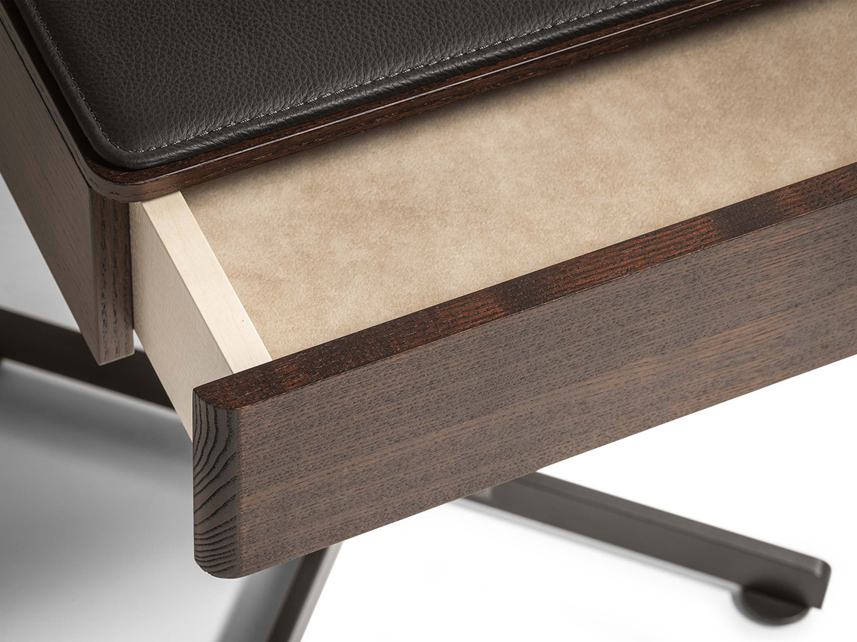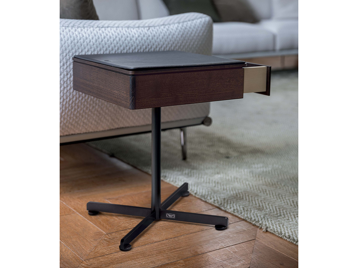 Un elemento d’arredo semplice e funzionale, che si colloca con disinvoltura all’interno di spazi notte accanto al letto per riporre piccoli oggetti di utilizzo quotidiano. Il comodino Bob di Poltrona Frau presenta un basamento in acciaio, disponibile in diverse finiture, con un top rivestito in pelle Frau o in altri materiali fra cui legno multistrato. Indispensabile è qui il cassetto portagioie, un elemento chiave che ne arricchisce il valore. Disponibile in diversi colori e completamente personalizzabile, Bob comprende anche una versione tavolino, facilmente collocabile anche in zone giorno e sale di diversa entità.