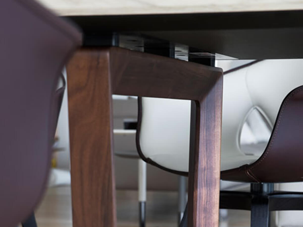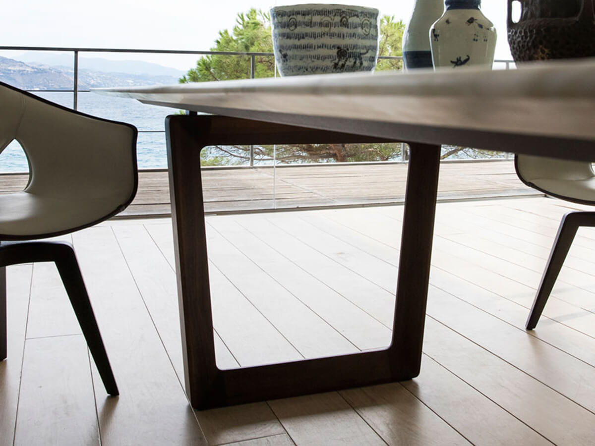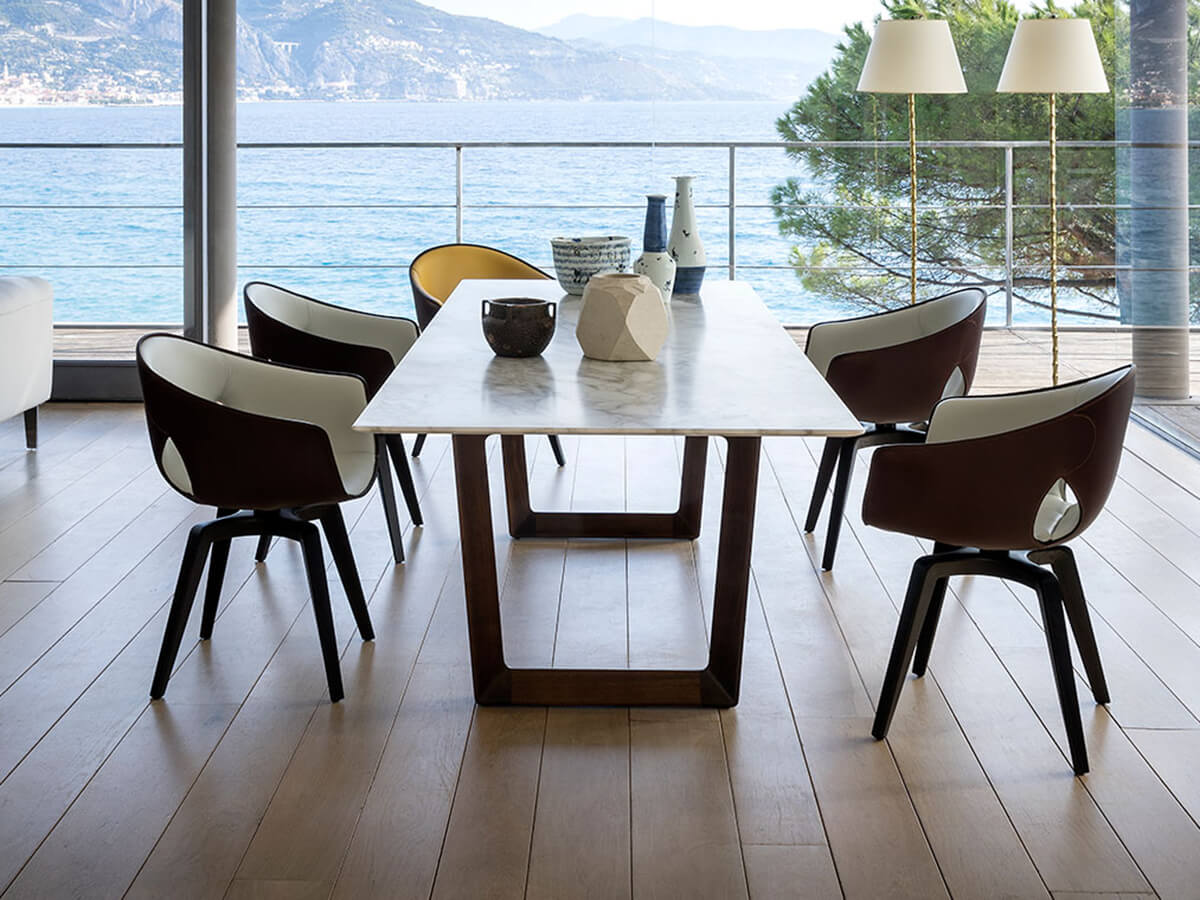 Tanto nella sua rotonda quanto in quella rettangolare, Bolero rappresenta un modello di tavolo elegante ed estremamente raffinato. Il massello della struttura incontra il piano del tavolo costellato di macro tessere in legno dove è possibile notare un gioco di linee verticali e orizzontali. Roberto Lazzeroni disegna Bolero con l’intento di creare un modello versatile, capace di inserirsi in diverse situazioni esprimendo sempre grande personalità. La struttura in legno massello con profilo a sezione triangolare assicura stabilità e resistenza all’uso quotidiano. *Caratteristiche tecniche: i piani in marmo calacatta gold e fiore di pesco sono disponibili in finitura semibrilliant oppure brilliant (con sovrapprezzo).La versione classica con piano in legno é caratterizzata da una lavorazione ad intarsio con venature ad incrociare