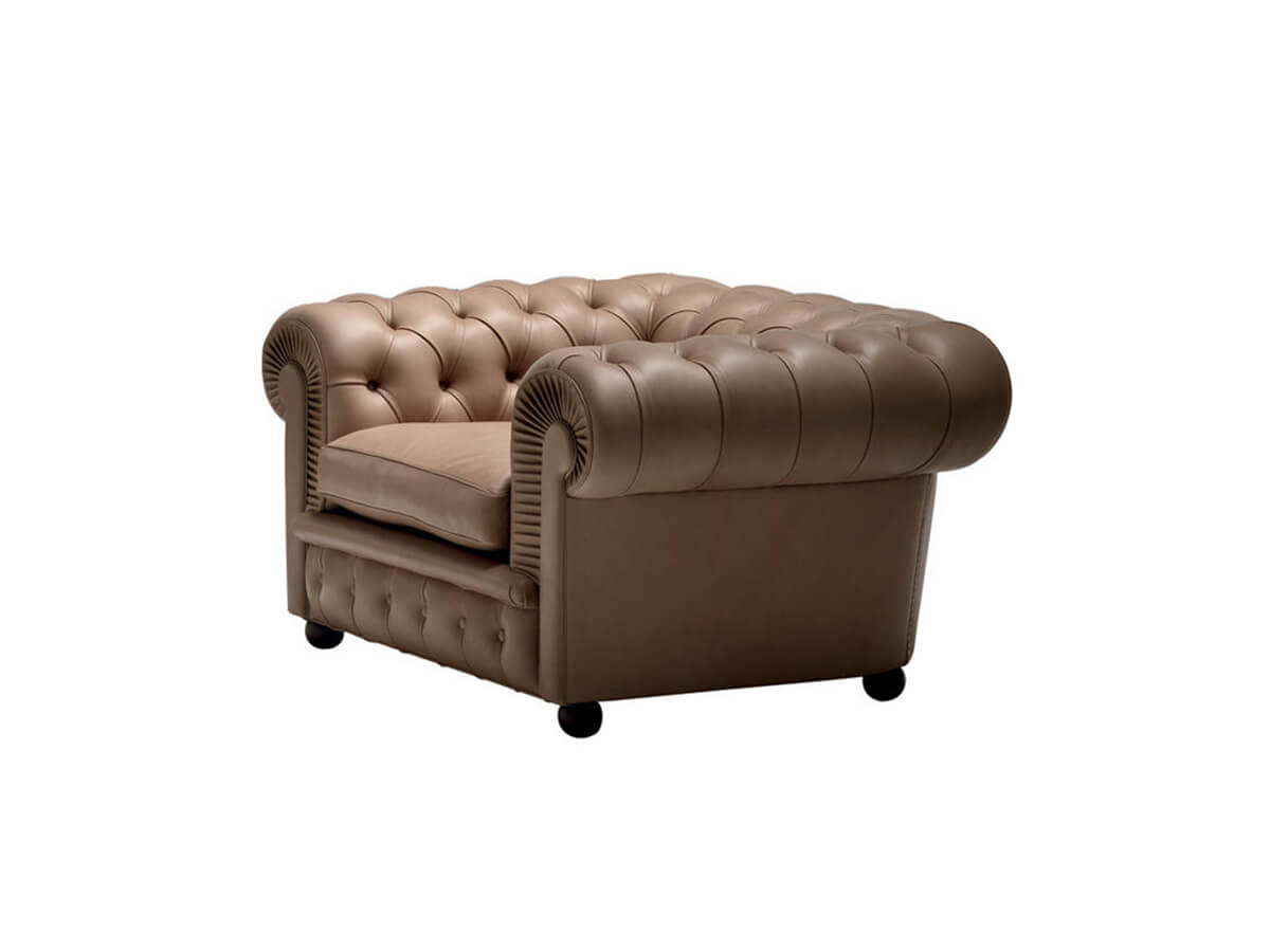 Come l’omonimo divano, la poltrona Chester rappresenta un inno all’eleganza, alla tradizione e al gusto senza tempo di quei mobili di prestigio, perfetti per arricchire ambienti sontuosi e ricercati. Del progetto di Renzo Frau del 1912, la poltrona Chester ha conservato la lucida ispirazione, rivisitata poi in chiave moderna così da unire elementi storici a particolari più contemporanei. Il plissé dei braccioli si associa al capitonné del manto, eseguita ancora oggi interamente a mano. L’imbottitura del sedile è in crine gommato, mentre lo schienale e i braccioli sono in crine vegetale modellato a mano. I cuscini della seduta sono in piuma d’oca. I diversi rivestimenti proposti dall’azienda contribuiscono ad arricchire ulteriormente questo modello destinato a durare nel tempo.