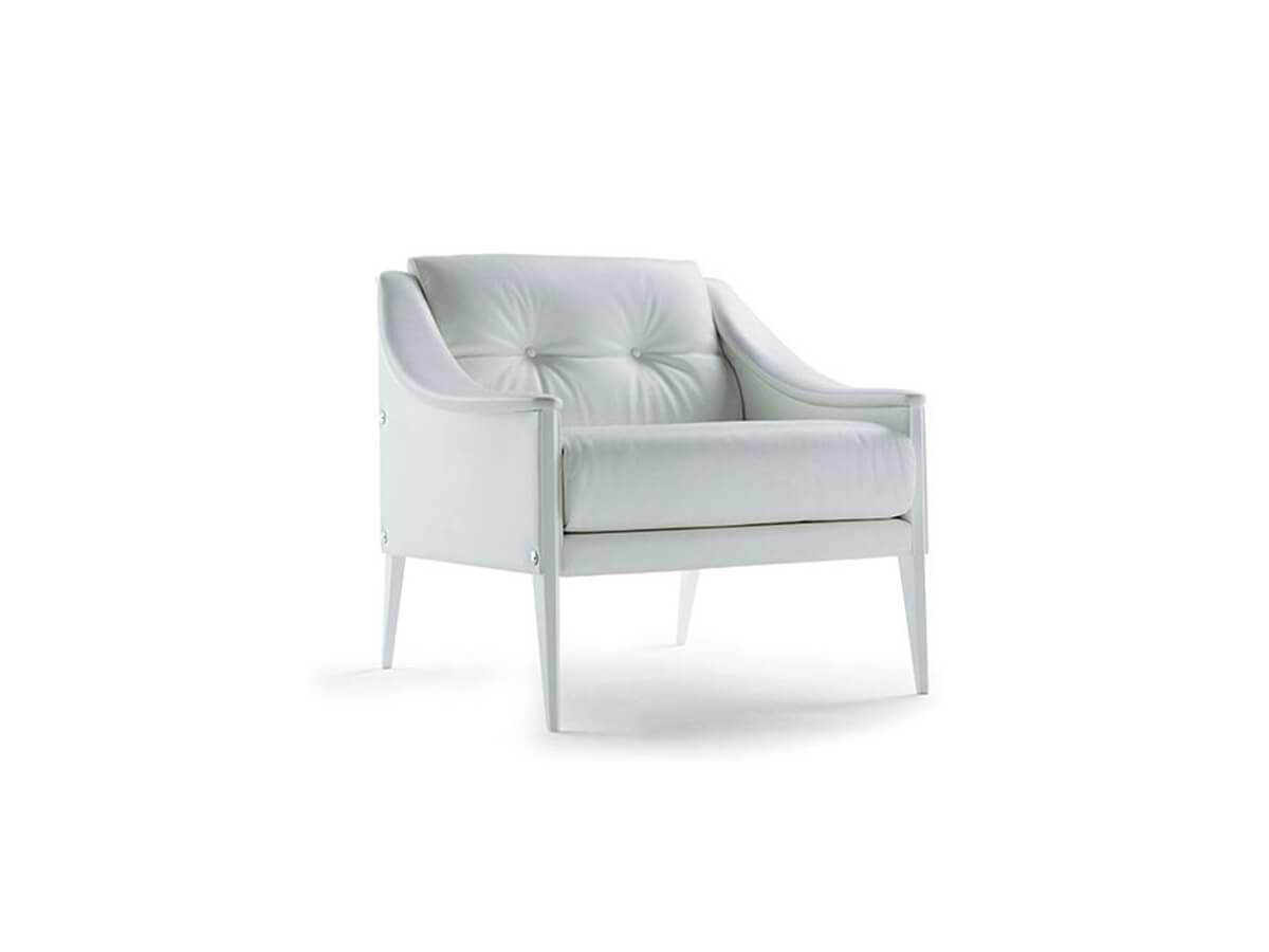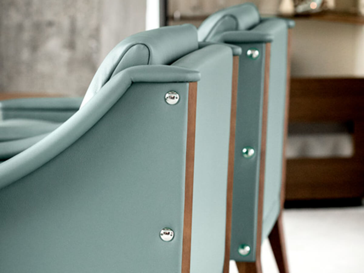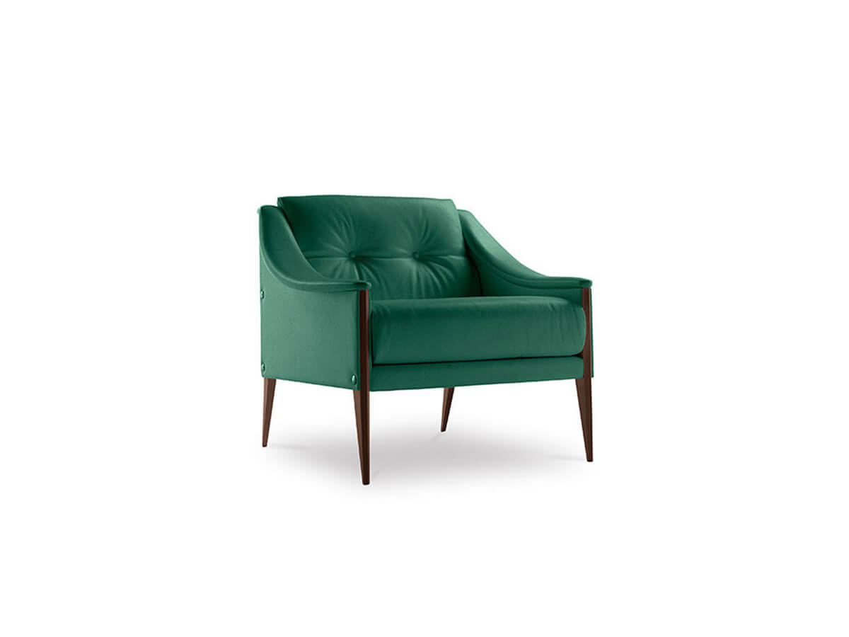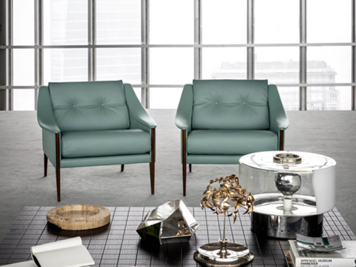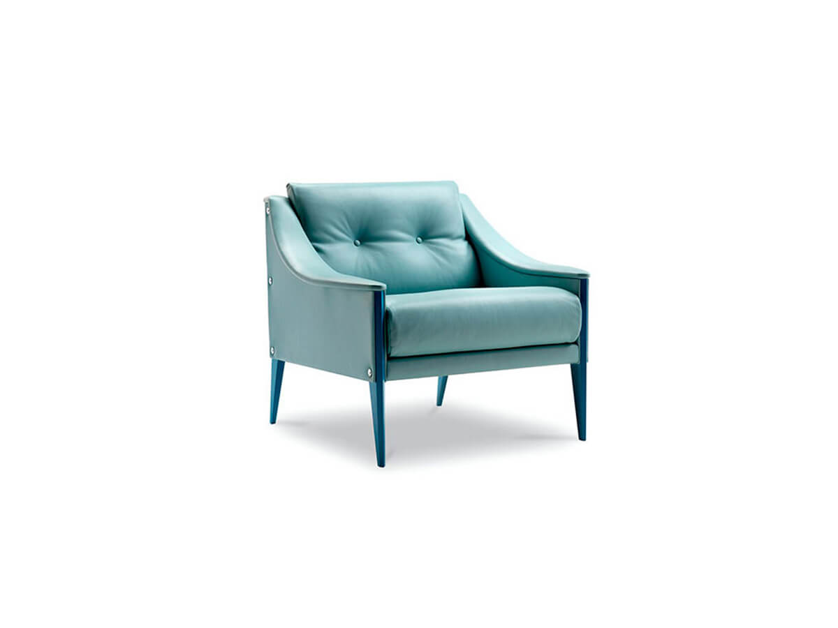 Come l’omonimo divano, la poltrona Drezza rappresenta un esempio ben riuscito di eleganza, qualità progettuale e finezza strutturale. Dal 1965 ha saputo mantenere invariato il proprio fascino, regalando suggestioni di un design senza tempo sia dal punto di vista formale che metodologico. La tradizionale gamba a sezione triangolare è divenuta un caposaldo del settore. La poltrona Dezza è confortevole e facile da adattare a qualunque ambiente grazie anche ai braccioli sottili che rendono possibile l’accostamento di due o più elementi. La poltrona 48 è dotata di un poggiatesta in piumino d’oca integrato nello schienale. Il rivestimento in Pelle Frau® esalta la qualità delle forme, donando un tocco di forte personalità alla struttura nel suo complesso.