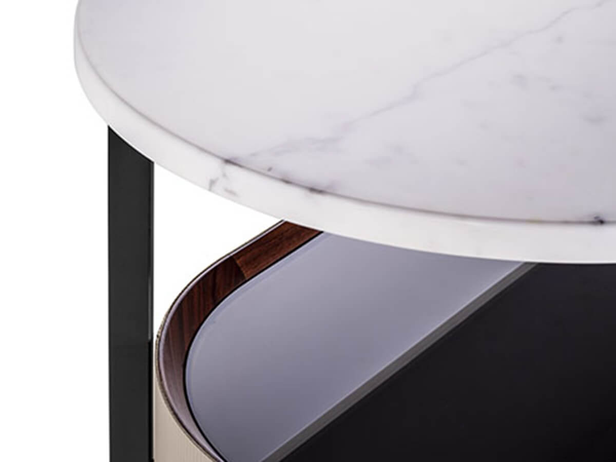 *Prezzo valido per la versione Low – top in vetro bronzato – piano sopraelevato in marmo Marquinia semi-brilliant – con 4 ante apribili a due a due con sistema a libro – frontali, fianchi e retro rivestito in cuoio Saddle Extra con lavorazione Canneté – base in acciaio brunito (cod. 5660780 - 5PF0066007817).