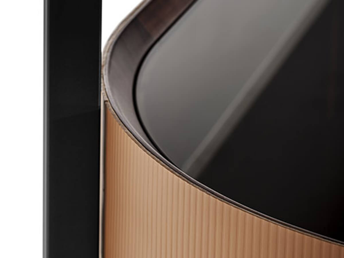 *Prezzo valido per la versione High – top in vetro bronzato – piano sopraelevato in marmo Marquinia semi-brilliant – con 2 ante – frontali, fianchi e retro rivestito in cuoio Saddle Extra con lavorazione Canneté – base in acciaio brunito (cod. 5660785 - 5PF0066007819).