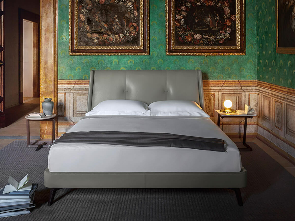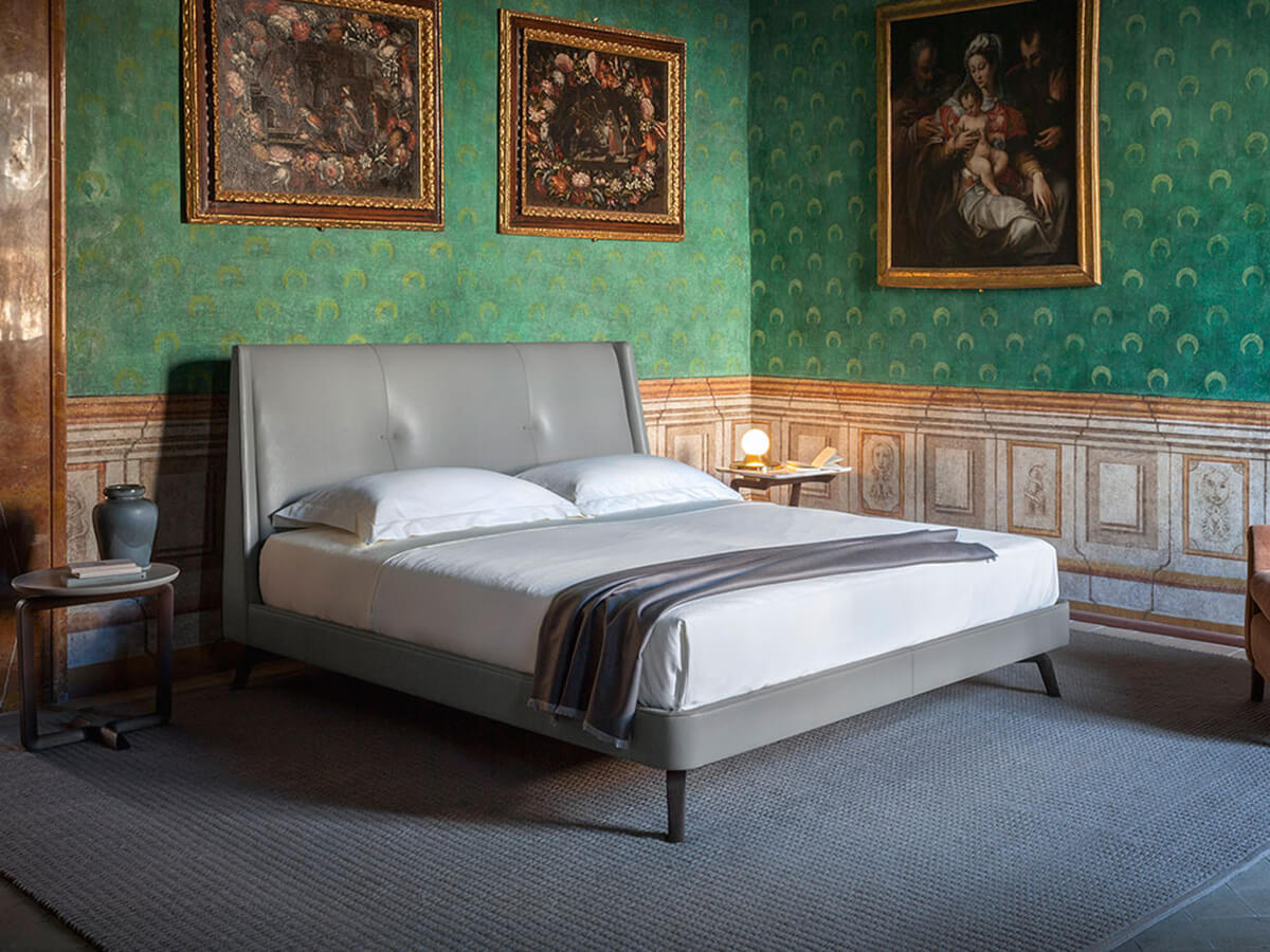 *Prezzo valido per la versione Extra per materasso 160x200 cm (non incluso) – rivestimento in pelle SC – retro testata in tela – piedini rivestiti in pelle – rete a doghe inclusa (cod. 5604270 Extra - 5PF0060407265 + 2 x 5050831 - 5PF0005010639).