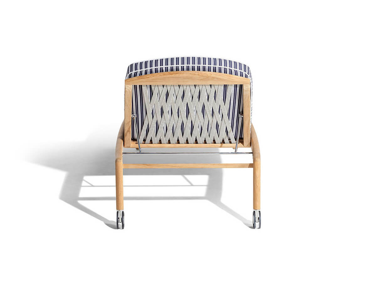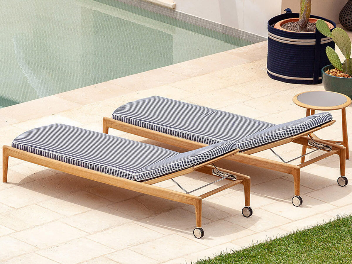 Il designer Roberto Lazzeroni firma per Poltrona Frau una collezione completa di mobili e complementi outdoor di cui fa parte il lettino The Secret Garden. La struttura è in legno massello di teak al naturale come le doghe della base. Lo schienale reclinabile è impreziosito da un intreccio di fettucce piatte di colore ecrù o taupe .Il materassino, dallo spessore generoso, è rivestito con cura sartoriale da tessuti idrorepellenti disponibili in una vasta gamma di finiture. Le ruote posteriori unidirezionali ne agevolano lo spostamento in base alle esigenze. Il lettino The Secret Garden arreda con eleganza e funzionalità terrazze, verande,zone relax e spazi a bordo piscina di location private o pubbliche.