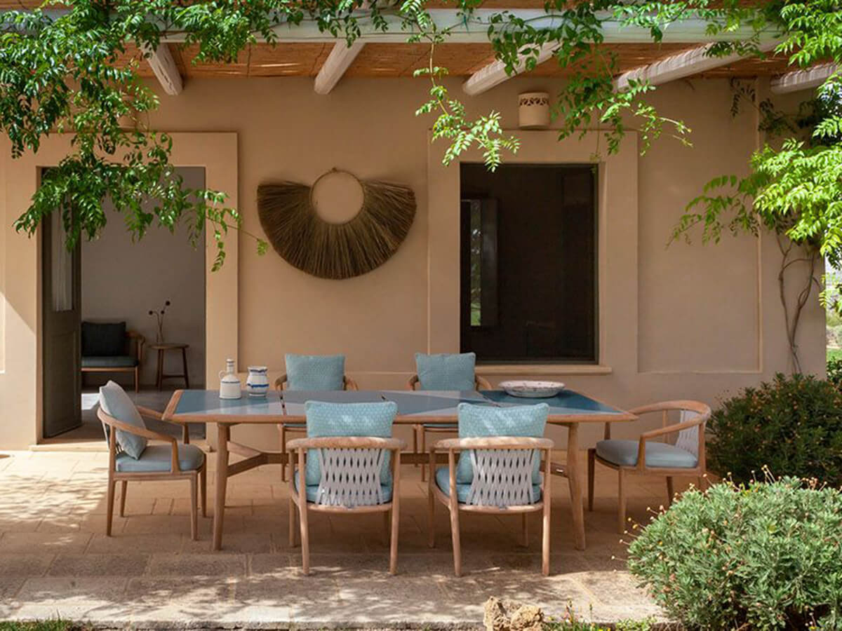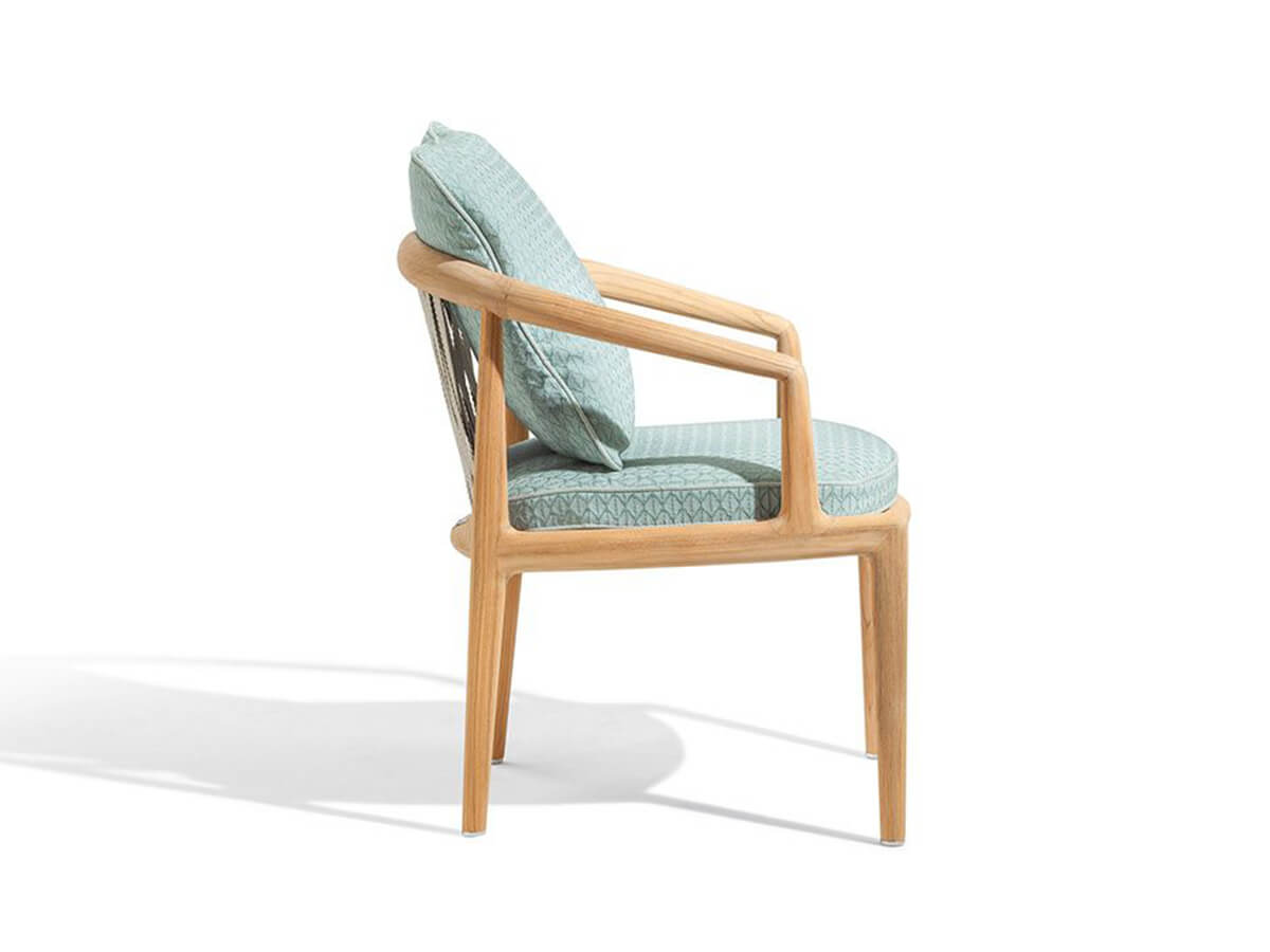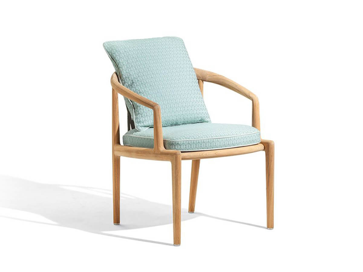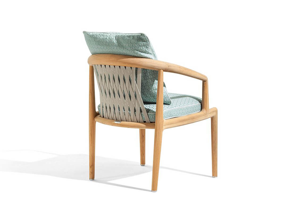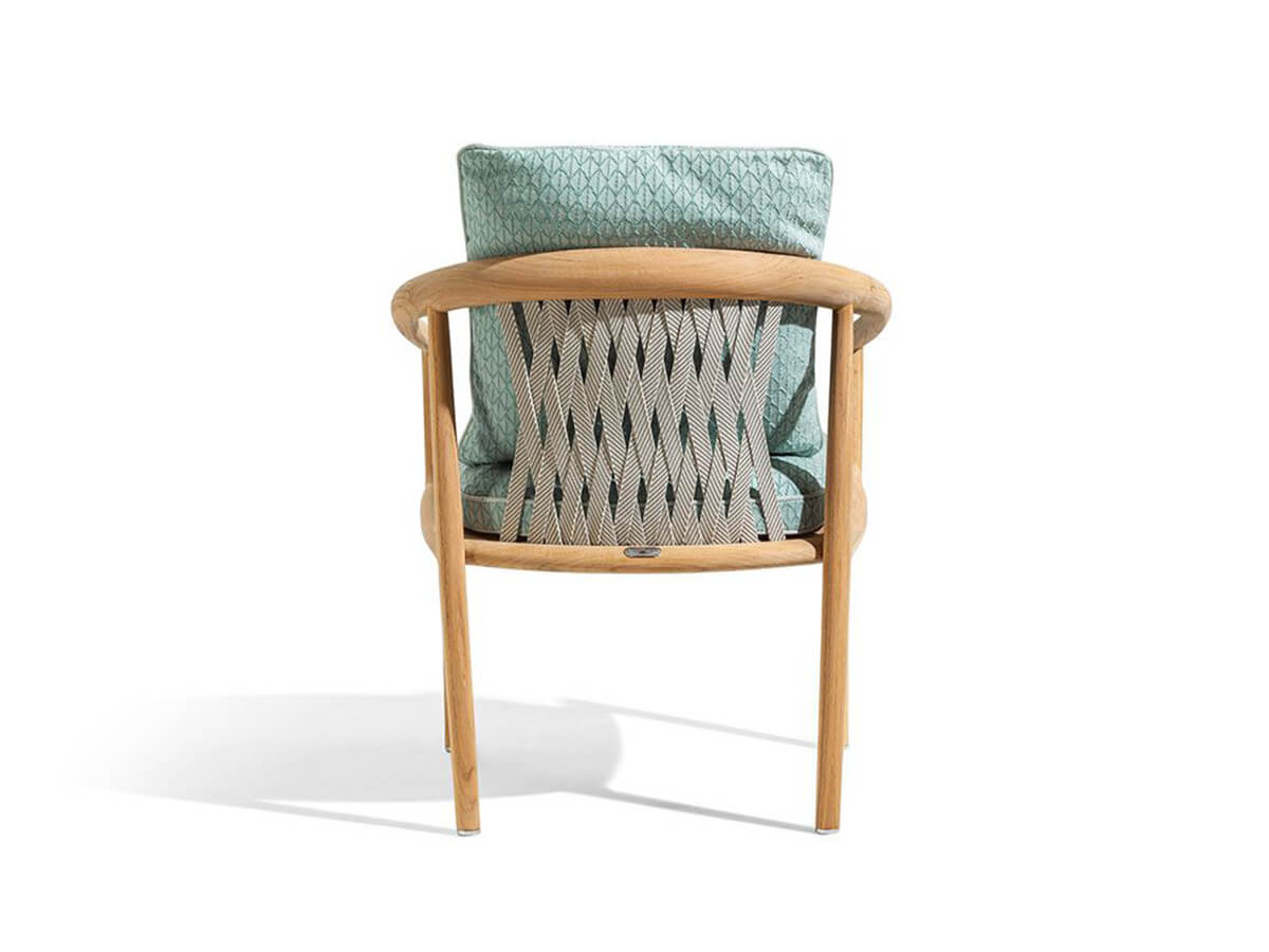 L’elegante sedia da esterno The Secret Garden , progettata dal designer Roberto Lazzeroni per il noto brand Poltrona Frau, nasce come completamento naturale del tavolo della stessa collezione. La struttura è in massello di teak con finitura naturale, come i braccioli e le doghe della seduta. Lo schienale avvolgente presenta un originale intreccio di fettucce di cotone colore ecrù o taupe . I cuscini della seduta e dello schienale sono rivestiti in tessuti adatti all’outdoor, idrorepellenti e sfoderabili, arricchiti da un cordolo che ne sottolinea con grande artigianalità i profili. La poltroncina da esterno The secret garden è facilmente utilizzabile in verande,patii ,terrazze sia in contesti residenziali che contract.