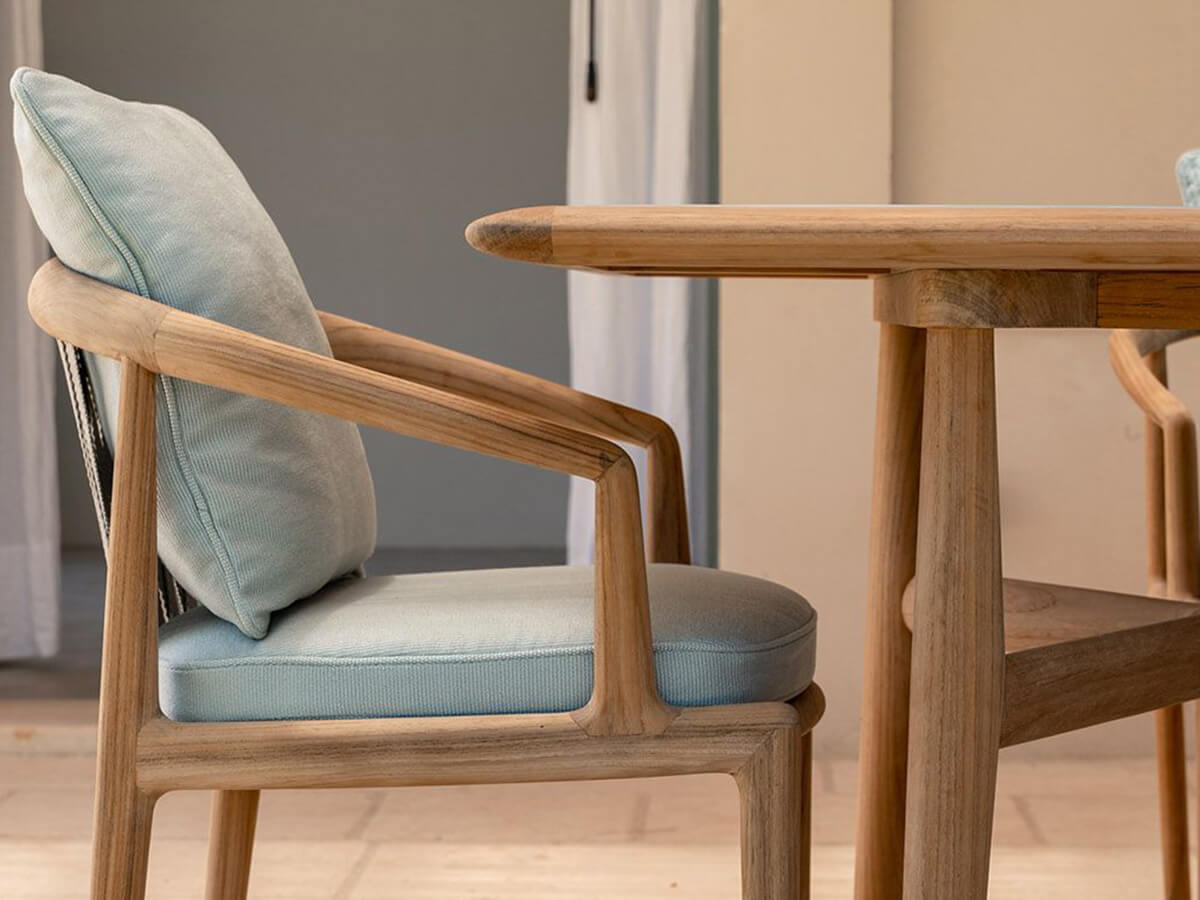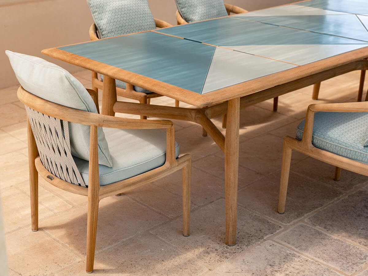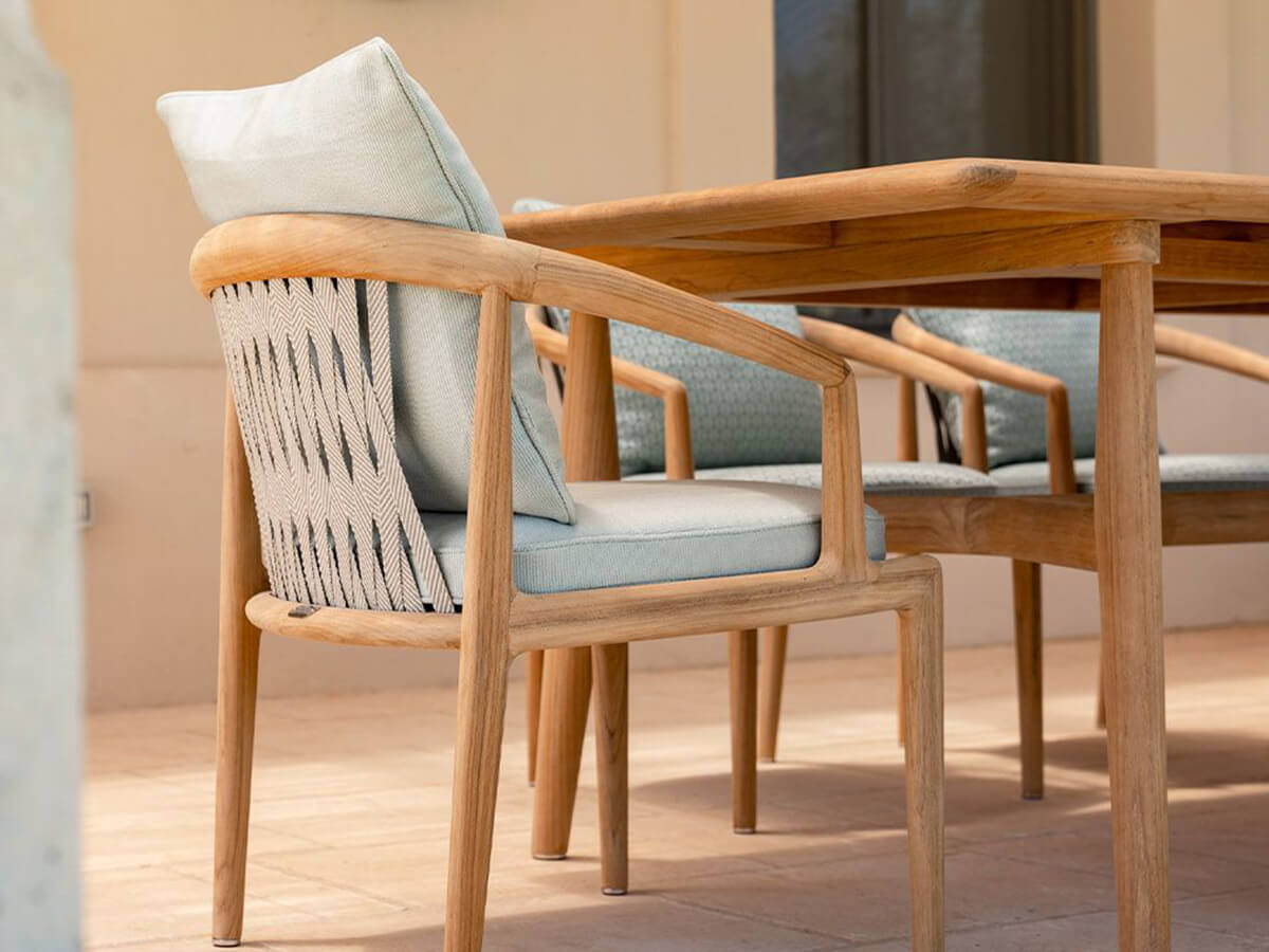 *Prezzo valido per la versione con struttura in teak e schienale con cinghie in polipropilene - cuscino seduta e n.01 cuscino schienale cm 47x47 rivestiti in tessuto cat. B (cod. 5669101 - 5PF0066907958 + 5669561 - 5PF0066917970).