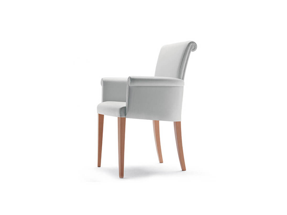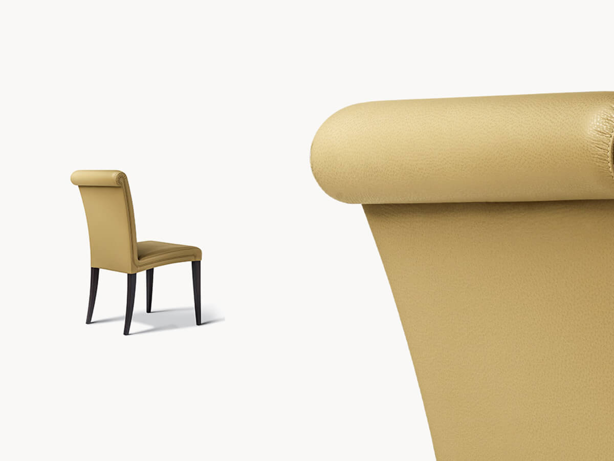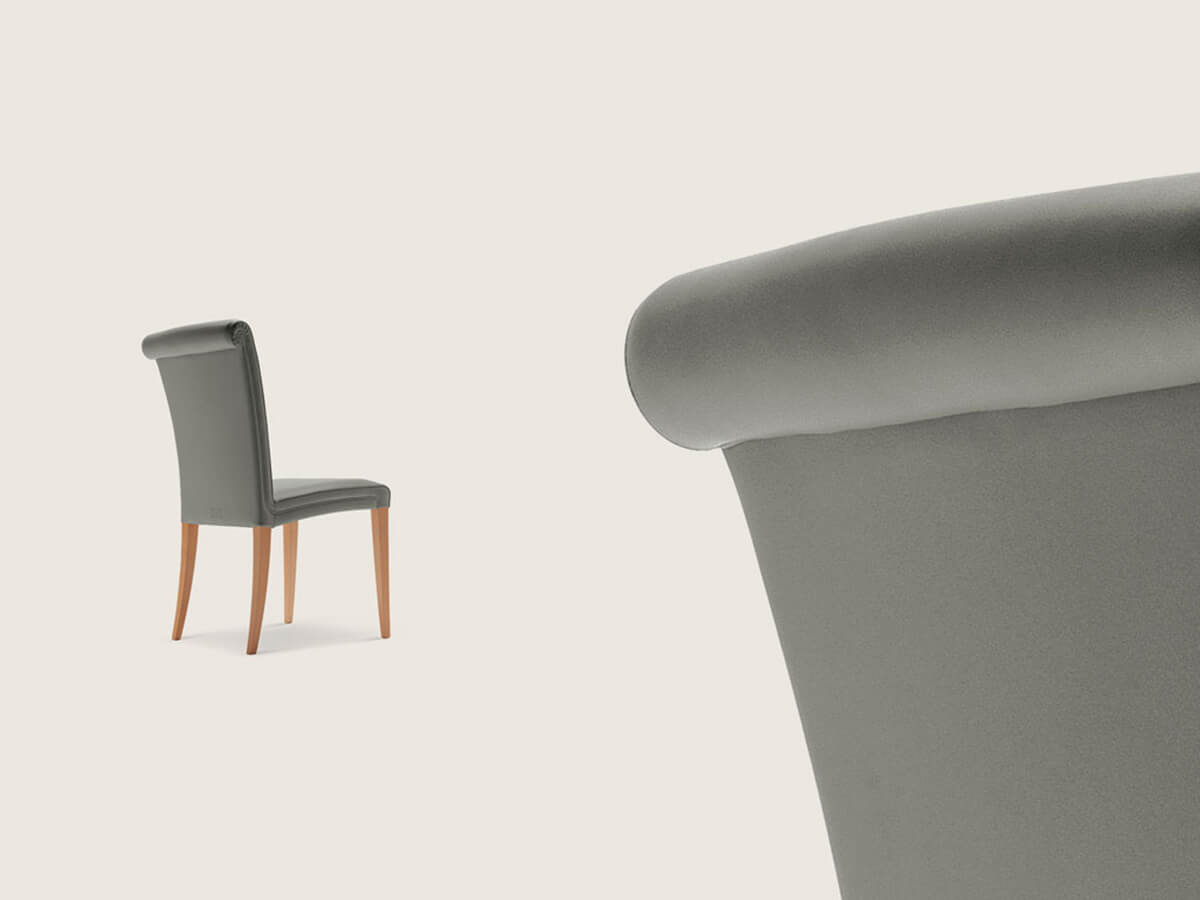 La sedia Vittoria si distingue dalla vasta gamma di proposte Frau per lo schienale che termina con una voluta aperta appena accennata e per il tradizionale rilievo di bordura a filetto. Questi elementi estetici non solo la rendono particolarmente elegante, ma arricchiscono la fisionomia di peculiarità alquanto preziose. Vittoria comprende due modelli: sedia e poltroncina, che riprende nei braccioli pieni il caratteristico disegno a voluta. In tutte le versioni si può notare la struttura in legno massello e gambe in frassino, sebbene siano presenti finiture speciali. I rivestimenti sono disponibili in diverse possibilità per meglio adattarsi a gusto e necessità d’arredo per lo spazio living e dining. *Caratteristiche tecniche: gambe disponibili anche in frassino tinto al campione oppure laccato Ral con sovrapprezzo.