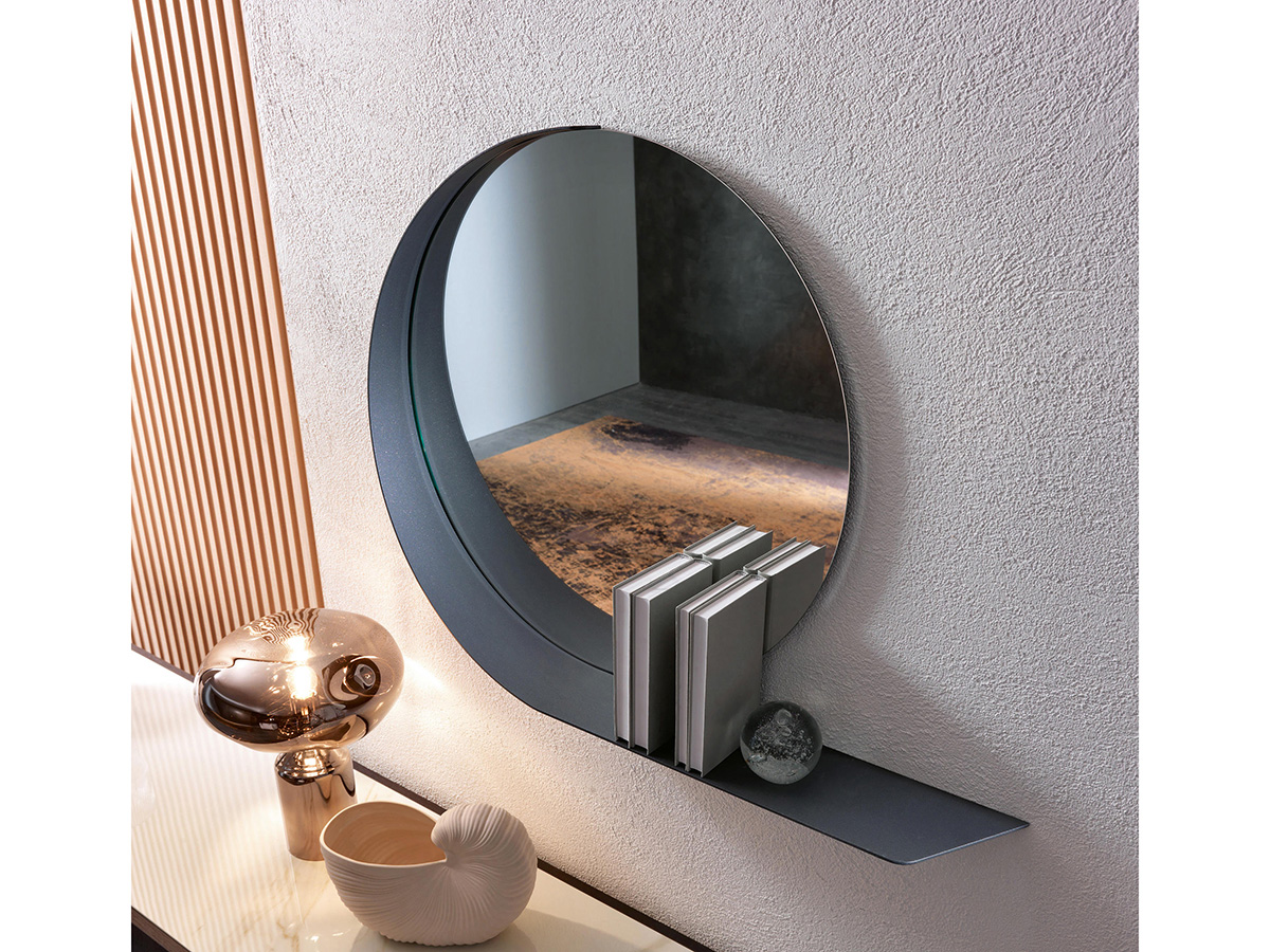 Un oggetto dal sapore estremamente unico ed elegante, capace di catalizzare l’attenzione grazie al proprio tocco caratteristico che profuma di novità e al contempo ritorno alle origini. Madame è uno specchio la cui cornice avvolge la circonferenza della superficie riflettente per circa metà per poi andare oltre, prolungando la sua propaggine fino a farsi grazioso piano d’appoggio. Integrati tra loro, specchio e mensola riesco a creare un abbraccio sinuoso, una parentesi intrigante che rimanda a una netta sensazione di equilibrio ed eleganza difficilmente imitabili. Ideale in qualsiasi ambiente, Madame è un elemento unico che può essere posizionato ovunque lo si desideri.
