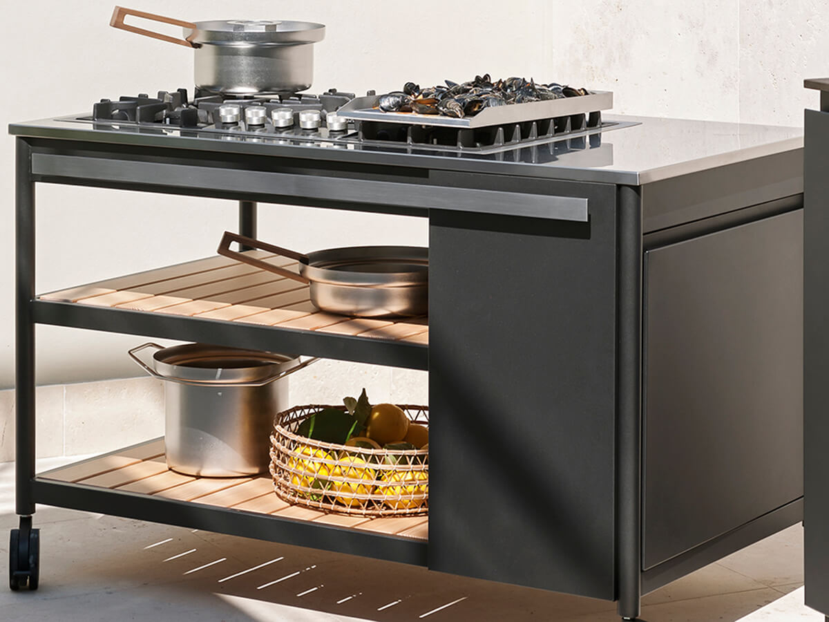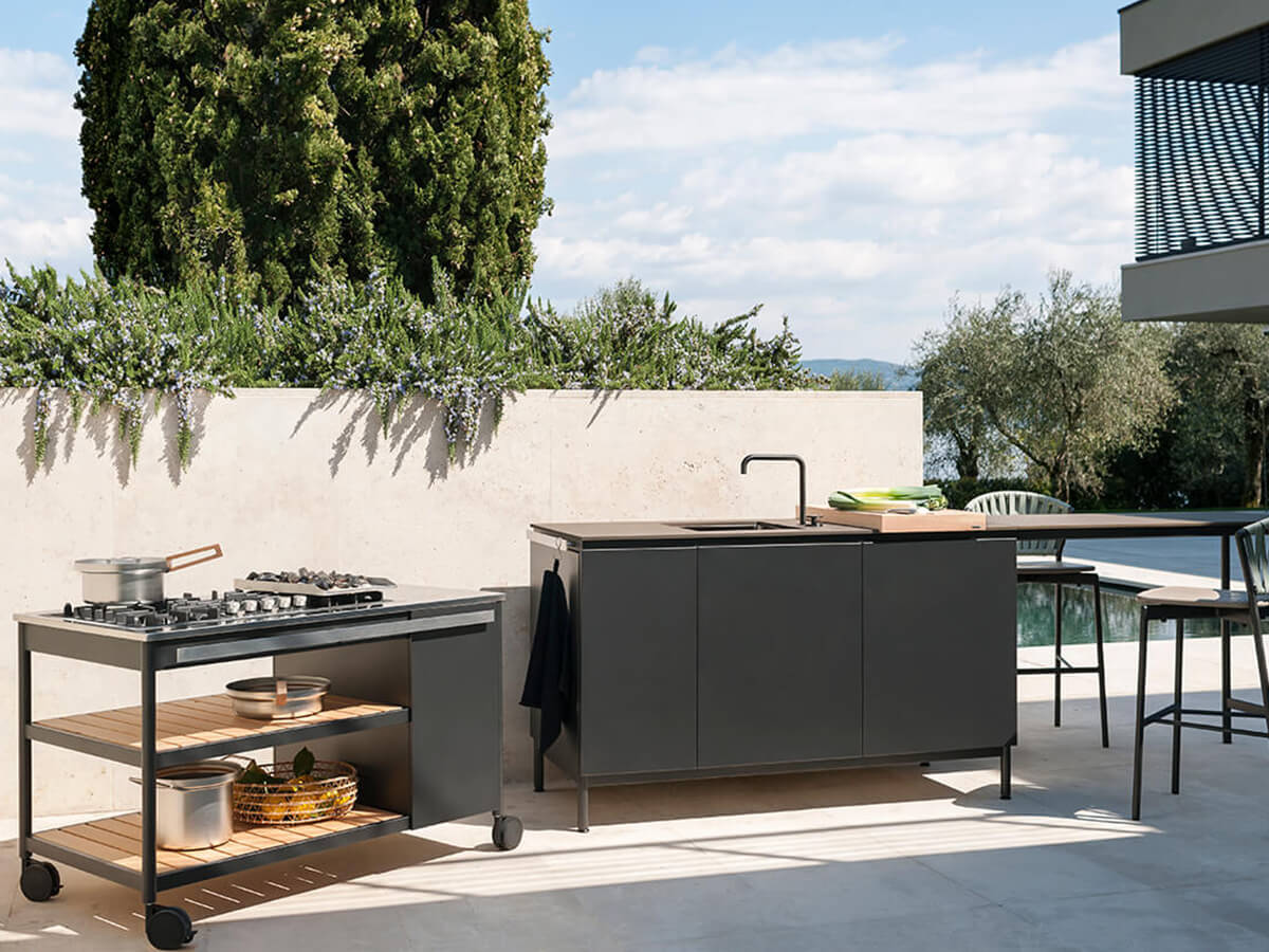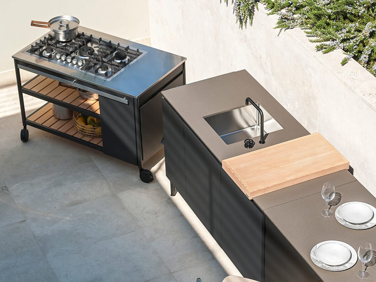 Firmata dalla design-star Rodolfo Dordoni, Norma è una cucina da esterno moderna, raffinata e minimale, perfetta per essere posizionata a bordo piscina o su ampie terrazze di lusso. Finiture e materiali sono durevoli e resistenti, oltre a permettere ottime performance. Norma ha un’anima modulare: composta da elementi indipendenti, può essere adattata a spazi più contenuti ma anche essere proposta in composizioni più ampie e spettacolari. Fra i moduli più importanti vi sono un’isola con lavandino e un piano cottura su ruote, ai quali poi può essere affiancata anche una penisola utilizzabile come estensione dell’area di lavoro o come piano per il pranzo.