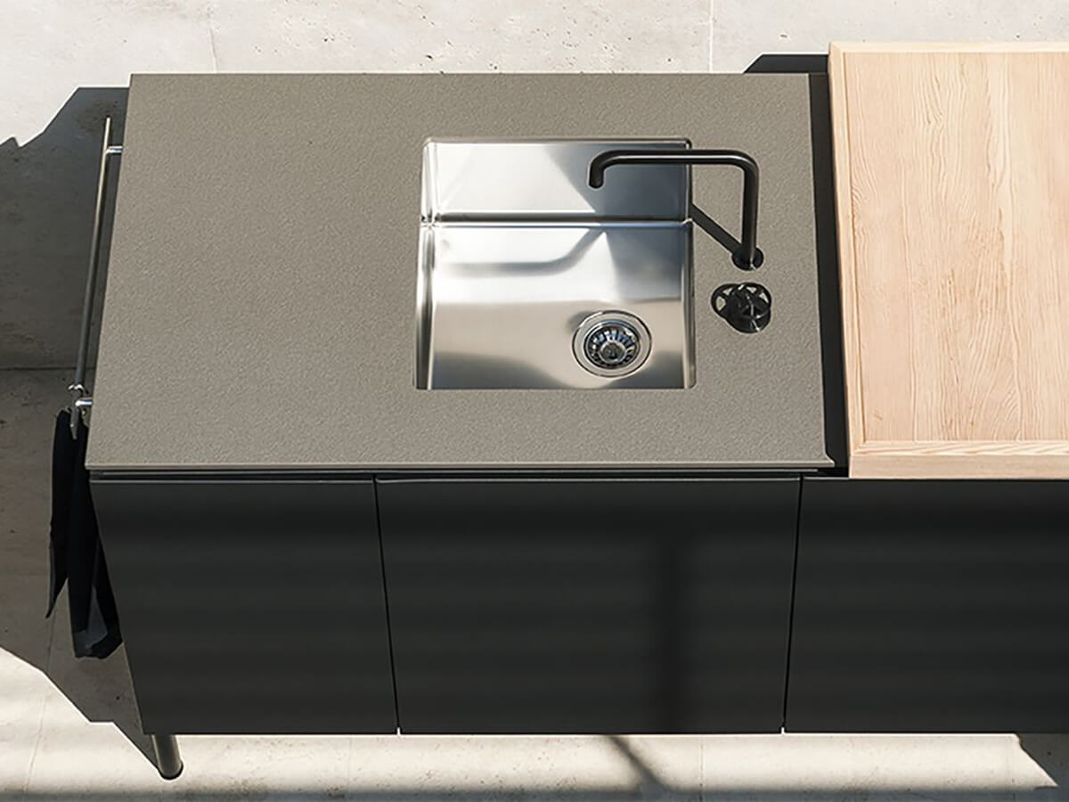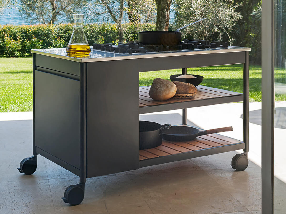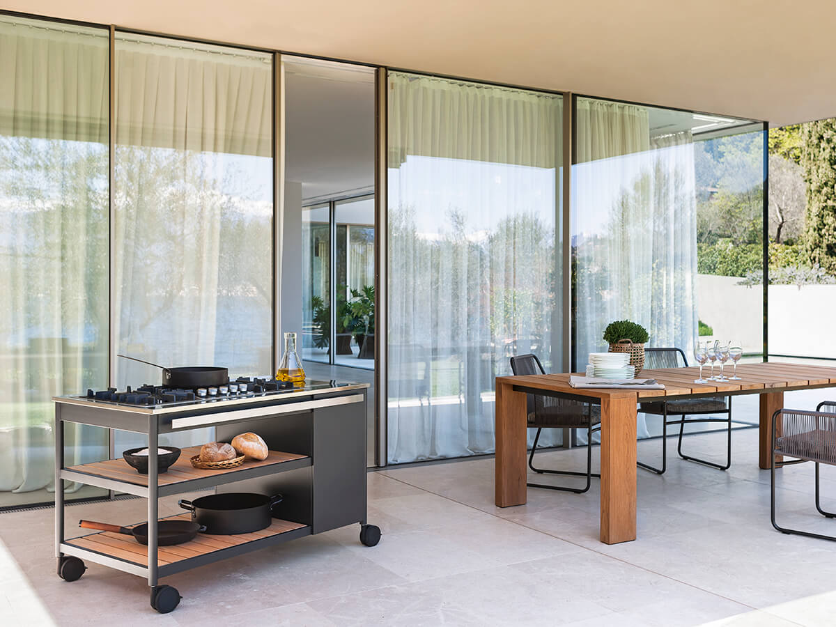 Firmata dalla design-star Rodolfo Dordoni, Norma è una cucina da esterno moderna, raffinata e minimale, perfetta per essere posizionata a bordo piscina o su ampie terrazze di lusso. Finiture e materiali sono durevoli e resistenti, oltre a permettere ottime performance. Norma ha un’anima modulare: composta da elementi indipendenti, può essere adattata a spazi più contenuti ma anche essere proposta in composizioni più ampie e spettacolari. Fra i moduli più importanti vi sono un’isola con lavandino e un piano cottura su ruote, ai quali poi può essere affiancata anche una penisola utilizzabile come estensione dell’area di lavoro o come piano per il pranzo.