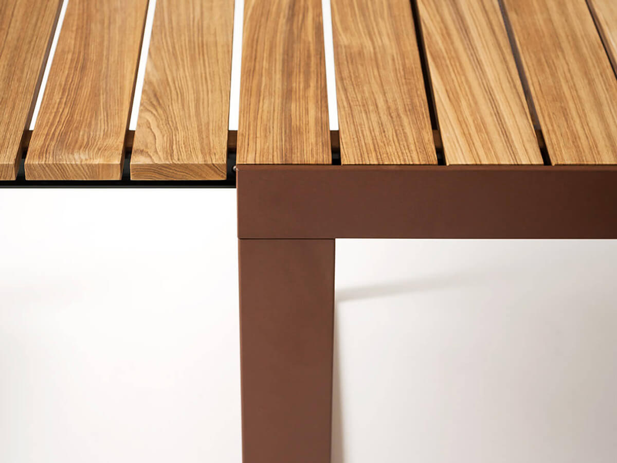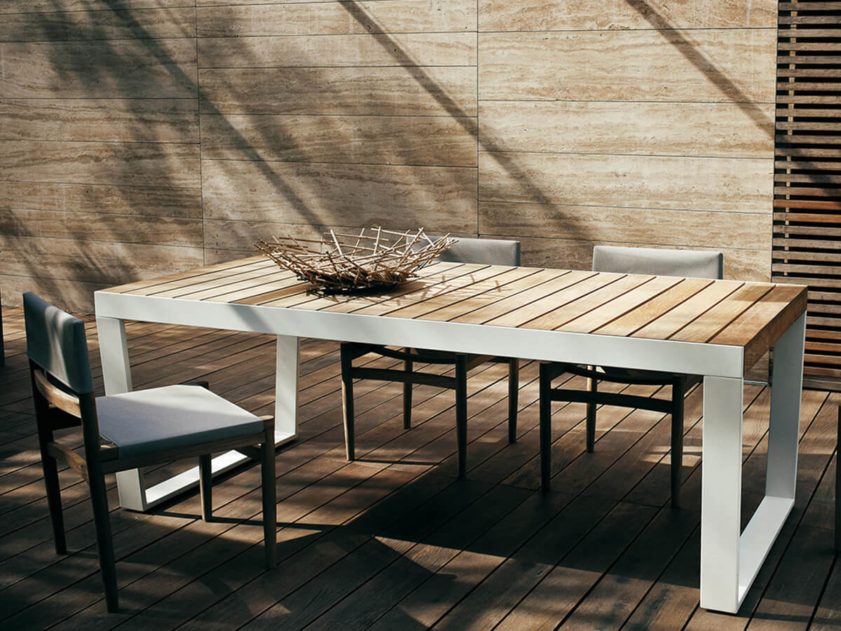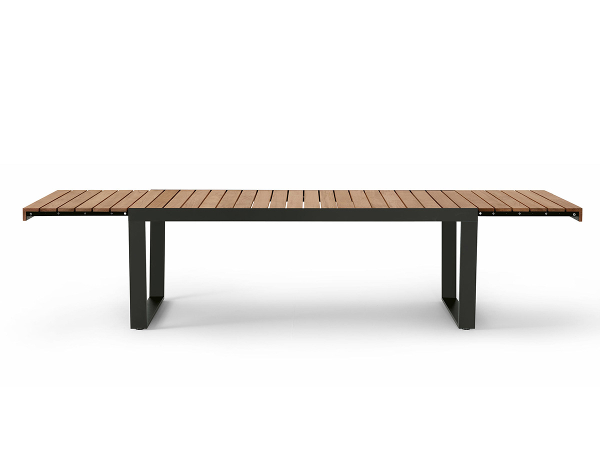 Numero uno nella produzione di arredi per l’esterno, Roda arricchisce le proprie collezioni con Spinnaker, una serie di tavoli allungabili che trae la sua forza da un design rigoroso ed estremamente moderno capace di catturare l’attenzione di un pubblico più che diversificato. Spinnaker può accogliere fino a dodici persone comodamente sedute e presenta un’apertura a ribalta dove il piano in doghe, disponibile in teak o in teak weather resistant scorre agevolmente sulle guide. Le gambe dal disegno geometrico e dal tratto continuo sono in acciaio inossidabile verniciato per esterno, ideali per resistere a ogni agente atmosferico e alla lunga permanenza all’esterno.