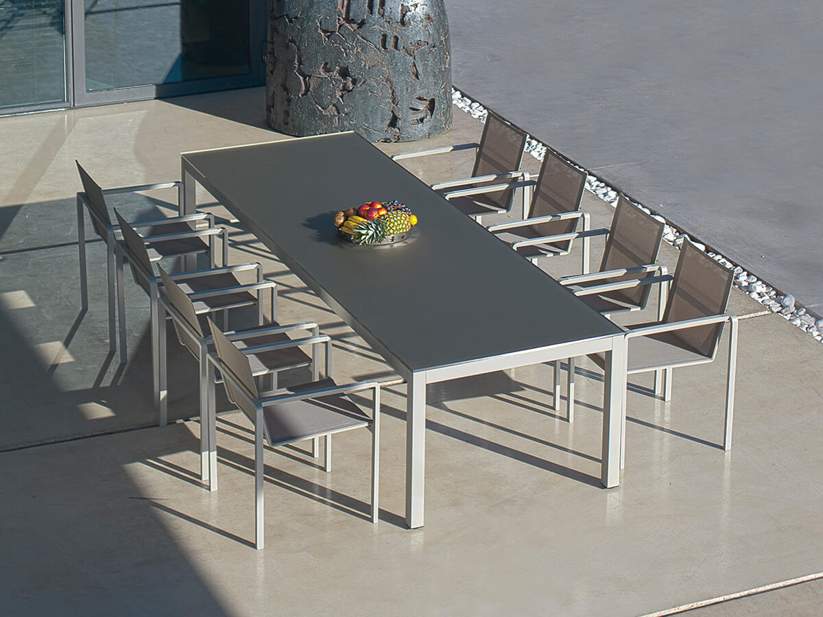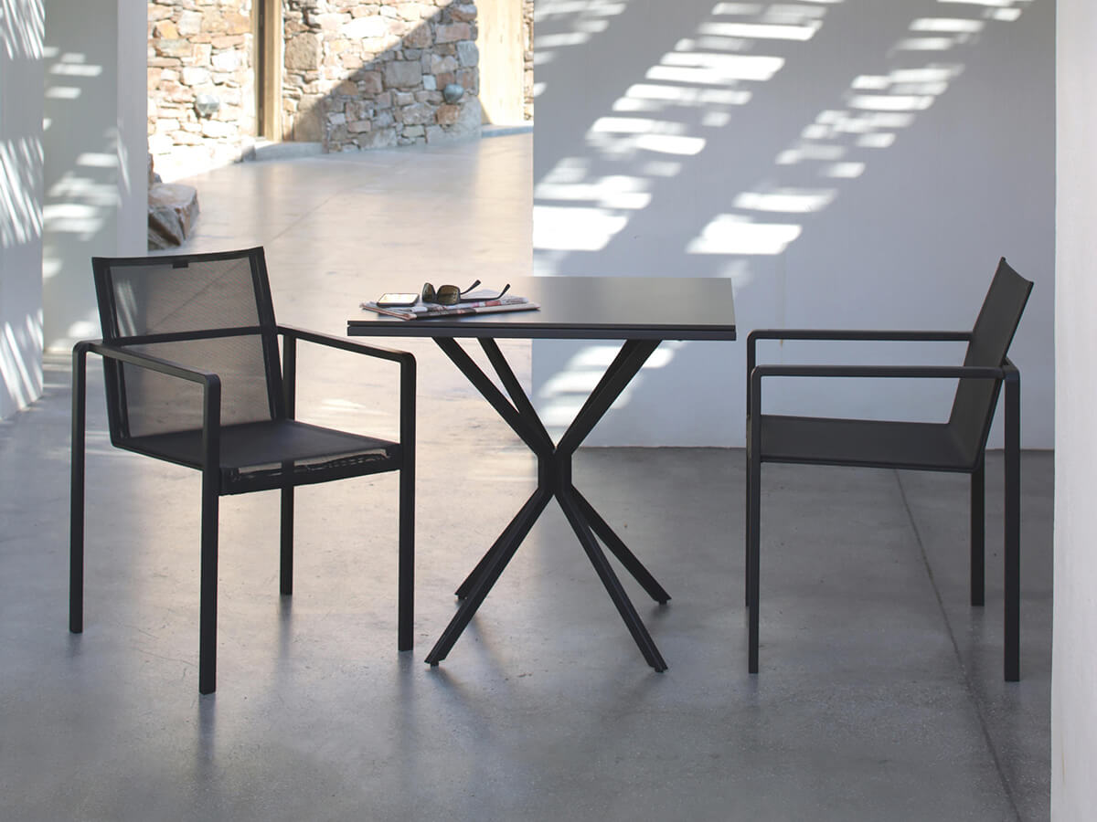 *Prezzo valido per la versione con braccioli senza inserto in teak – struttura in alluminio verniciato antracite e rete batyline nera – cuscini seduta e schienale esclusi (cod. ALR 55 TAZU).