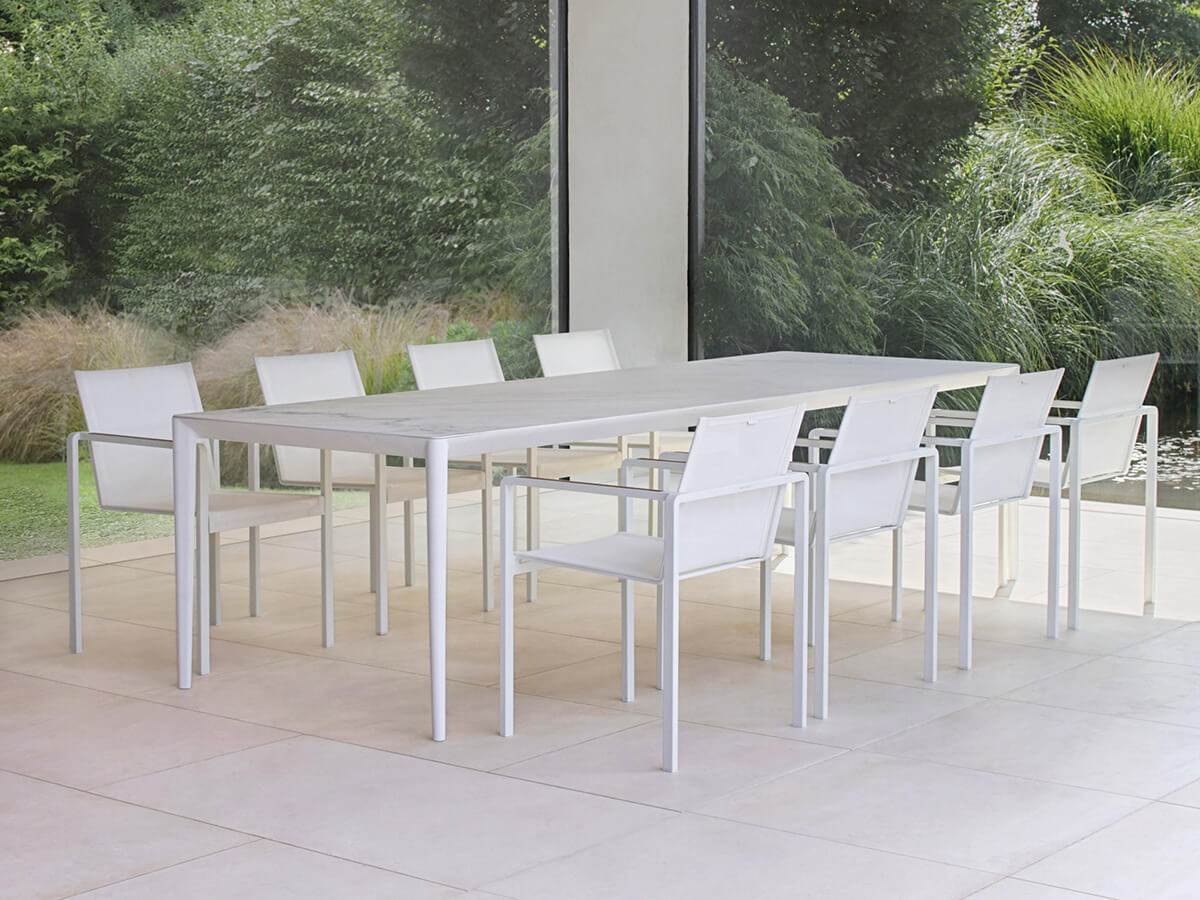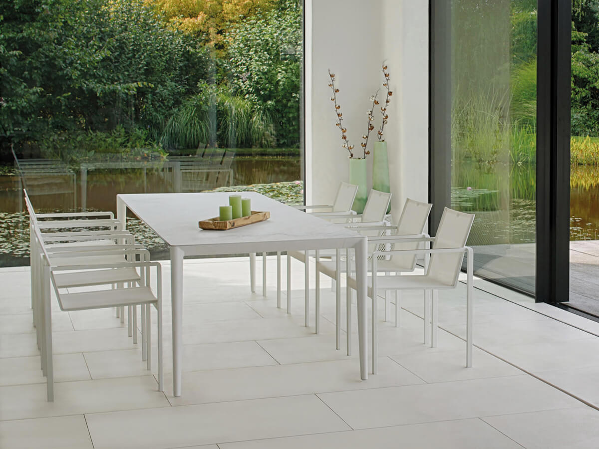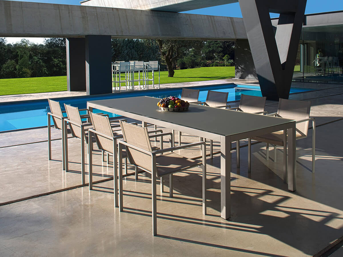 Linee squadrate e un design oltremodo essenziale caratterizzano la sedia Alura di Royal Botania. Peculiare è la sua struttura in alluminio, congeniata per renderla facilmente impilabile anche in grande numero. La seduta e lo schienale sono in tessuto Batyline, disponibile a sua volta in numerose colorazioni. La gamma di sedie Alura fanno da complemento a un lettino dall’ergonomia ineguagliabile: il semplice tocco di un pulsante attiva infatti un pistone idraulico nascosto all’interno del telaio, abbassando la seduta, sollevando lo schienale e la parte inferiore su cui poggiano le gambe. Ergonomia e resistenza agli agenti atmosferici sono punti chiave di Alura e del suo stile contemporaneo.