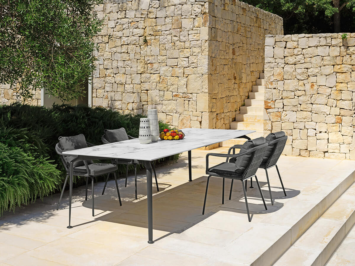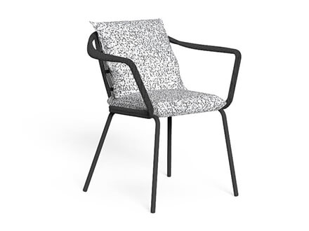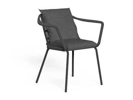Struttura Alluminio Verniciato Grafite - Schienale in Corda Dark Grey e Cuscini in Tessuto Dark Grey