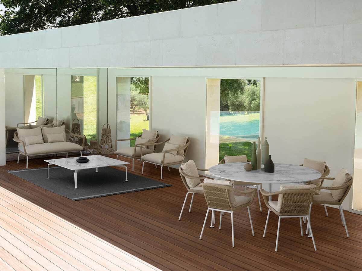 Struttura Alluminio Verniciato Bianco - Schienale in Corda Sand e Cuscini in Tessuto Mambo Sand