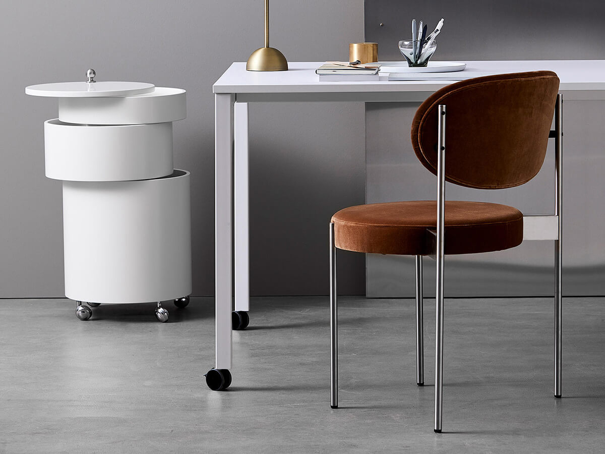 Storica seduta che dal 1967, anno della sua creazione, ha saputo catturare l’interesse di una clientela internazionale. La sedia 430 di Verpan nasce dal genio di Verner Panton che presenta una seduta per la prima volta a 4 gambe dalle forme organiche e rivestimento particolarmente elegante. L’idea alla base consisteva nel creare una sedia la cui comodità potesse eguagliare quella di una poltrona. La sfida pare aver avuto successo grazie allo schienale ampio e avvolgente, seduta con imbottitura avvolgente e forme generose. Per la fisionomia, la sedia 430 si presta bene all’utilizzo domestico di spazi living e dining, ma può tranquillamente essere declinata in zone diverse come studi e altro ancora.