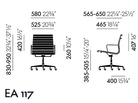 *Prezzo valido per la versione EA118 girevole – con braccioli – con schienale medio alto e posizione da scrivania – rivestimento in tessuto cat. F60 e basamento a cinque razze su ruote in alluminio (cod. 412 329 00).