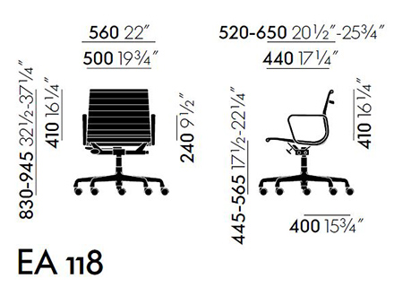 La sedia Aluminium Chair nasce nel 1958 per la residenza privata di un collezionista d’arte a Columbus. Charles &Ray Eames la disegnano stendendo un pannello di tessuto o pelle tra due longheroni in alluminio così da creare una seduta tesa, resistente ed elastica. Ne deriva una seduta estremamente confortevole, capace di accogliere il corpo anche senza l’utilizzo di imbottiture voluminose. Le sedie in alluminio EA 101, EA 103 e EA 104 sono ideali per la zona pranzo, da abbinarsi ai tavoli sia per volume che altezza. Si differenziano qui per la tipologia di base, fissa o girevole e la presenza di braccioli abbinati. Citiamo inoltre i modelli EA 117 - 118 – 119 egualmente interessanti per le diverse scelte di stile e gusto dell’ambiente casalingo.