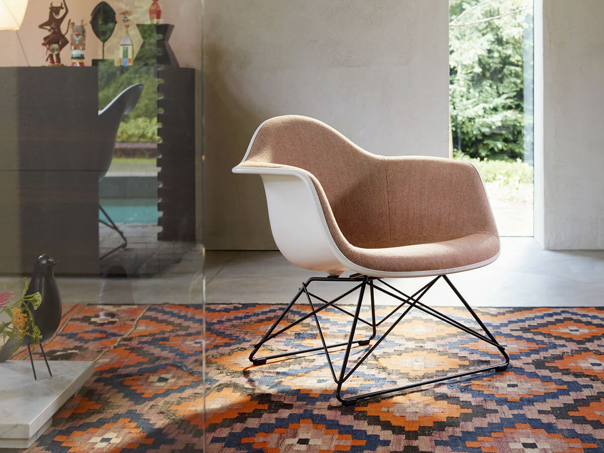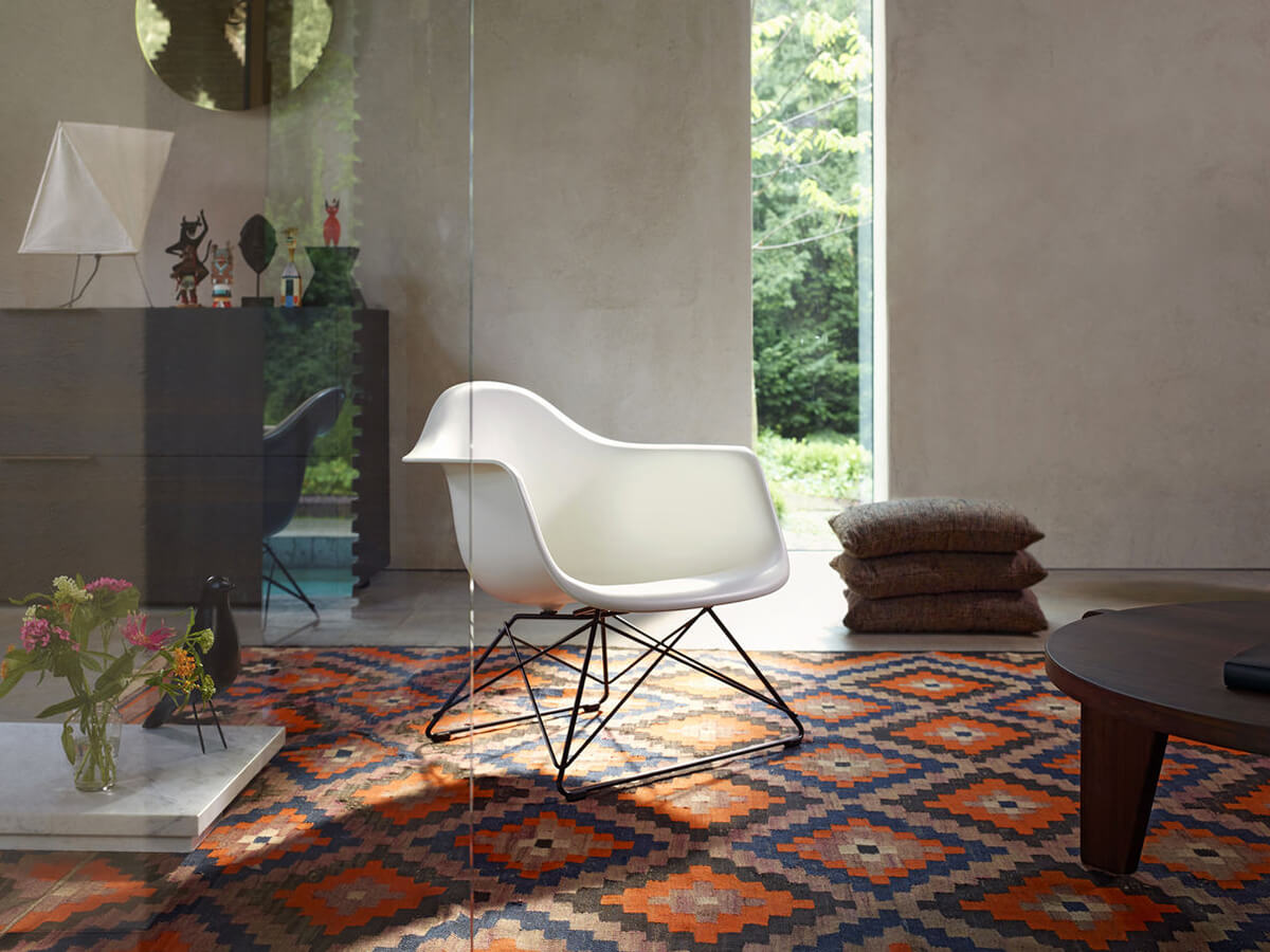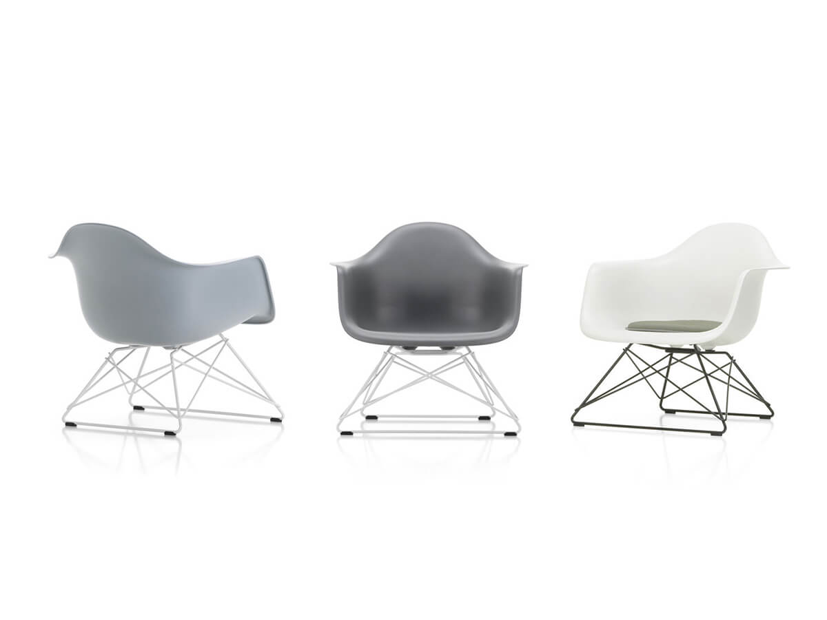 La sedia in plastica Eames Plastic Armchair è la versione rinnovata della leggendaria sedia in fibra di vetro di Charles & Ray Eames. La versione LAR si distingue dalle numerose varianti per la base in filo con traverse, soprannominata “Cat’s Cradle” in riferimento al gioco delle corde per bambini e divenuta presto celebre per l’estrema solidità e stabilità che conferisce all’intera struttura. La fisionomia elegante e finemente studiata di questa poltroncina la rende anche un pezzo solista, perfetto da presentarsi come unico oggetto d’arredo in qualunque ambiente della casa. Fra le numerose varianti citiamo qui la Eames Fiberglass Armchair LAR, con scocca di fibra di vetro.