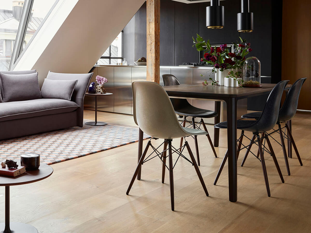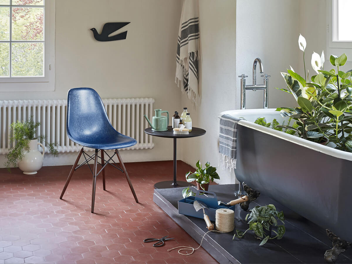 La sedia Eames Fiberglass Side Chair DSX è una delle iconiche sedie di Vitra, prodotta a partire dagli anni ’50 e ancora oggi caposaldo dell’azienda nel continuo evolversi del design contemporaneo. La scocca della seduta, ergonomica e disegnata per accogliere le forme del corpo in un abbraccio confortevole è realizzata in vetroresina colorata. Resistenza e versatilità sono i punti fermi di questo modello che negli anni è spesso stato imitato ma mai eguagliato. Fra le numerose varianti ricordiamo la DSR con gambe in metallo articolate nel tipico disegno a Tour Eiffel e la DSW con gambe in legno.
