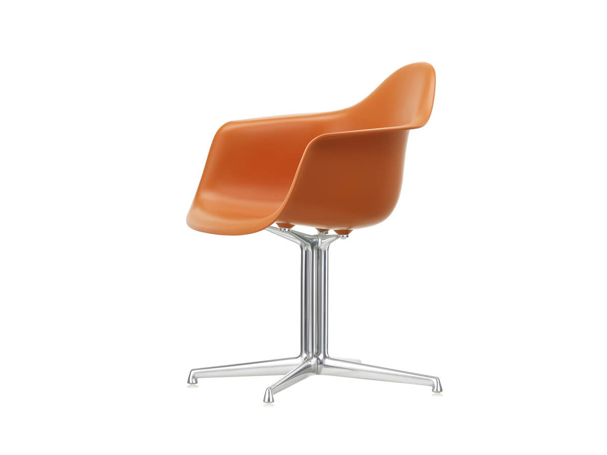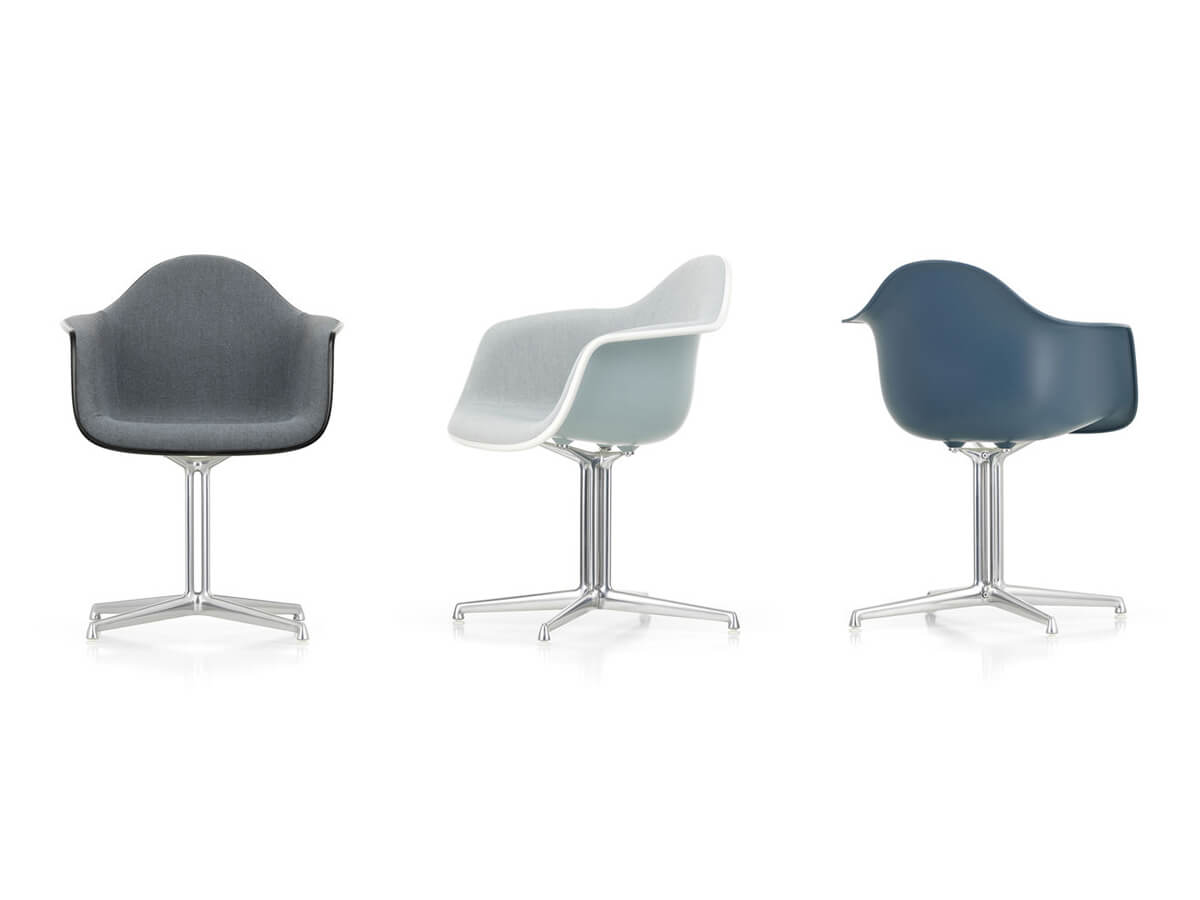 La Eames Plastic Armchair DAW nasce come versione restaurata della celebre Fiberglass Chair, primissima sedia realizzata in materiale sintetico e prodotta industrialmente in collaborazione con Zenith Plastics per il concorso “Low-Cost Furniture Design” realizzazione dal MOMA. Oggi le nuove versioni in polipropilene sono ancora più confortevoli, ma mantengono inalterata la struttura base che le ha ispirate. Le diverse versioni differiscono principalmente per il disegno e finiture delle gambe: la DAW in legno, la DAR in acciaio, la DAX per un disegno più minimal, la DAL per l’adozione di un unico piede con quattro razze, e la PACC per l’aggiunta delle rotelle. Ogni modello mantiene comunque inalterata la scocca, inalterato marchio di fabbrica.