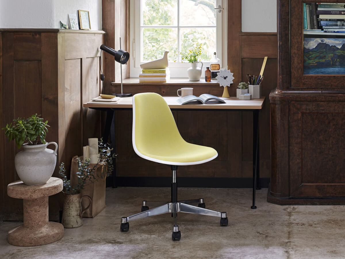 La sedia Eames Plastic Chair DSR rientra nell’omonima collezione disegnata da Charles e Ray Eames, inizialmente distribuita dall’azienda Herman Miller in America e in seguito diffusasi anche in Europa grazie all’azienda Vitra. Fra i diversi modelli presenti sul mercato, la DSR si differenzia perché unisce la scocca della sedia alla celebre base a Tour Eiffel. Il risultato è un design elegante e privo di sbavature, figlio del nostro tempo anche grazie alla rinnovate misure: più confacenti alle generazioni moderne e con materiali green in grado di migliorarne l’impatto ambientale. Fra le diverse varianti citiamo la DSX e la PSCC, con o senza cuscino a seconda della comodità richiesta.