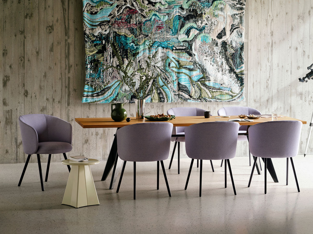 Mikado è una seduta di Vitra che ben si accorda ad ambienti formali di uffici, sale riunioni e zone living di diversa natura, ma che vive perfettamente e anzi esalta la bellezza di spazi domestici dove si senta il bisogno di aggiungere un tocco di personalità. Mikado è una sedia imponente che punta a colpire per forma e comodità. L’imbottitura della seduta è su tutti i lati, sia la base che i braccioli e lo schienale, così da accogliere il corpo e offrire un’esperienza appagante e accogliente. Numerose sono le colorazioni disponibili, per adattarsi a diversi stili e ambienti. Inoltre può vantare molte finiture sia per la parte imbottita, con tessuti di diversa entità, che per i piedi, anche qui disponibili in numerose varianti.
