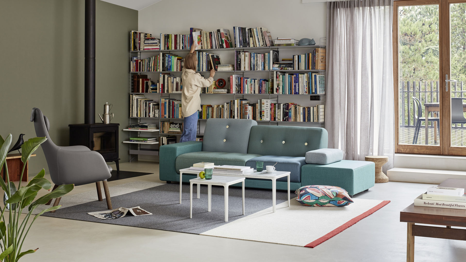 vocativo e divertente, Polder è un divano che si presta a diverse interpretazioni, dalla più giocosa alla più formale. Nella lingua della designer olandese Hella Jongerius, “polder” significa basse pianure, tipicamente ricoperte da campi e spazi agricoli. Questo divano pare ricordare proprio quello, dando vita a una suggestione di “appezzamenti” di diversi colori e altezze. Gli ampi cuscini di Polder Sofa e Polder Compact formano una superficie di seduta asimmetrica estremamente comoda, contornata da entrambi i lati dalla scocca imbottita. La variante Sofa offre molto spazio per stendersi e rilassarsi, mentre la Compact, più piccola, esalta al meglio l’aspetto estetico e lineare.