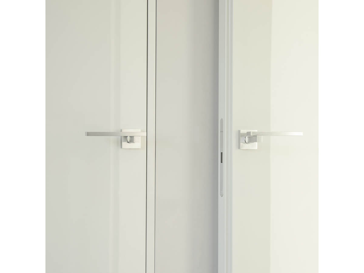 La porta battente V3 di Viva Porte, perfettamente complanare alla parete, si caratterizza per l’estrema versatilità e la facilità di installazione e per la sobria estetica moderna. V3 non presenta la necessità di murare telai o di compiere altri invasivi interventi architettonici ed è posizionabile agevolmente in vani finiti, siano essi in muratura o in cartongesso. V3 è priva di coprifili e il suo profilo è delineato unicamente dal sottile stipite telescopico, facilmente adattabile ad eventuali difformità del vano. L’anta, disponibile in diverse finiture, ha uno spessore di ben 58 mm, superiore di oltre il 40% rispetto alla maggior parte delle porte attualmente in commercio, ed è battuta su tre lati per evitare il passaggio della luce