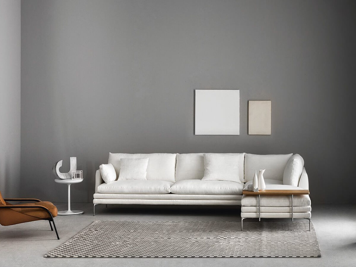 Il divano William rappresenta uno dei prodotti di punta della collezione di imbottiti Zanotta. Firmato dall’inglese Damian Williamson e disponibile sia in composizioni monoblocco che in più articolate versioni angolari o con chaise longue, William è un divano leggero adatto per ambienti freschi e giovani, seppur non privi di un tocco signorile. Leggermente rialzato da terra tramite sottili piedini metallici, risulta immediatamente riconoscibile per la caratteristica imbottitura “a strati” della seduta e per i poco ingombranti braccioli laterali. Introdotto originariamente nel 2010 e costantemente evolutosi nel corso degli anni, è ora disponibile anche con l’integrazione di comodi pianetti di sostegno.
