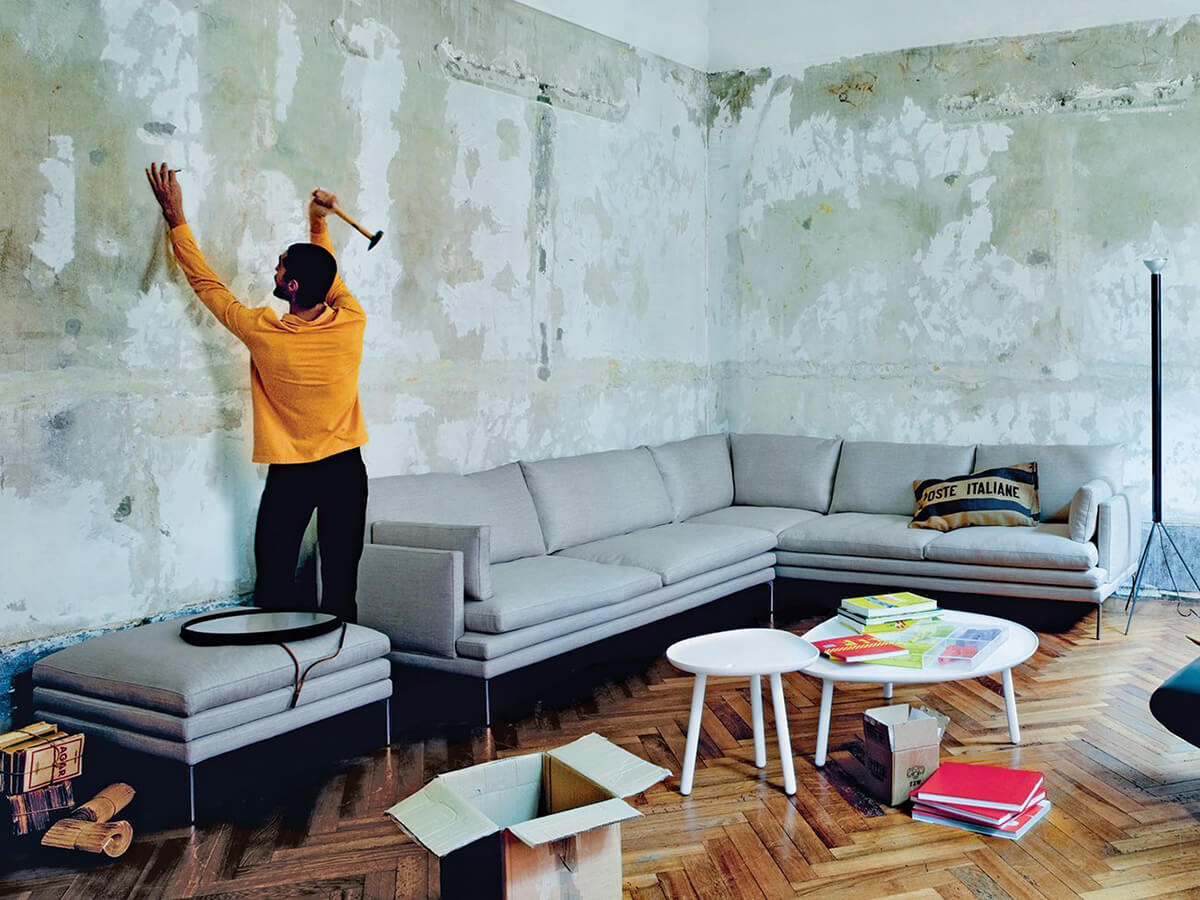*Prezzo valido per la versione angolare in L.266 x P.266 cm con rivestimento in tessuto cat. 20 – piedini in alluminio (cod. 1330/301T + 1330/201).