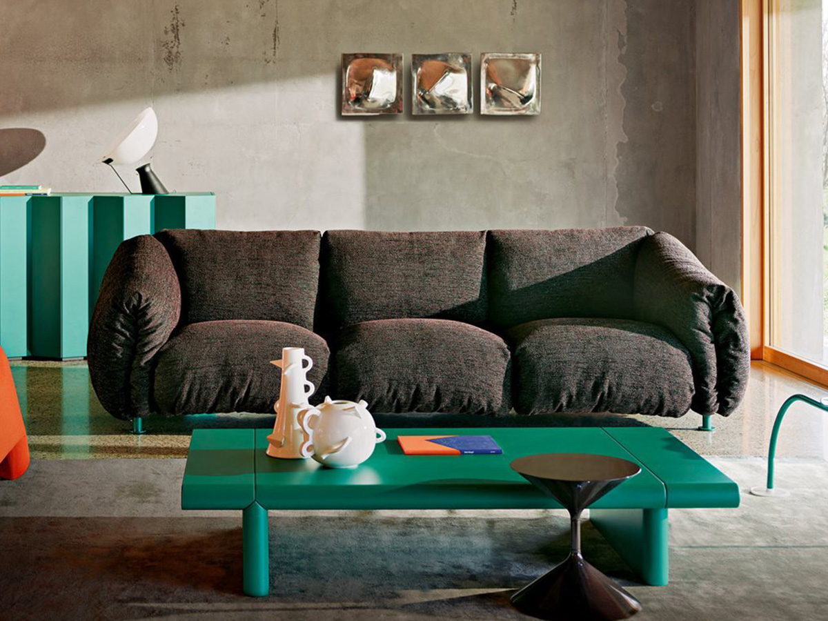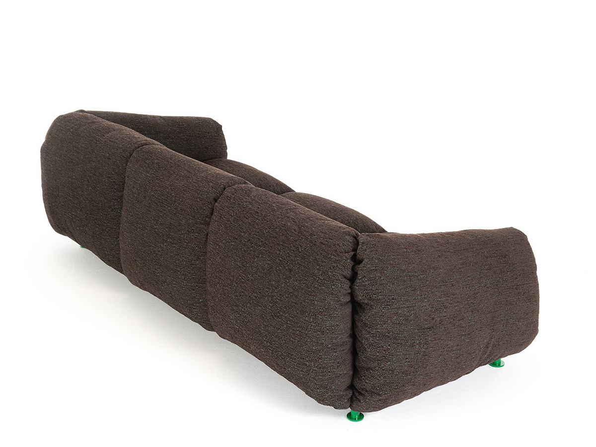 Za:Za è un divano prodotto da Zanotta che si inserisce all’interno della categoria monoblocco che concede solo un certo numero di configurazioni prestabilite. La struttura portante è in acciaio verniciato in diverse colorazioni e comprende nastri rigidi in poliestere anch’essi in diverse colorazioni per il supporto dei cuscini. I cuscini della seduta, dello schienale e del bracciolo sono in poliuretano con sfere di poliestere rigenerato e rigenerabile per garantire massima resistenza nel tempo. Il rivestimento è sfilabile e in stoffa, ideale per garantire una sensazione naturale e confortevole.