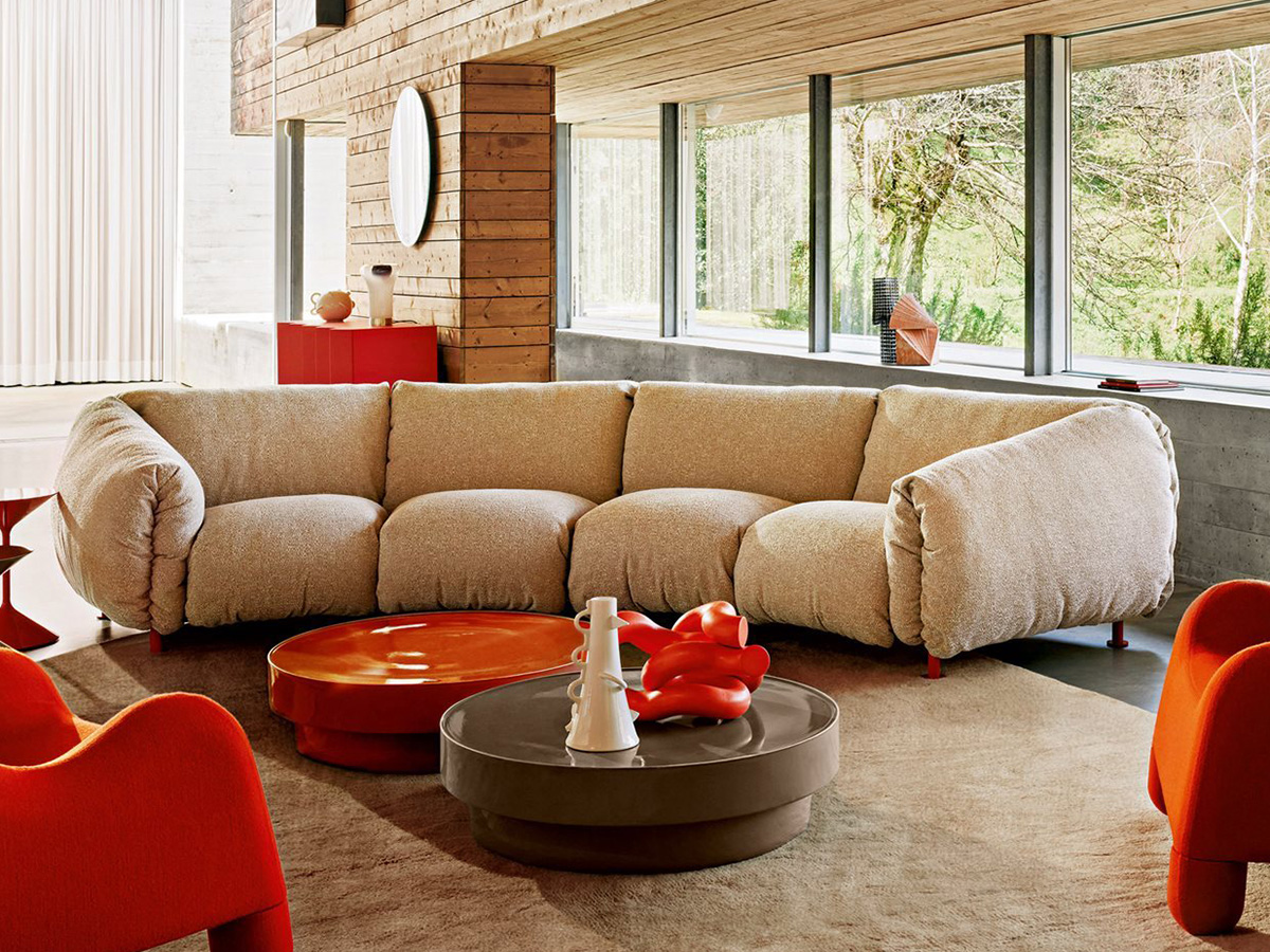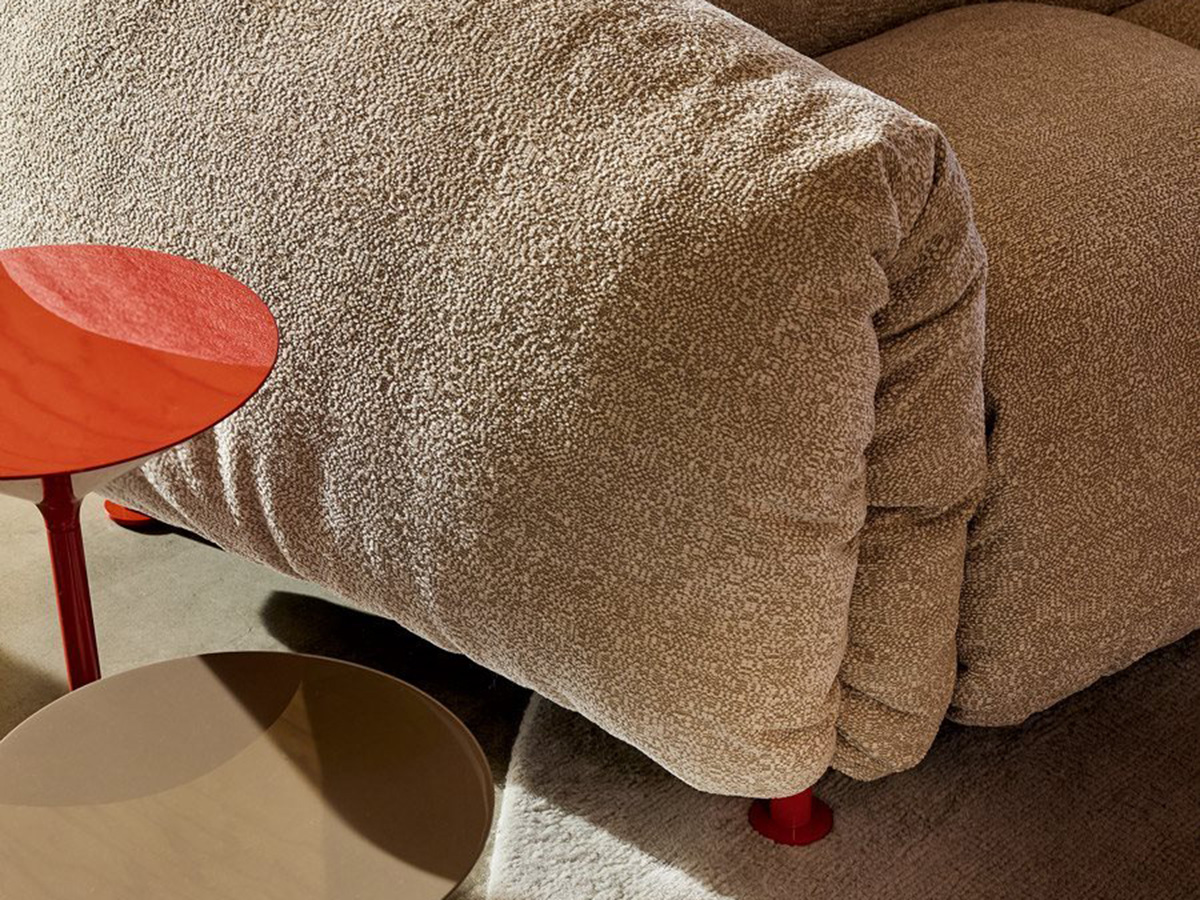 Za:Za è un divano prodotto da Zanotta che si inserisce all’interno della categoria monoblocco che concede solo un certo numero di configurazioni prestabilite. La struttura portante è in acciaio verniciato in diverse colorazioni e comprende nastri rigidi in poliestere anch’essi in diverse colorazioni per il supporto dei cuscini. I cuscini della seduta, dello schienale e del bracciolo sono in poliuretano con sfere di poliestere rigenerato e rigenerabile per garantire massima resistenza nel tempo. Il rivestimento è sfilabile e in stoffa, ideale per garantire una sensazione naturale e confortevole.