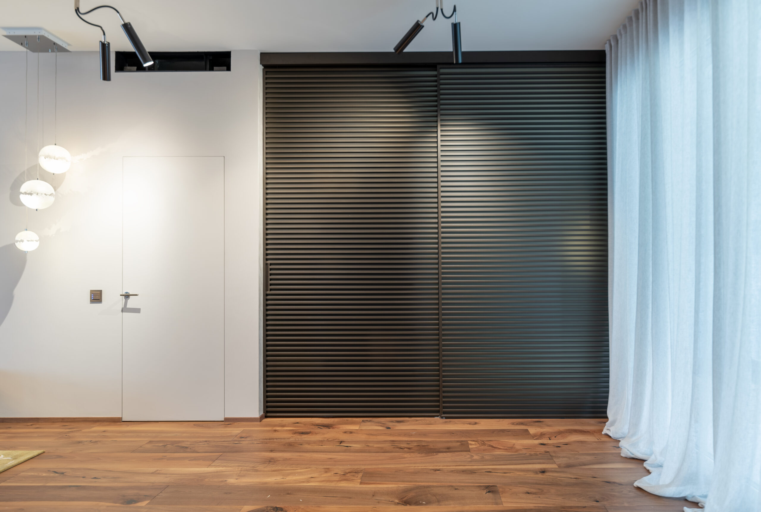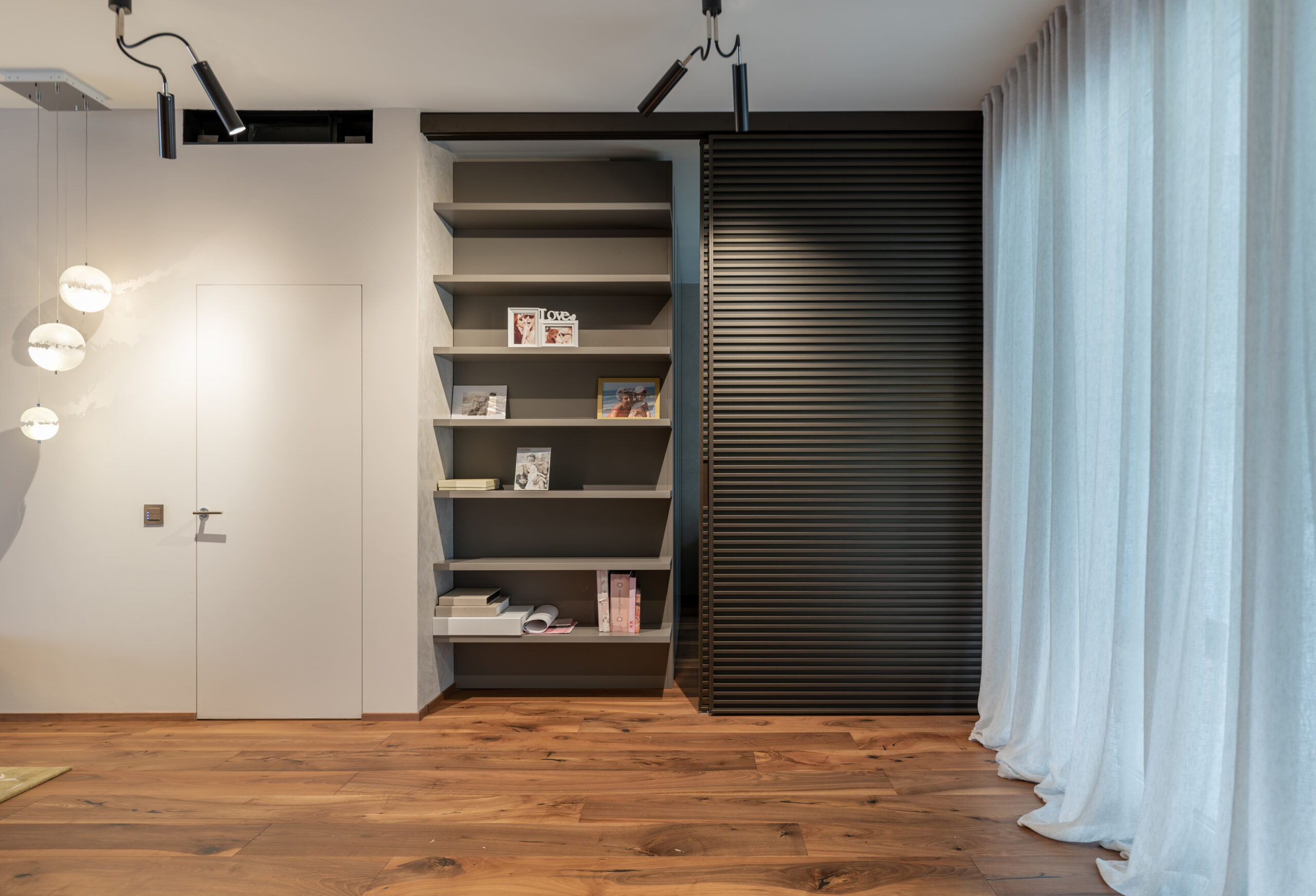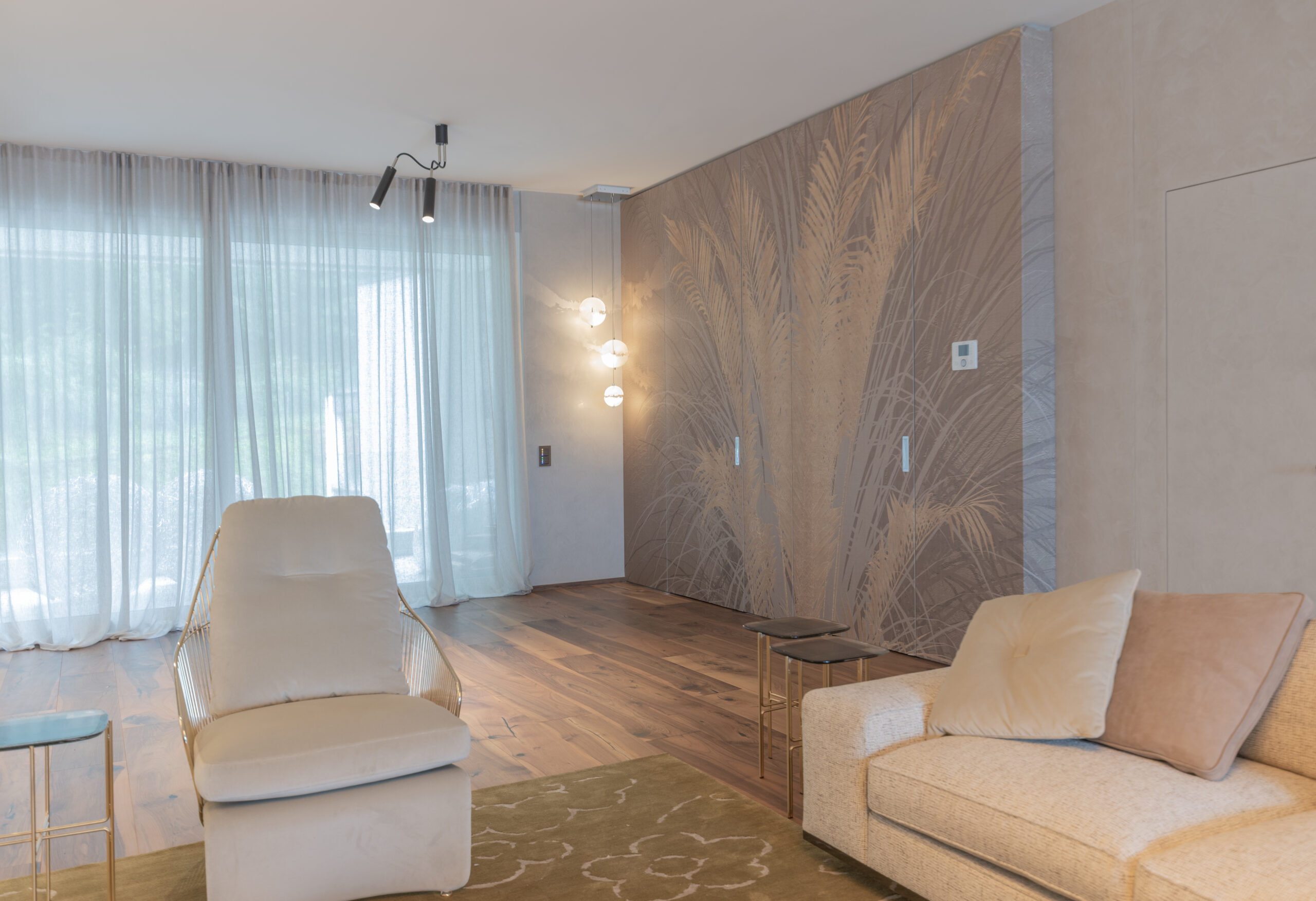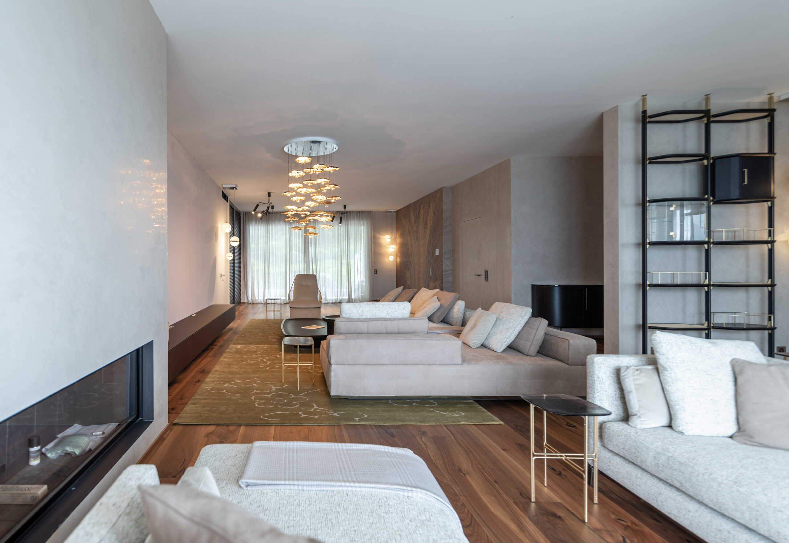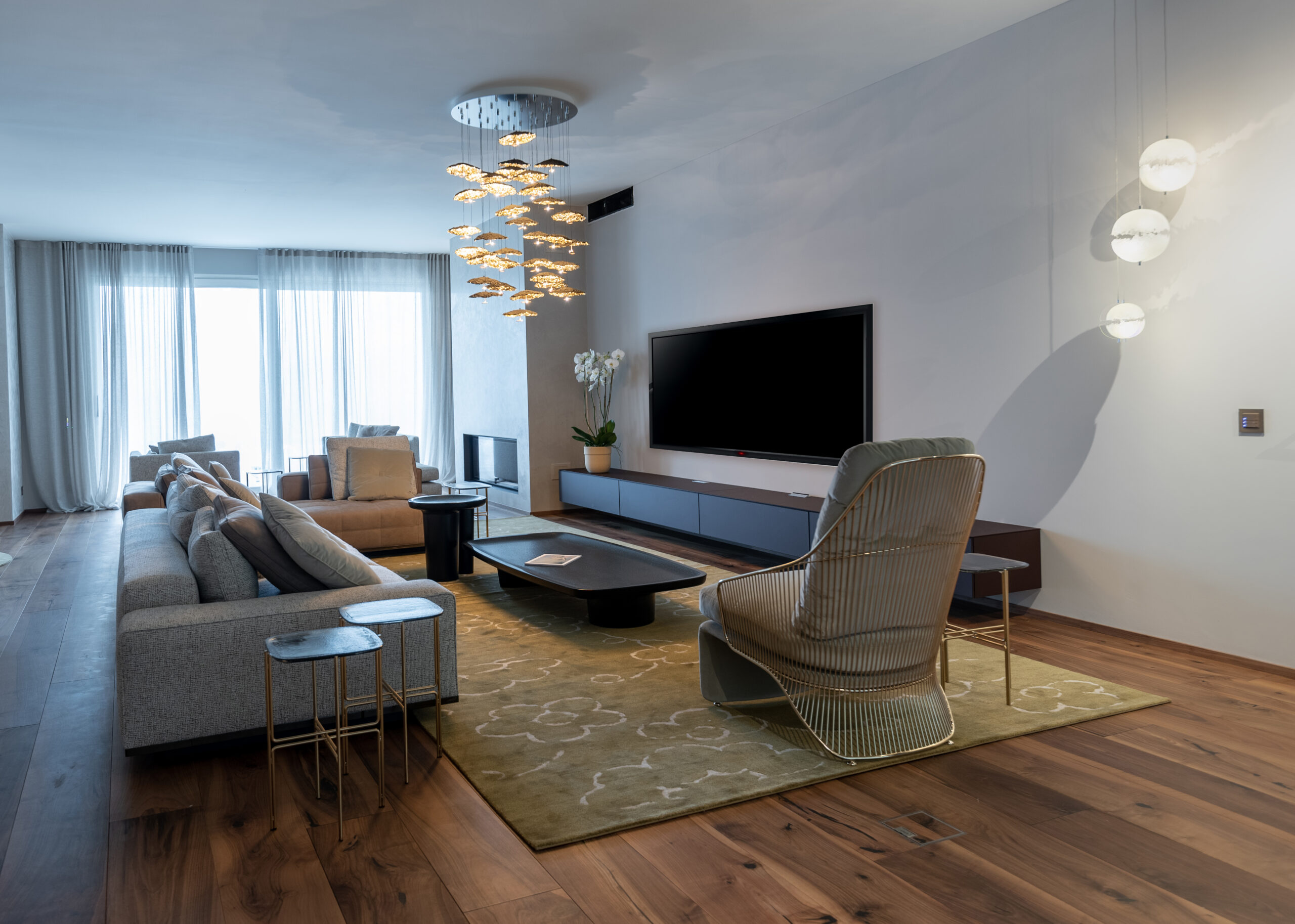 La spettacolare vista di Lugano Paradiso fa da sfondo a questo attico mozzafiato dove design ed eleganza si intrecciano dando vita a uno spazio unico, elegante e soprattutto inaspettato. Il progetto nasce interamente in “casa” Salvioni e si sviluppa grazie a un meticoloso studio delle proporzioni dove determinanti sono state le esigenze del cliente e le diverse funzionalità attribuite a ogni ambiente. L’attenzione verso i dettagli si è coniugata a una visione d’insieme volta a considerare i numerosi elementi strutturali quali pavimenti e pareti, fino alle preziose carte da parati Glamora e i tendaggi di Roberto Molteni. Non meno peculiari sono state le scelte dell’illuminazione articolata interamente sul marchio Catellani&Smith e le sue diverse declinazioni di catalogo.