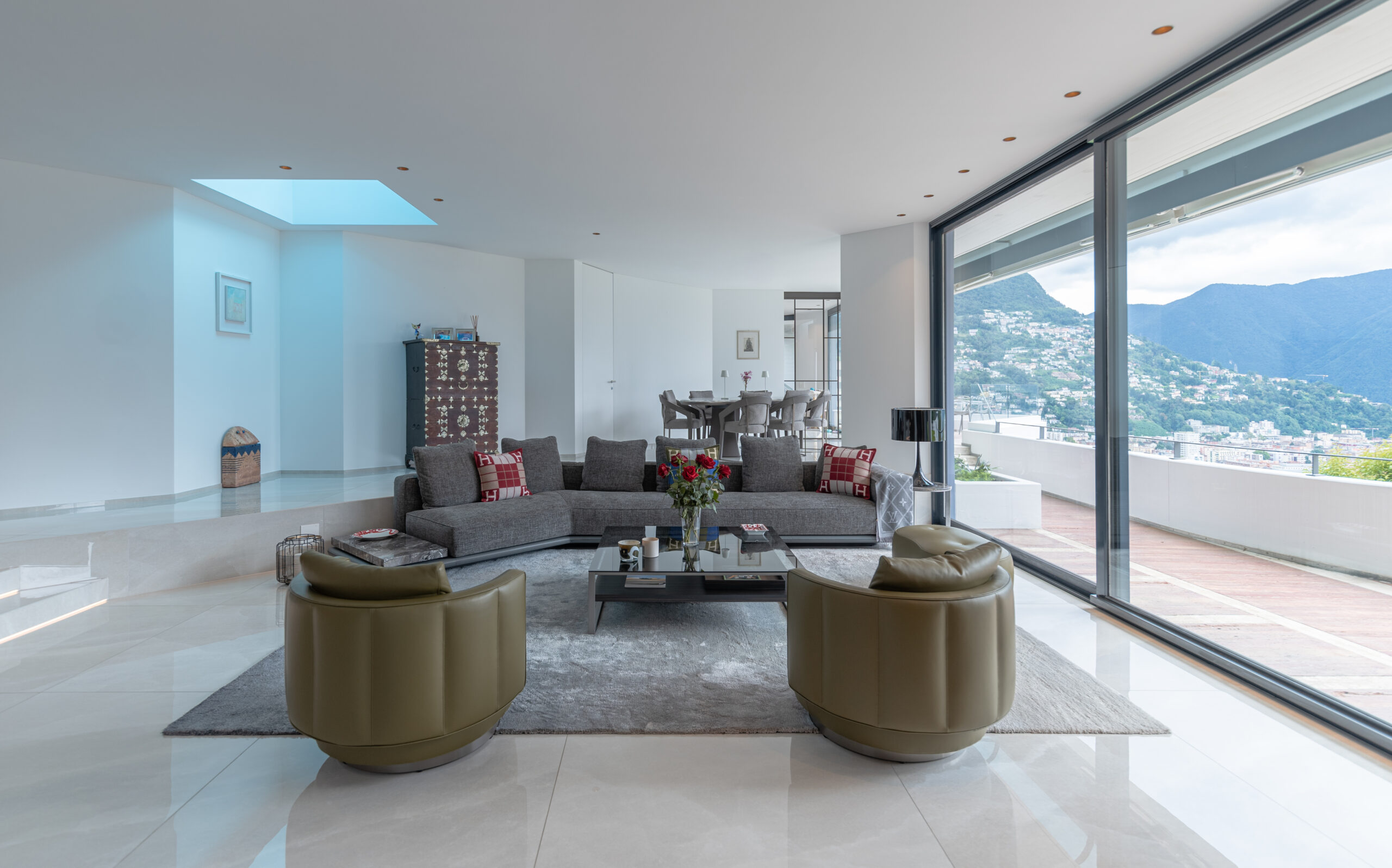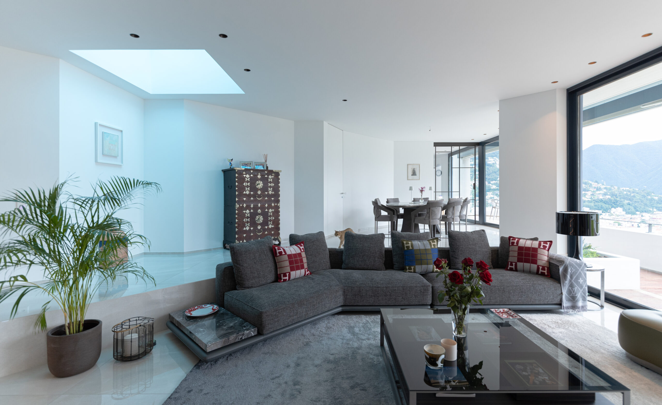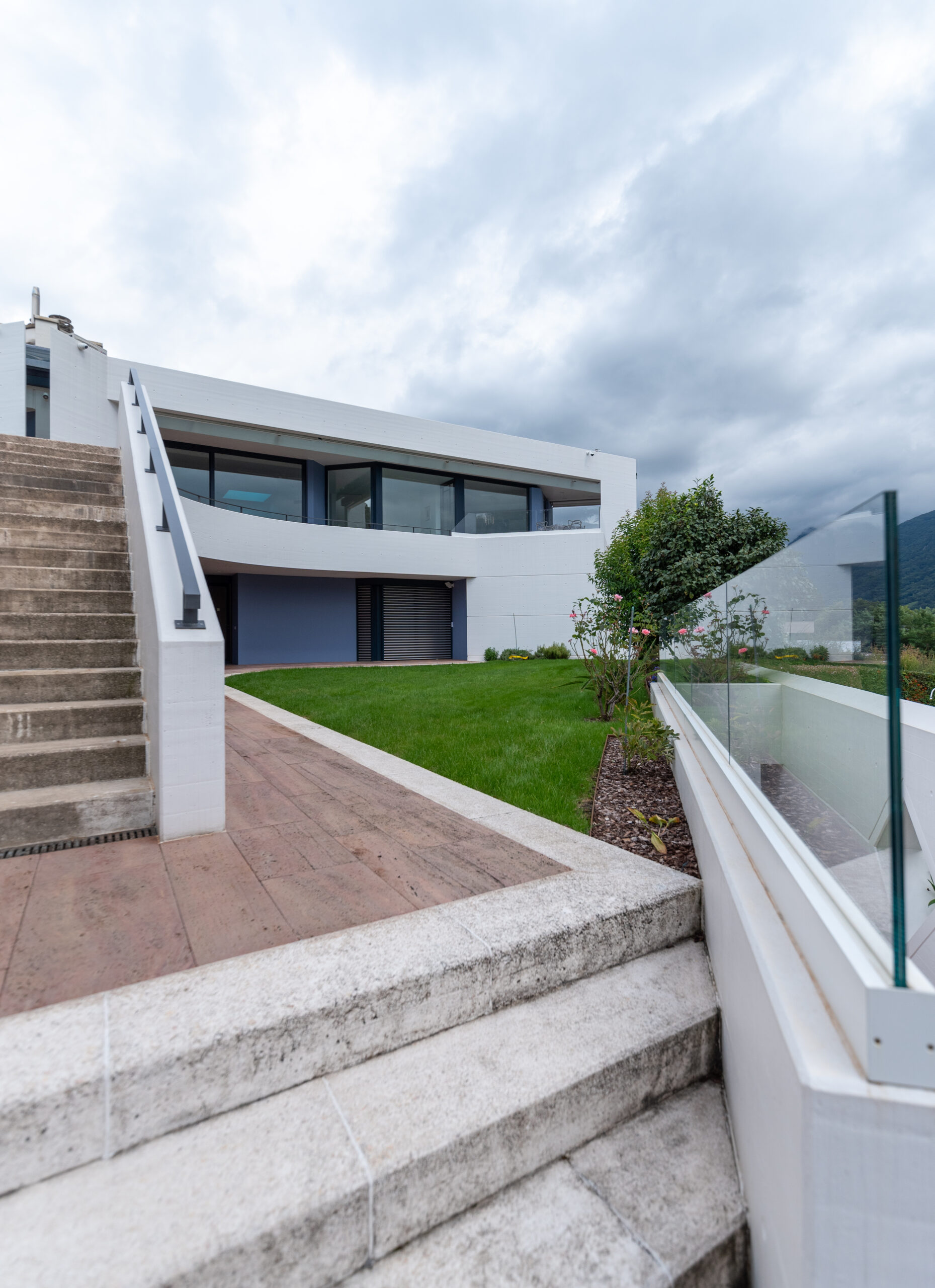 Il progetto Marble House prende vita all’interno di uno scenario mozzafiato, uno scorcio della valle del Ceresio dove il verde dei monti si alterna a raggruppamenti di edifici e case. La casa in oggetto è a sua volta un gioiello architettonico creato dall’Architetto Claudio Pellegrini di Bellinzona, poiché la pianta quadrata si divide in due triangoli perfettamente bilanciati, uno dedicato al verde e uno alla struttura in sé, elegantemente modellata su più livelli quasi a rievocare i terrazzamenti di viti e uliveti.