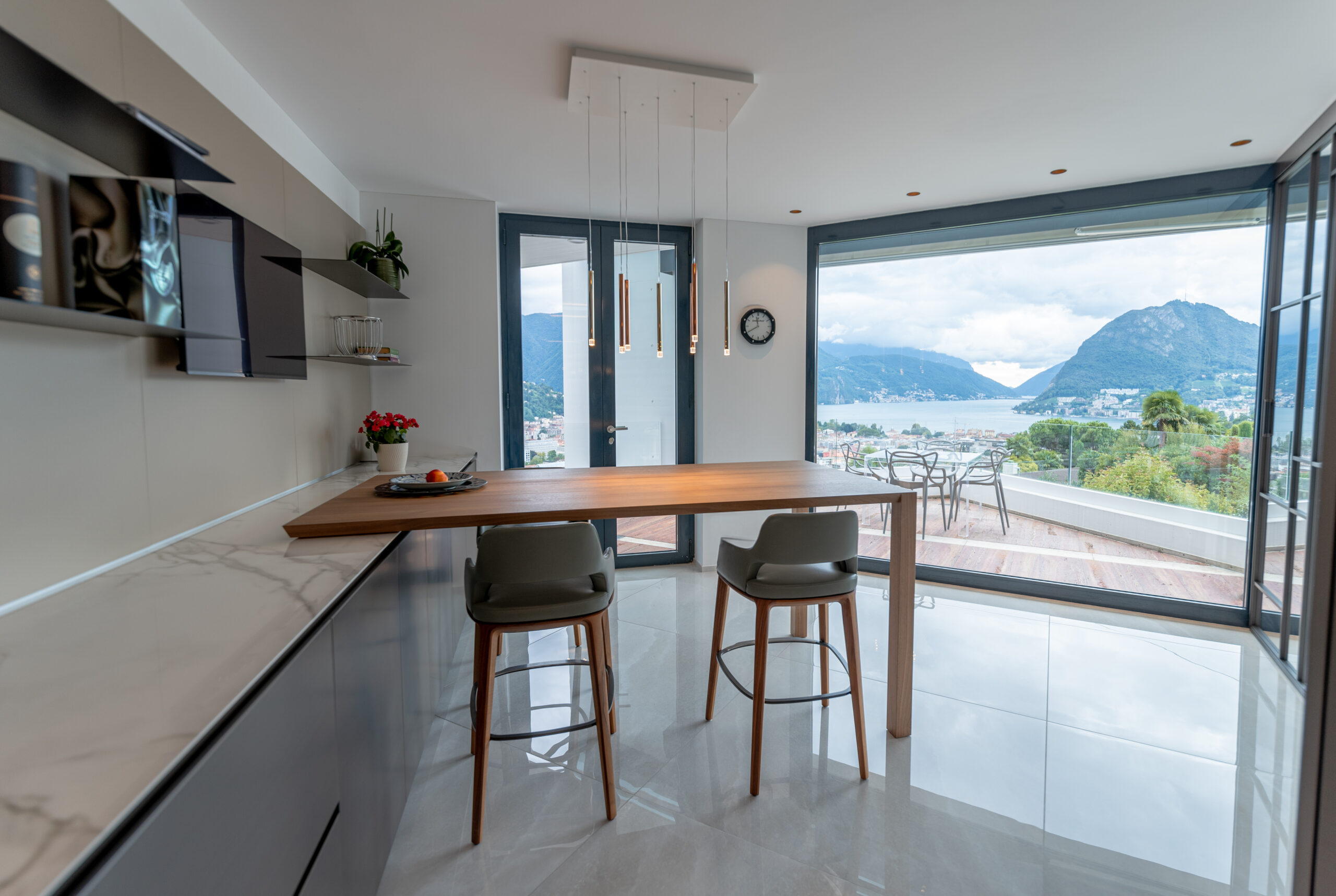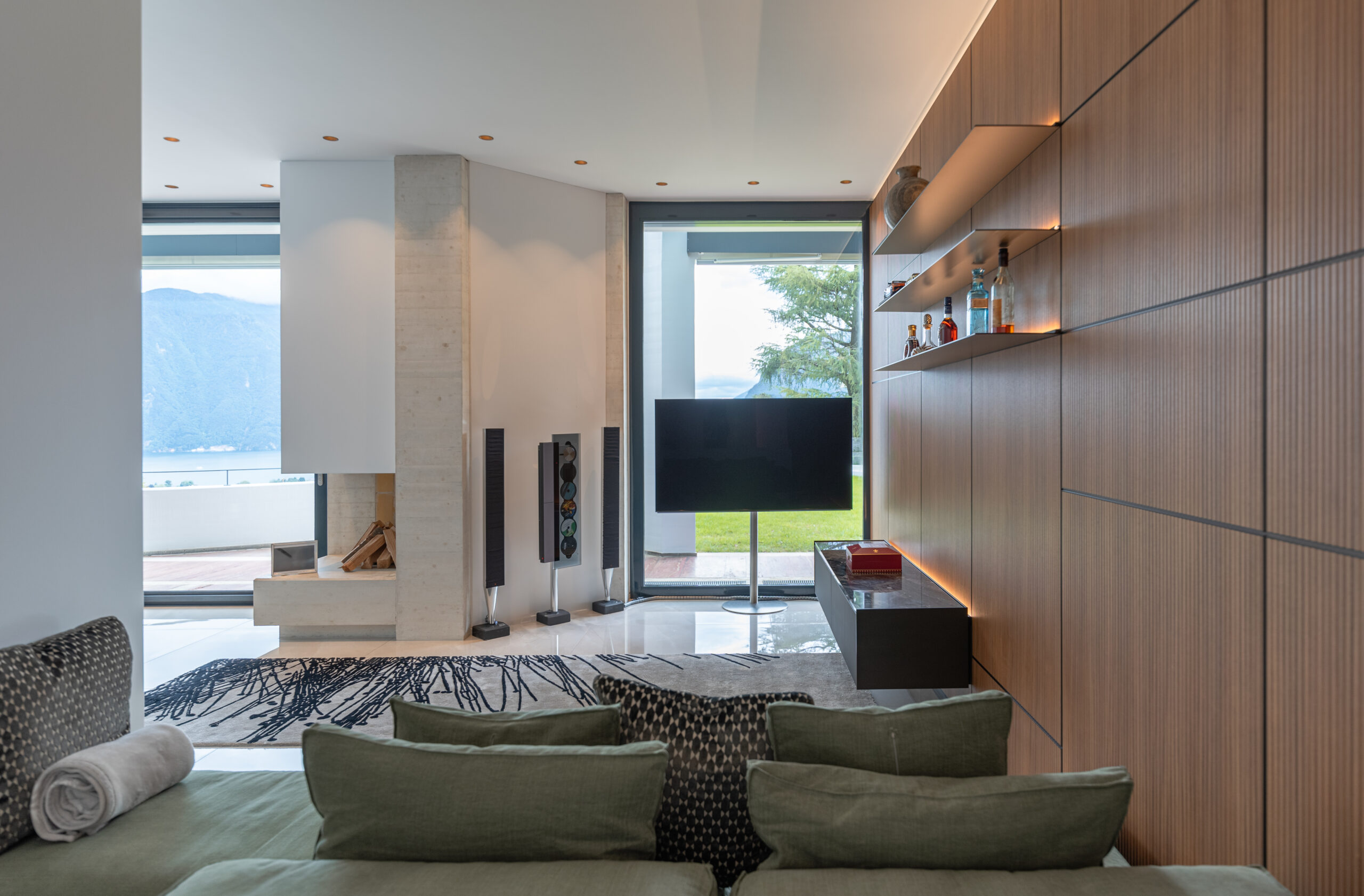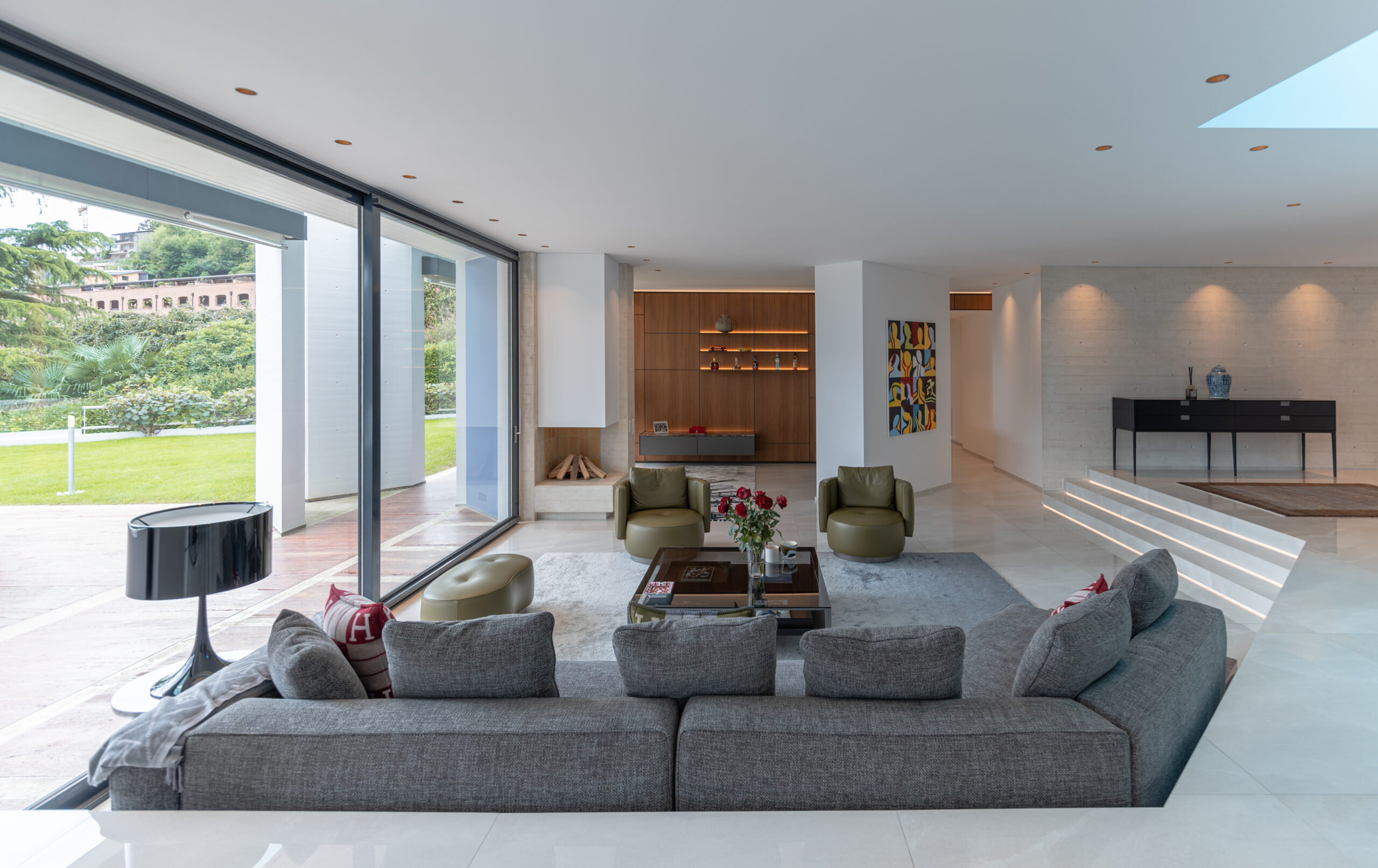 Il progetto Marble House prende vita all’interno di uno scenario mozzafiato, uno scorcio della valle del Ceresio dove il verde dei monti si alterna a raggruppamenti di edifici e case. La casa in oggetto è a sua volta un gioiello architettonico creato dall’Architetto Claudio Pellegrini di Bellinzona, poiché la pianta quadrata si divide in due triangoli perfettamente bilanciati, uno dedicato al verde e uno alla struttura in sé, elegantemente modellata su più livelli quasi a rievocare i terrazzamenti di viti e uliveti.